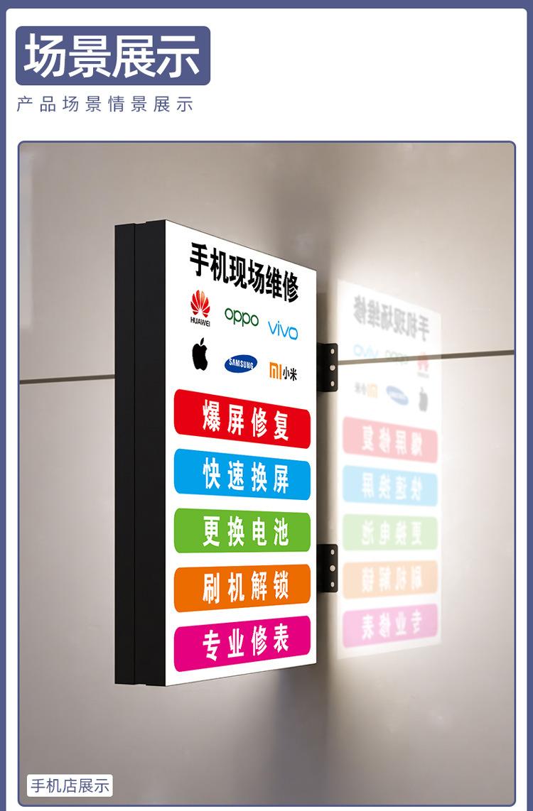 Letrero de caja de luz LED, cartelera, letrero lateral montado en la pared, luminoso, de doble cara, para exteriores, cuadrado, pantalla lateral, placa de luz para puerta colgante