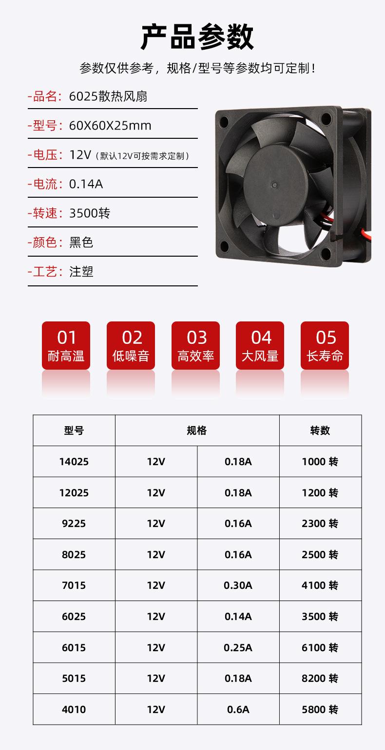 Ventilador negro 6025 DC, silencioso, gran volumen de aire, cargador de 12 V, inversor, radiador, ventilador de 6 cm