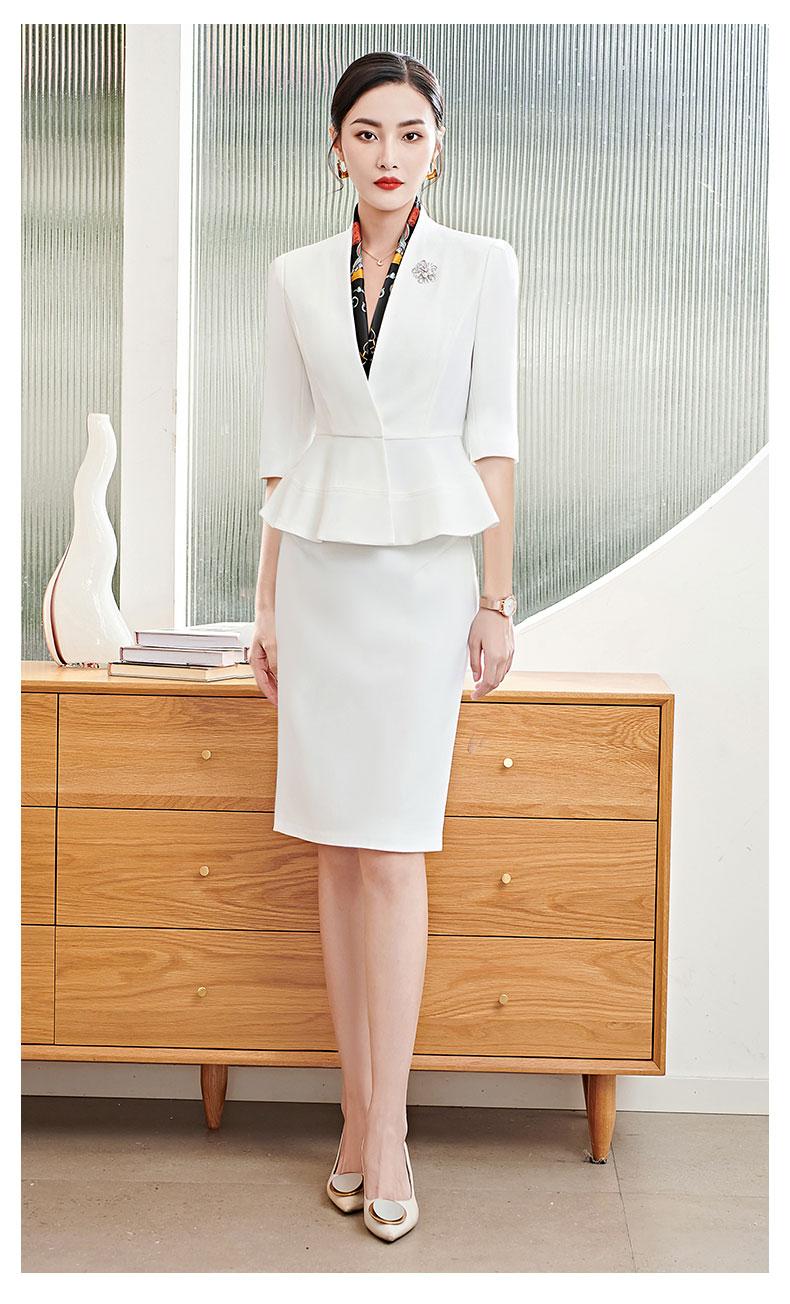White Long Sleeve Suit Skirt, White Long Sleeve Suit, White three-point sleeve suit overskirt, White Seven Sle...