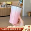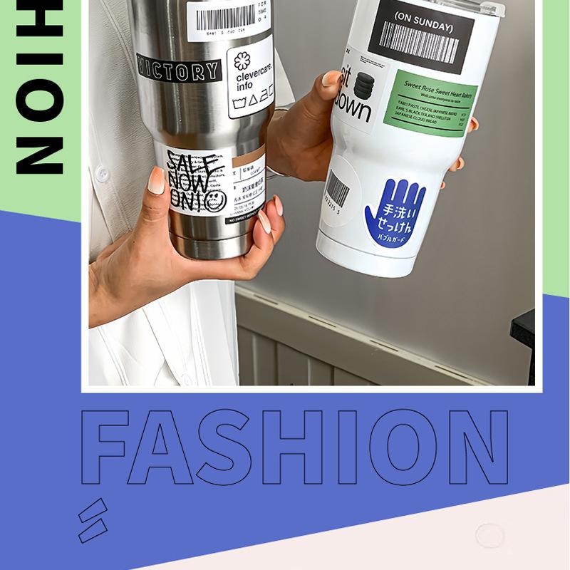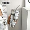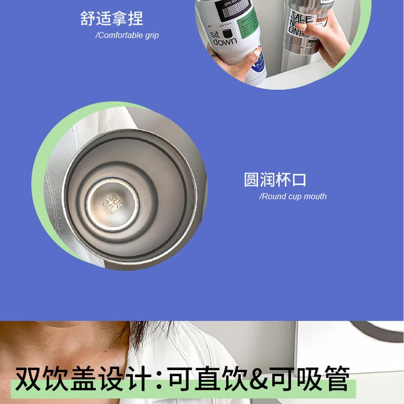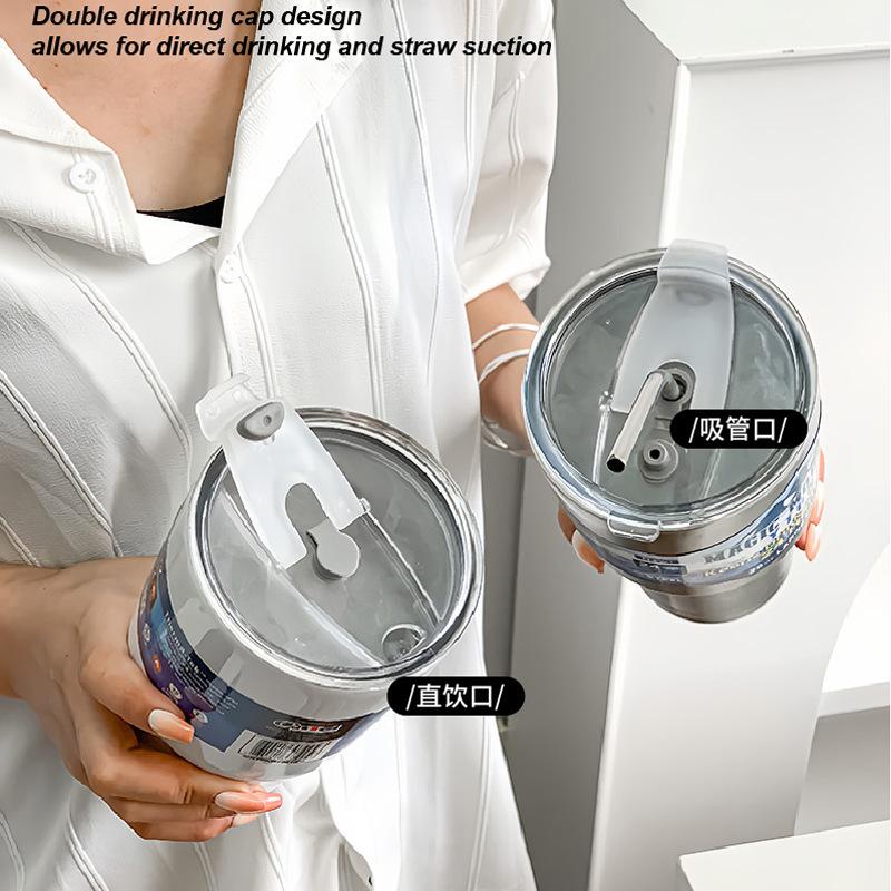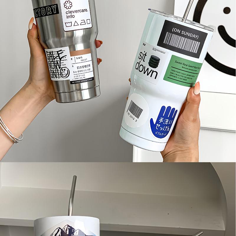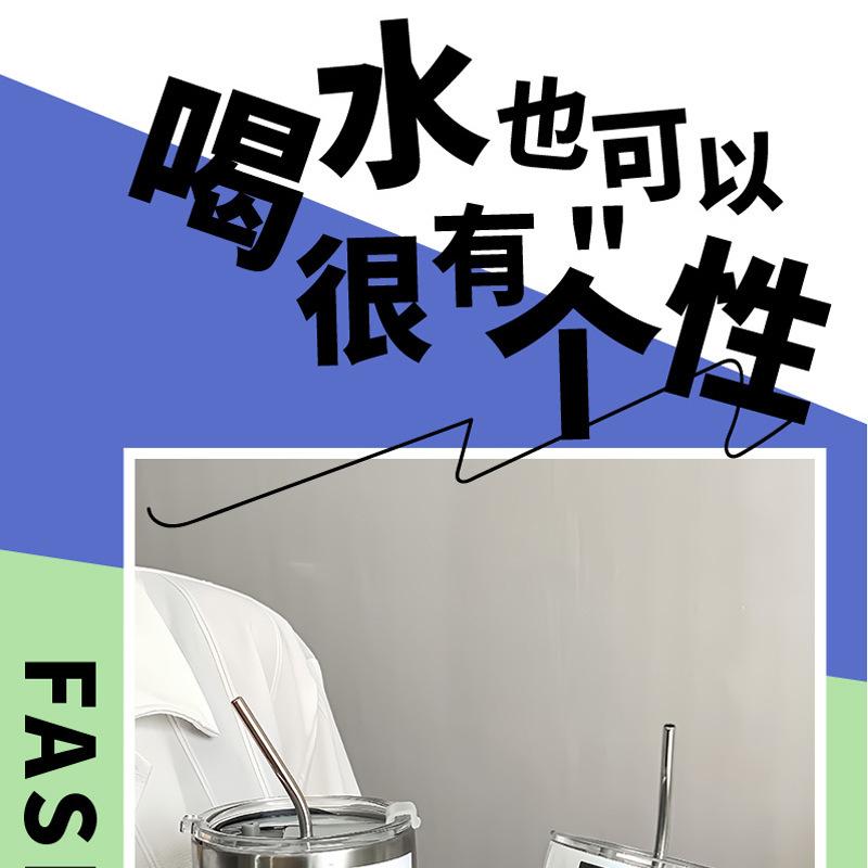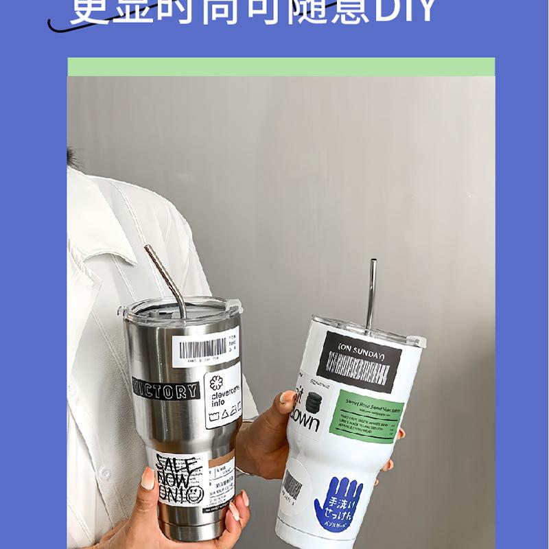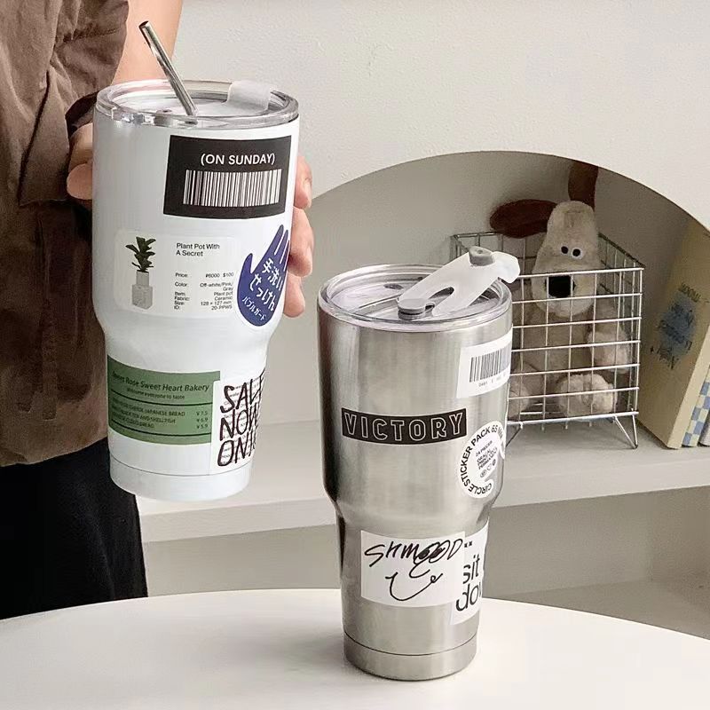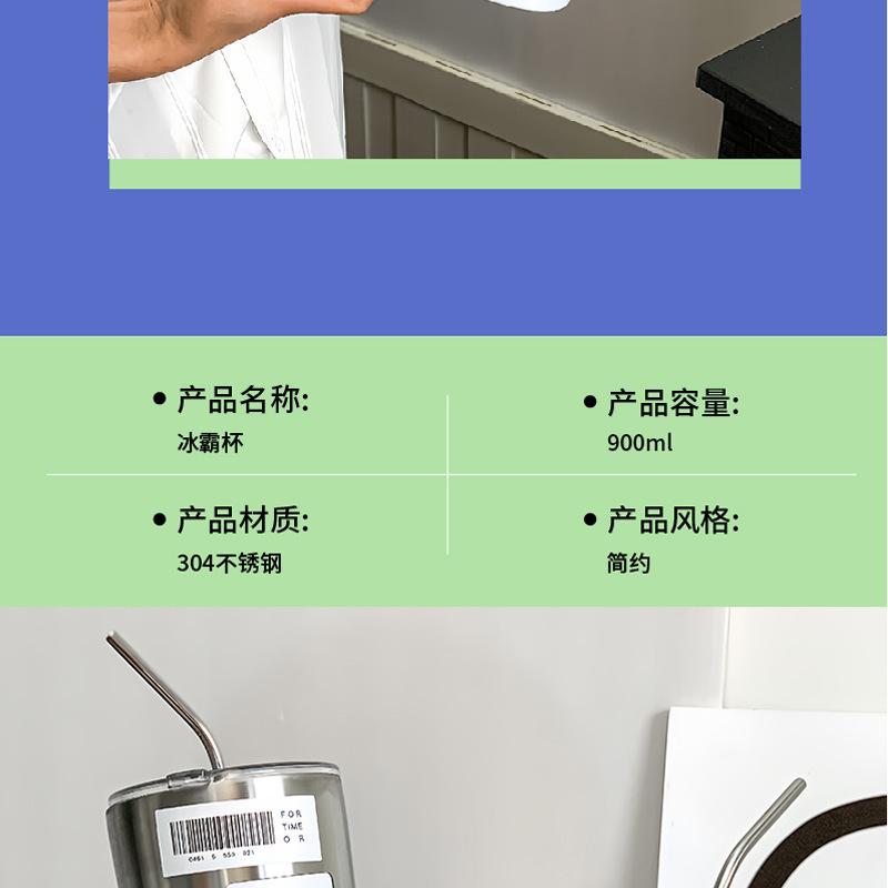 Taza de hielo de acero inoxidable 304 de gran capacidad para oficina para beber café, té con leche, aislamiento frío, taza con pajita para succión, taza para coche