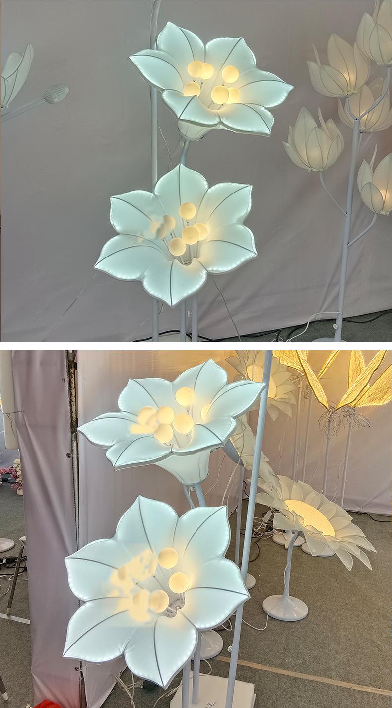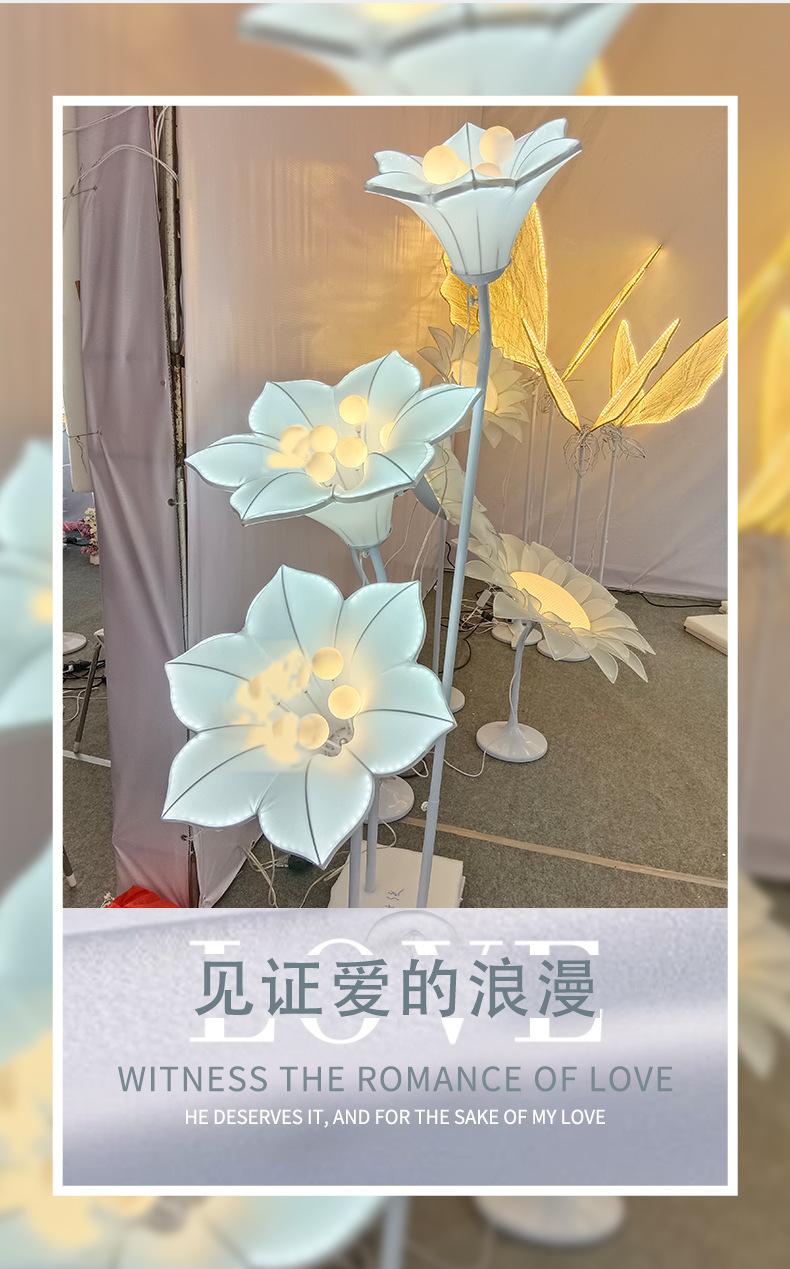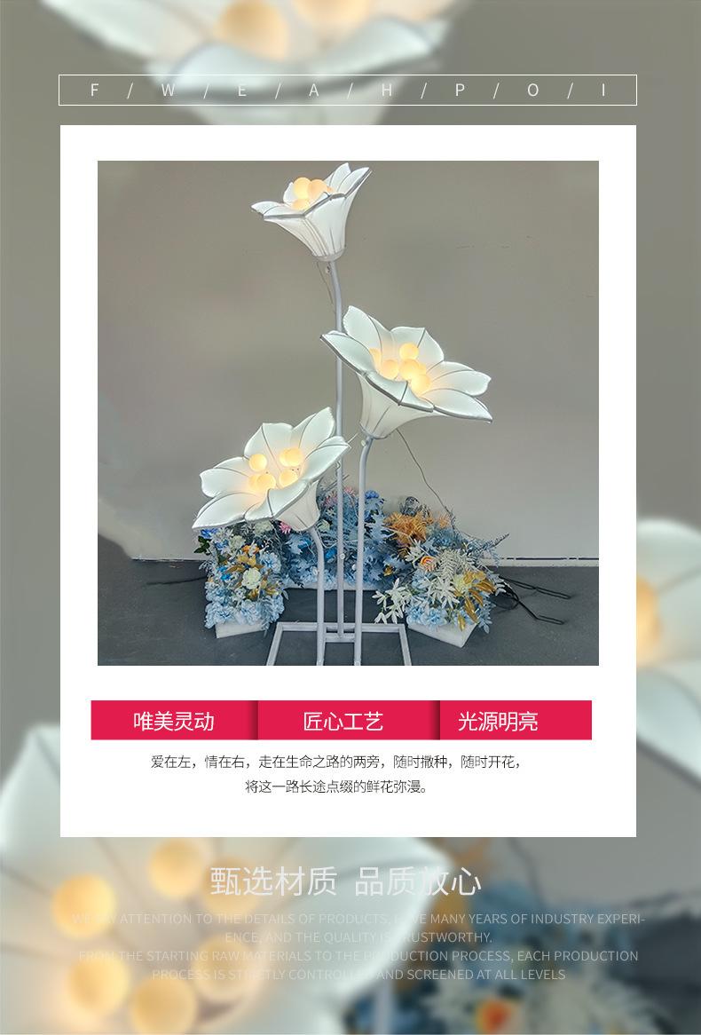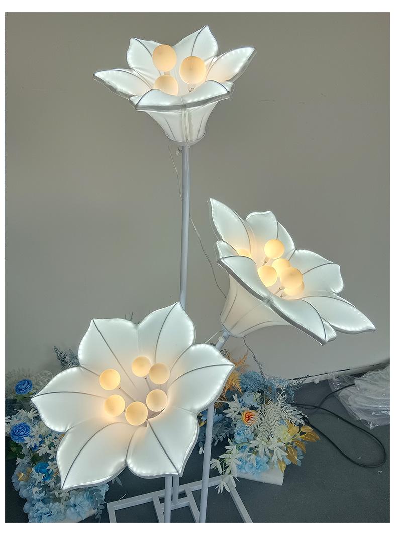 2023 nueva flor de boda de 3 cabezas Morning Glory, guía de boda, pétalos de tela de filamento, decoración de escenario, accesorios y adornos