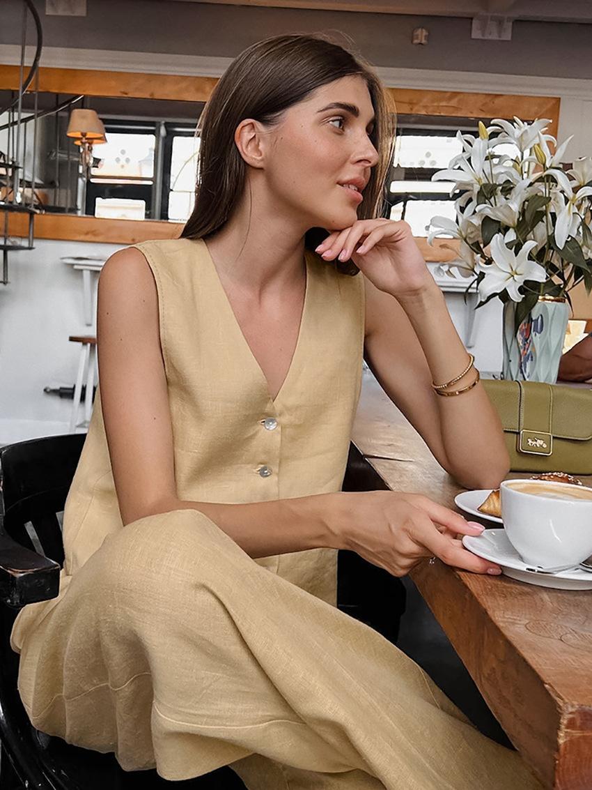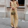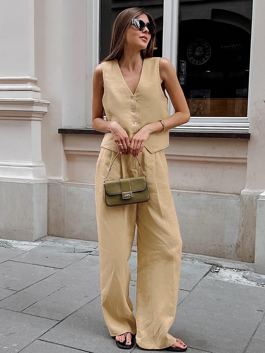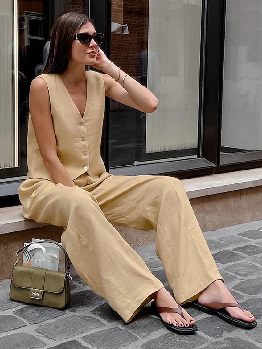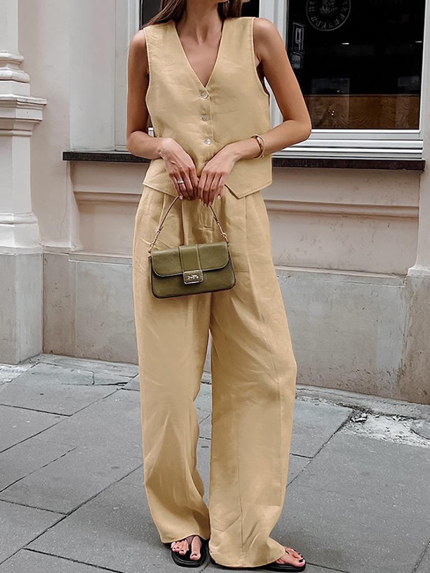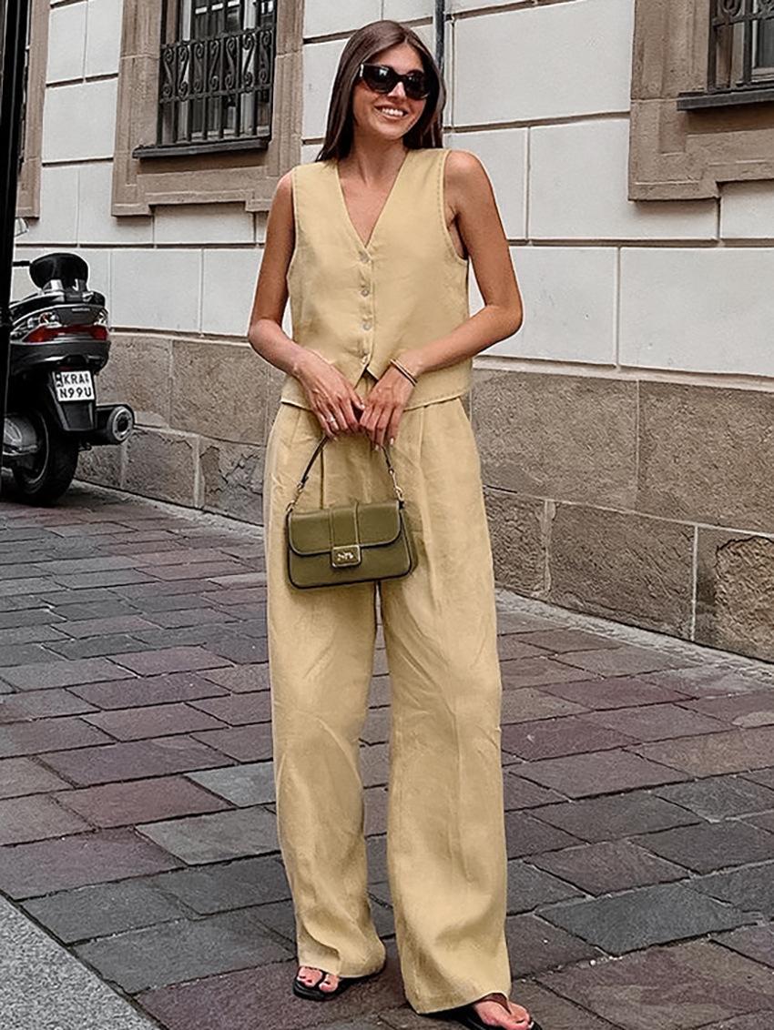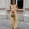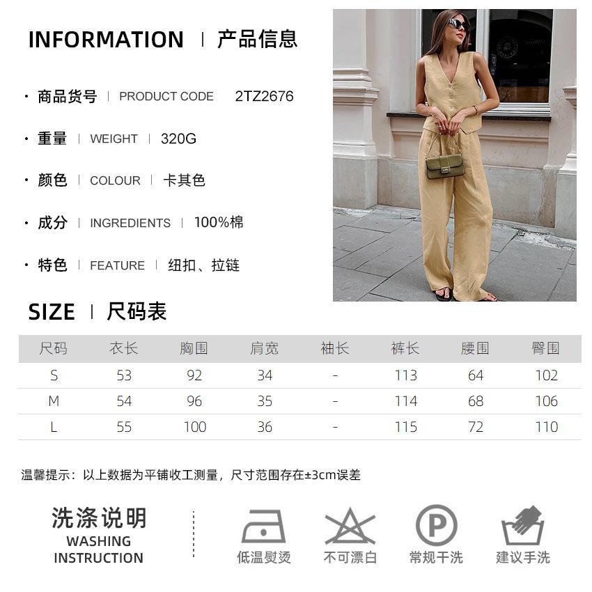 Traje casual transfronterizo de moda europea y americana 2024, nuevo estilo de hermana real, elegante chaleco de algodón, pantalones, traje ajustado de dos piezas