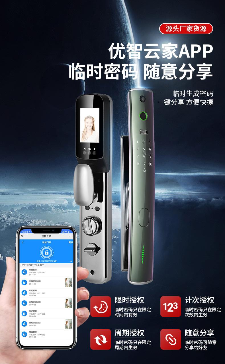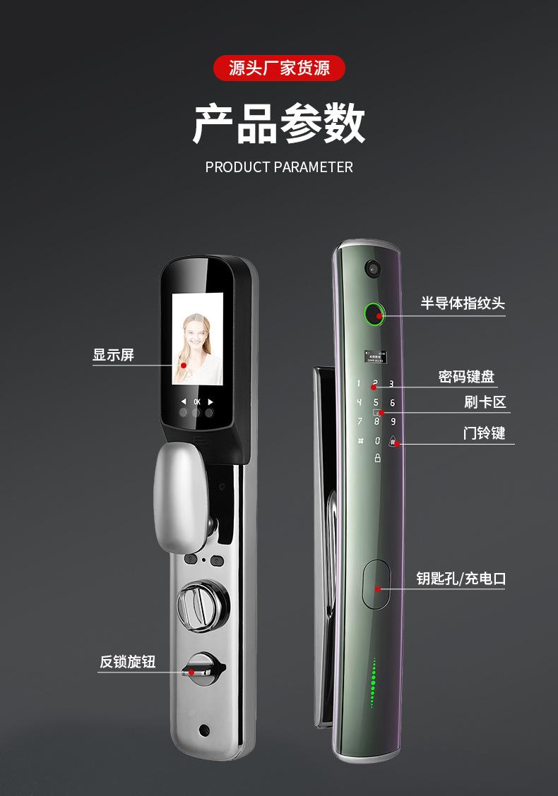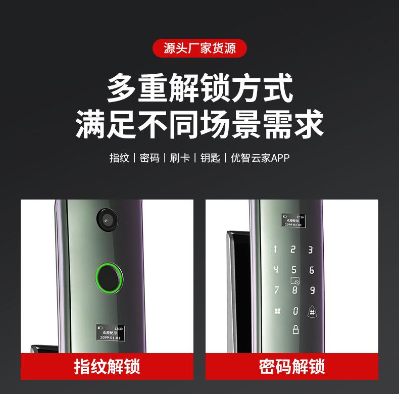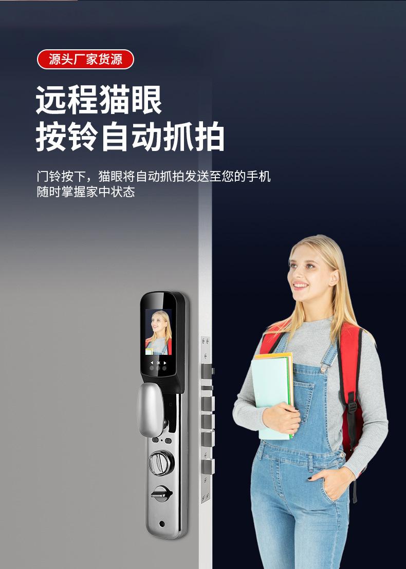 Cerradura de huella dactilar con aplicación remota, visual, ojo de gato, contraseña, timbre de casa, captura de seguridad, puerta, cerradura electrónica inteligente, venta al por mayor