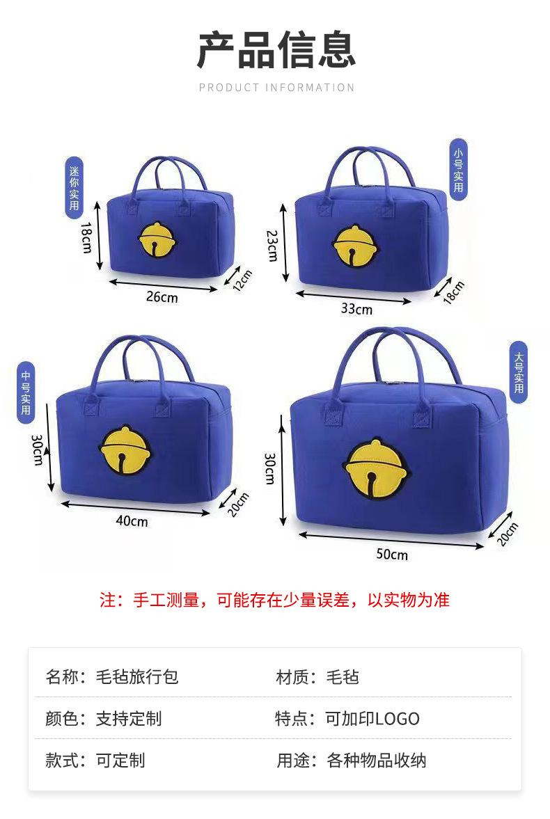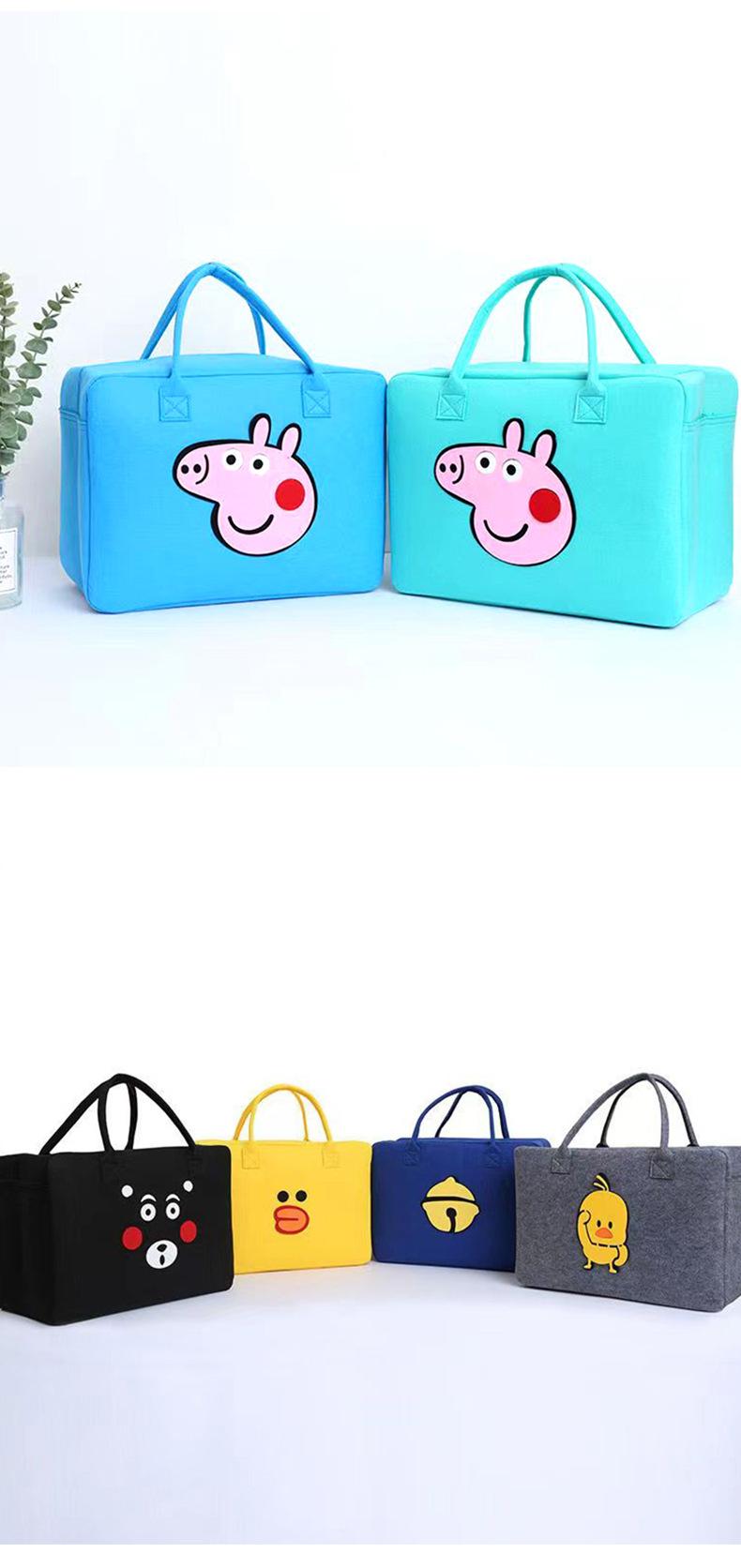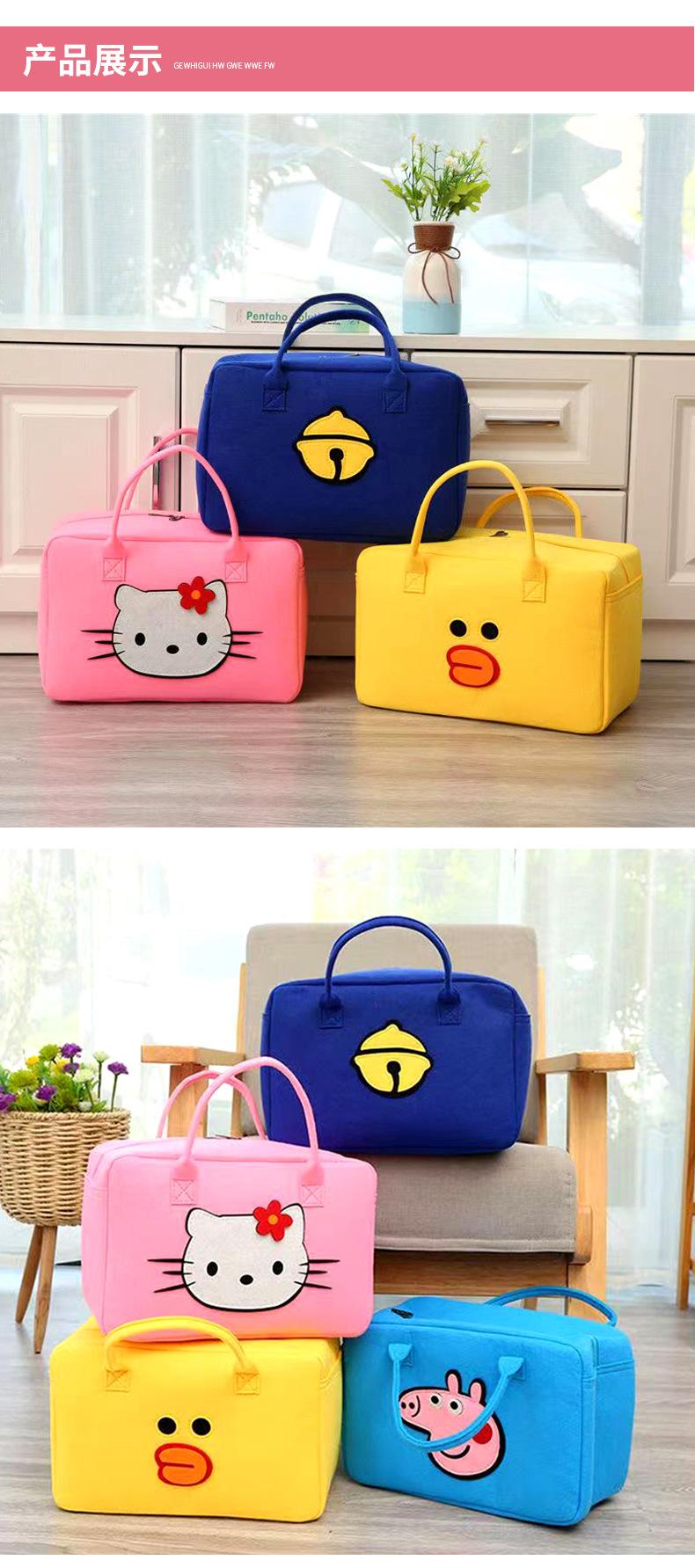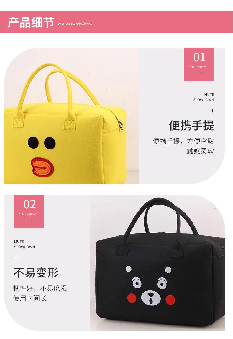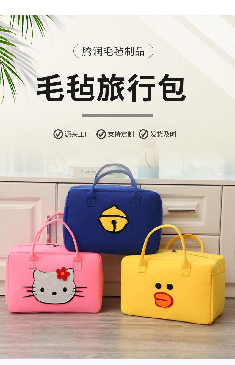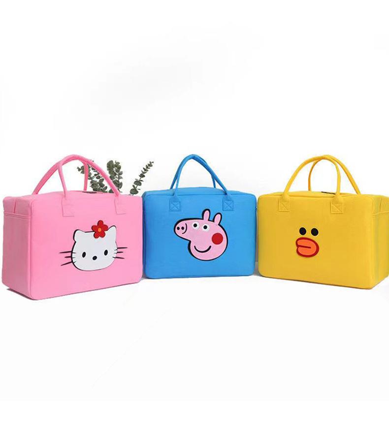 Linda Bolsa de Viaje de Dibujos Animados de Gran Capacidad Bolsa de Almacenamiento Personalizada para Niños Bolsa de Equipaje Fieltro Portátil para Corta Distancia Bolsa de Almuerzo