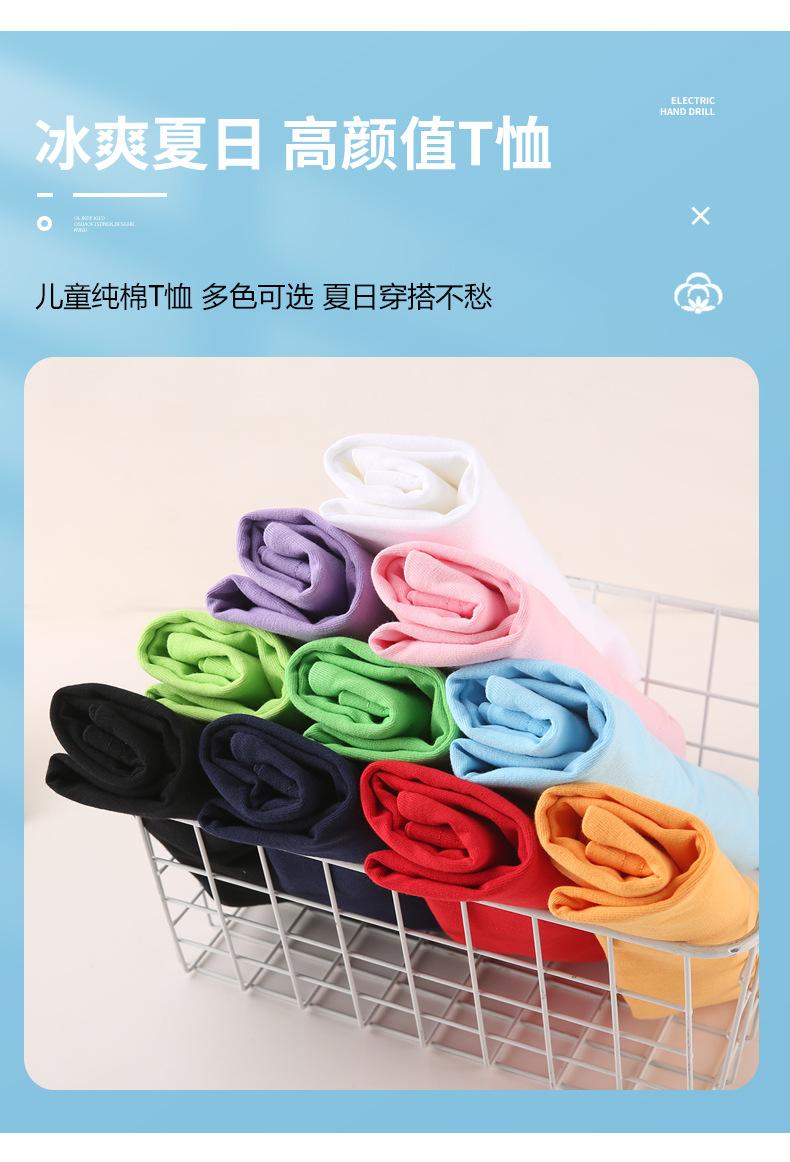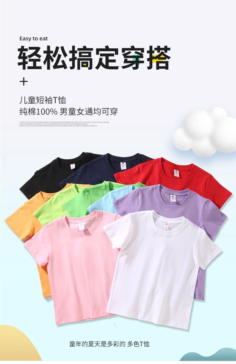 Camiseta de algodón de 200 g para niños y niñas, de verano, en blanco, de manga corta, para jardín de infantes, con logotipo personalizado impreso y pintado a mano.