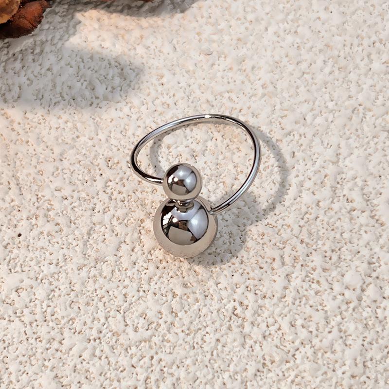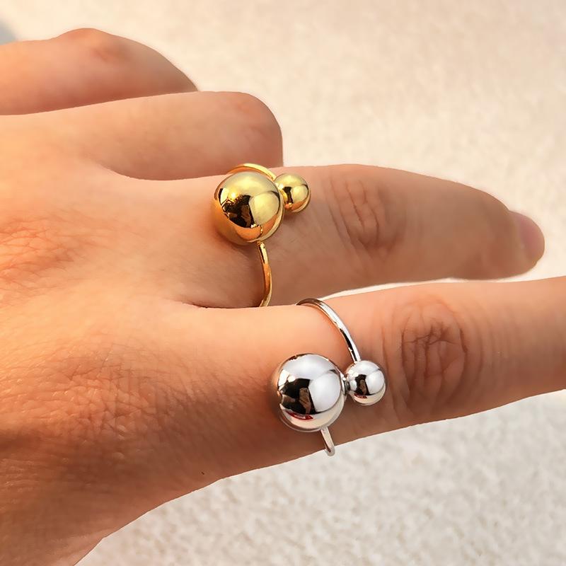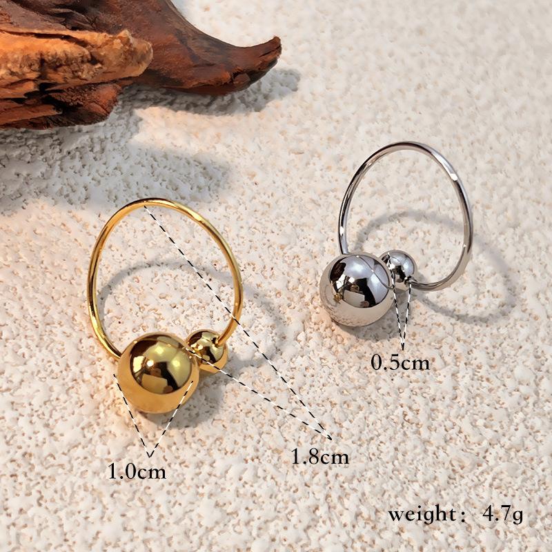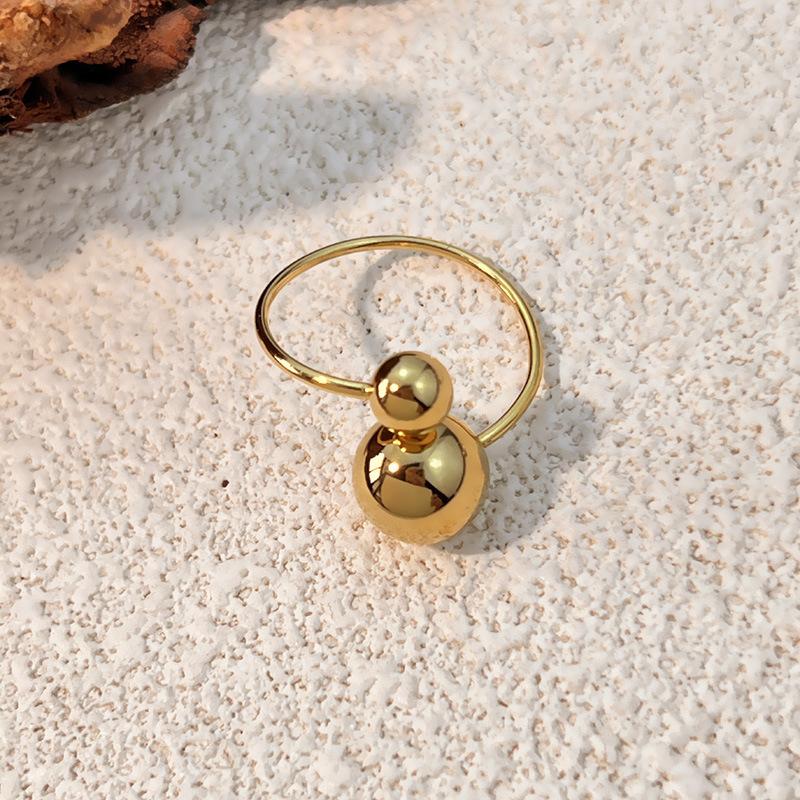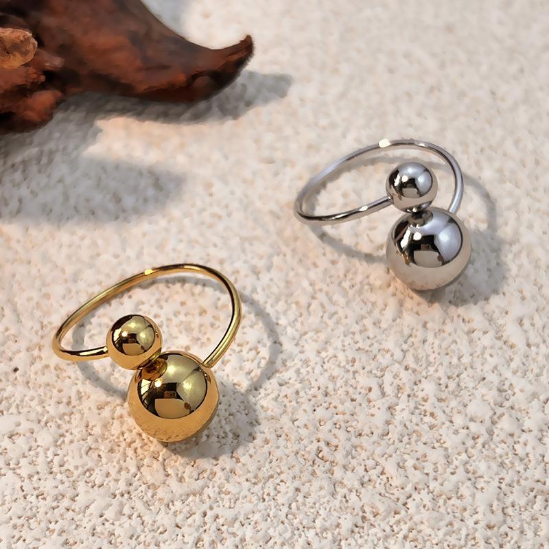 Anillo de dos bolas con personalidad esférica para damas, chapado en oro y acero inoxidable transfronterizo de Europa y Estados Unidos, con nicho de viento ajustable al por mayor