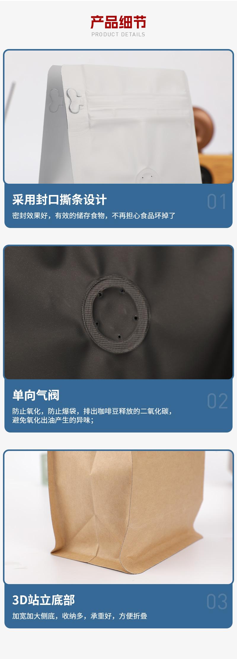 Bolsa de Café de Papel Kraft Sellado de Ocho Lados Bolsa Versión Pública Bolsa Reciclable Válvula Bolsa de Café Bolsa de Empaque de Alimentos Sellada