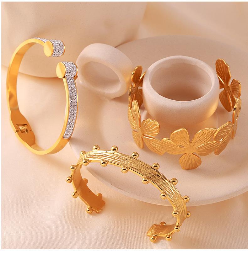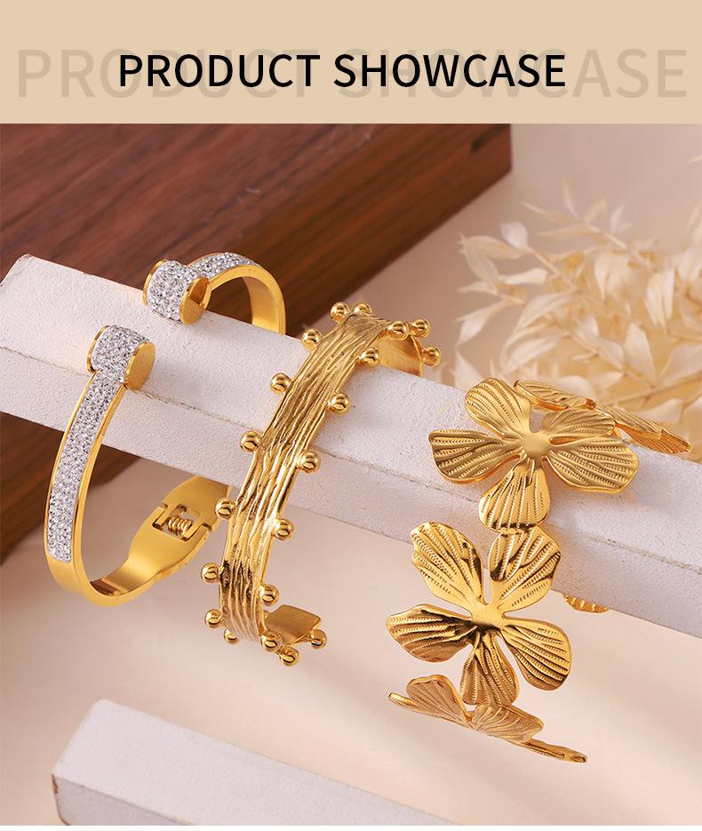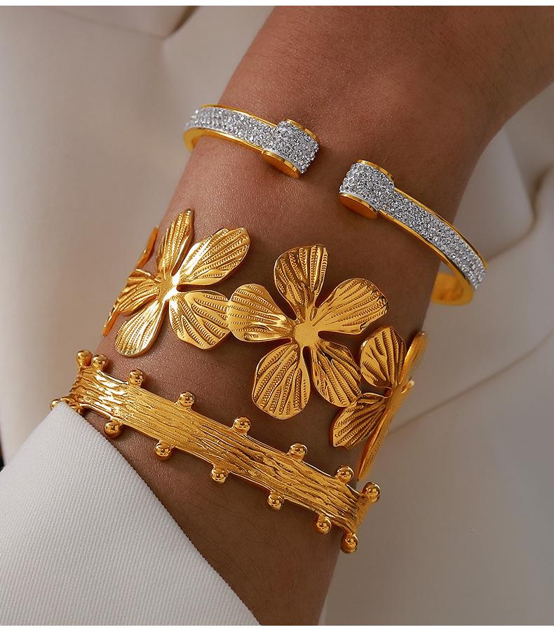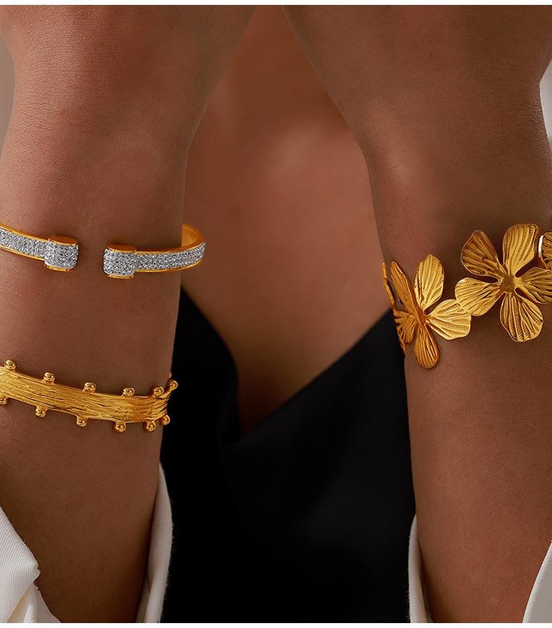 Pulsera de flores de acero de titanio nicho de personalidad europea y americana chapada en oro de 18 quilates que no se decolora temperamento de lujo ligero joyería de diamantes mujeres venta al por mayor