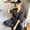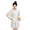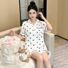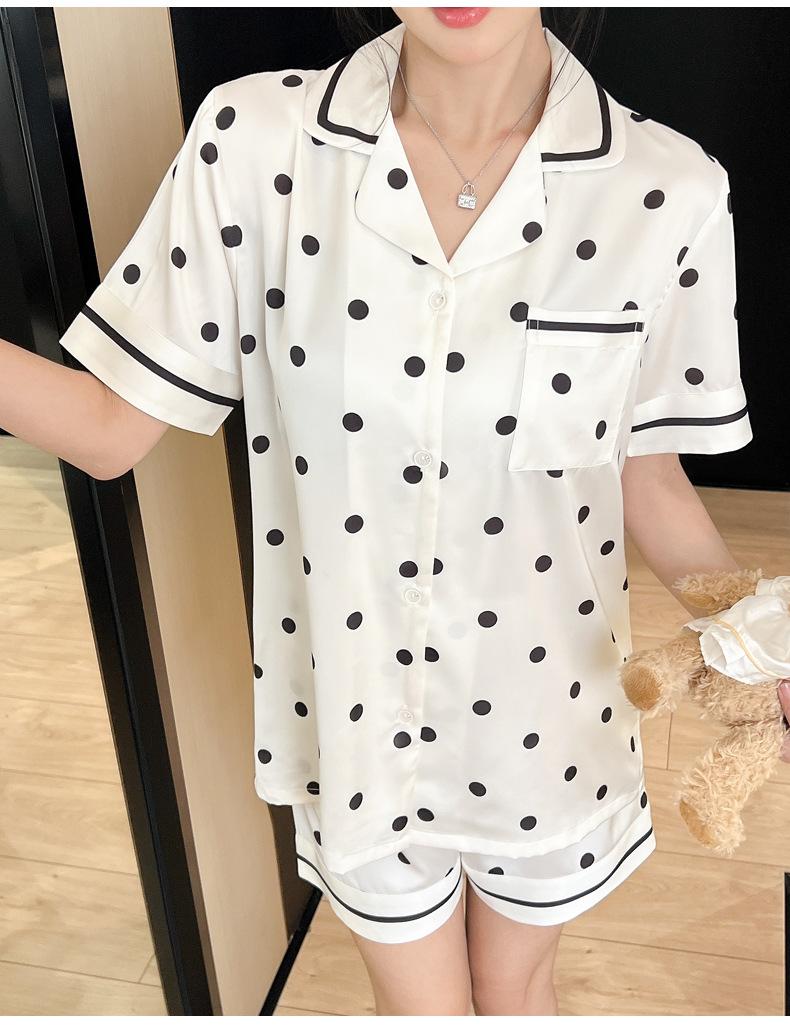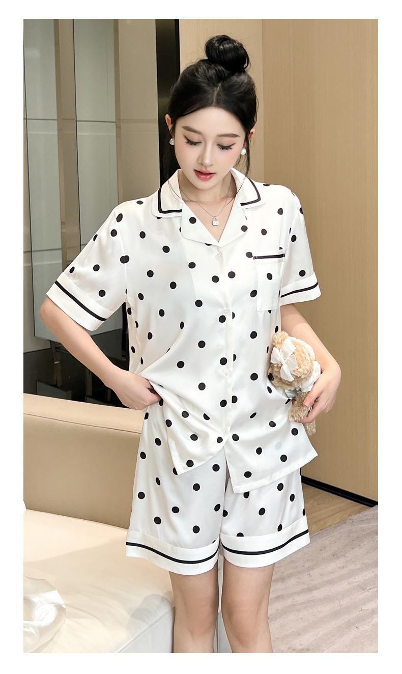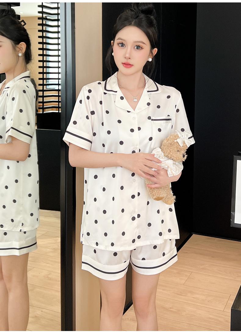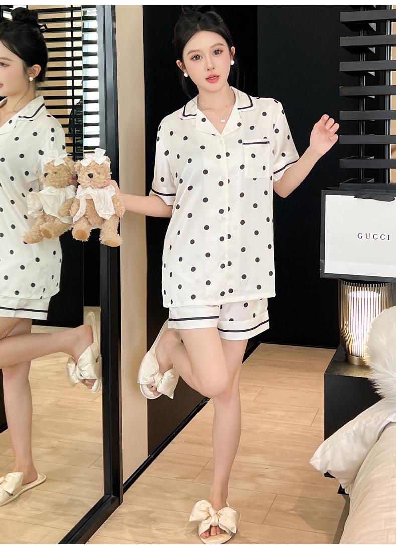 Pijamas de estilo coreano para mujer, primavera y verano, seda de hielo, pantalones cortos de manga corta con lunares ondulados, ropa informal sencilla para estudiantes, conjunto de ropa para el hogar de talla grande en vivo
