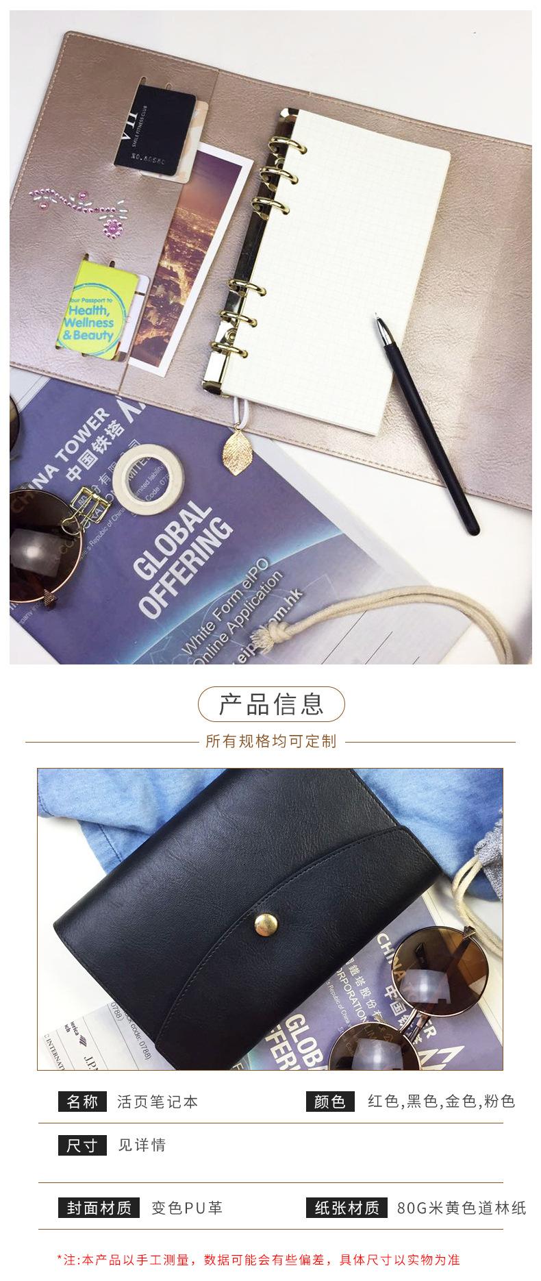Cuaderno de hojas sueltas de PU que cambia de color, diario de viaje de moda, cuaderno de mano creativo, cuaderno de regalo de oficina, venta al por mayor