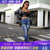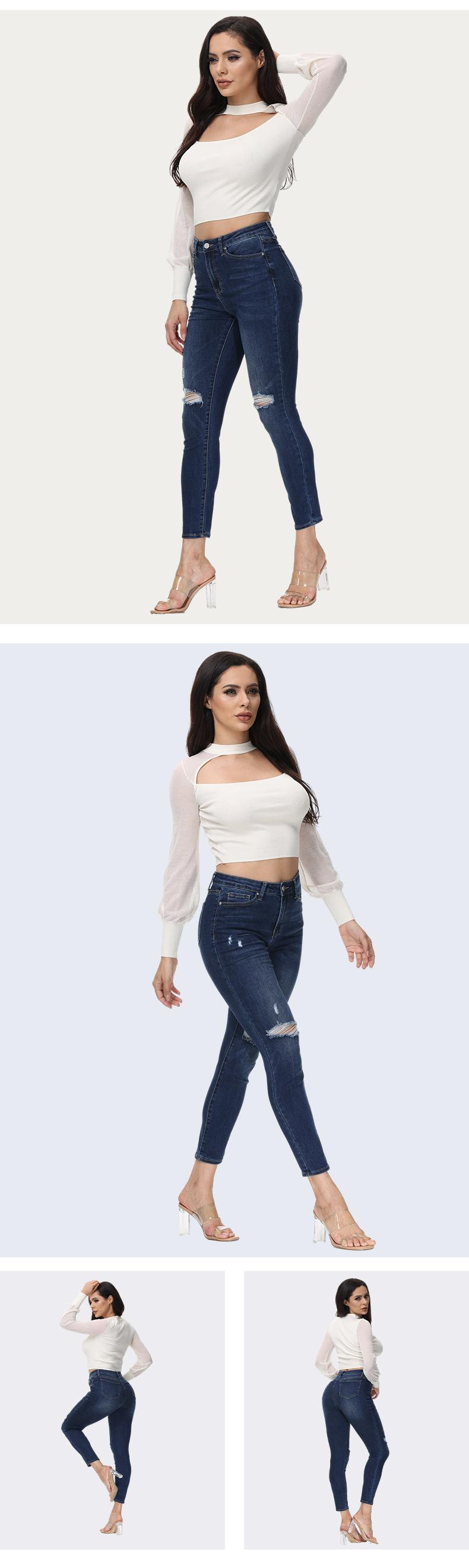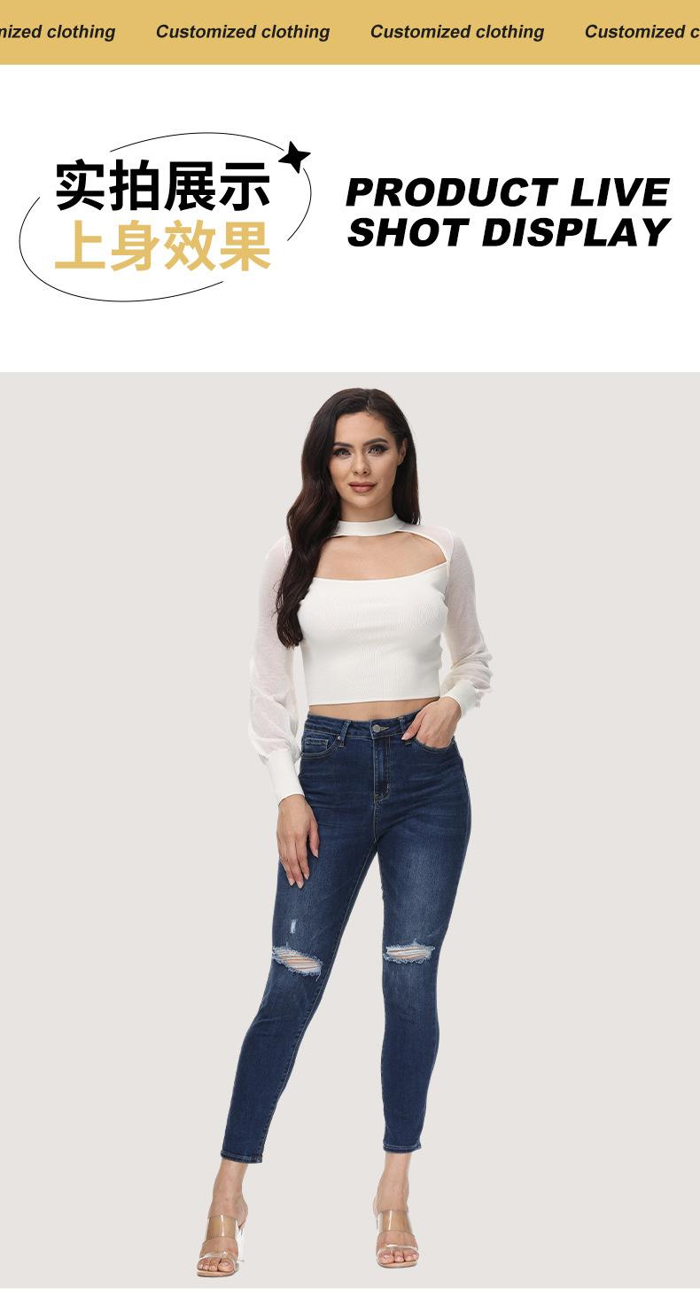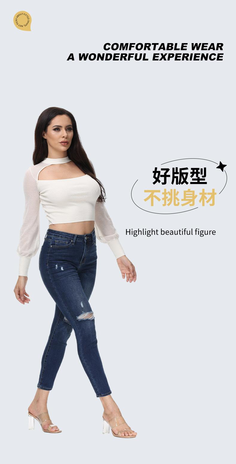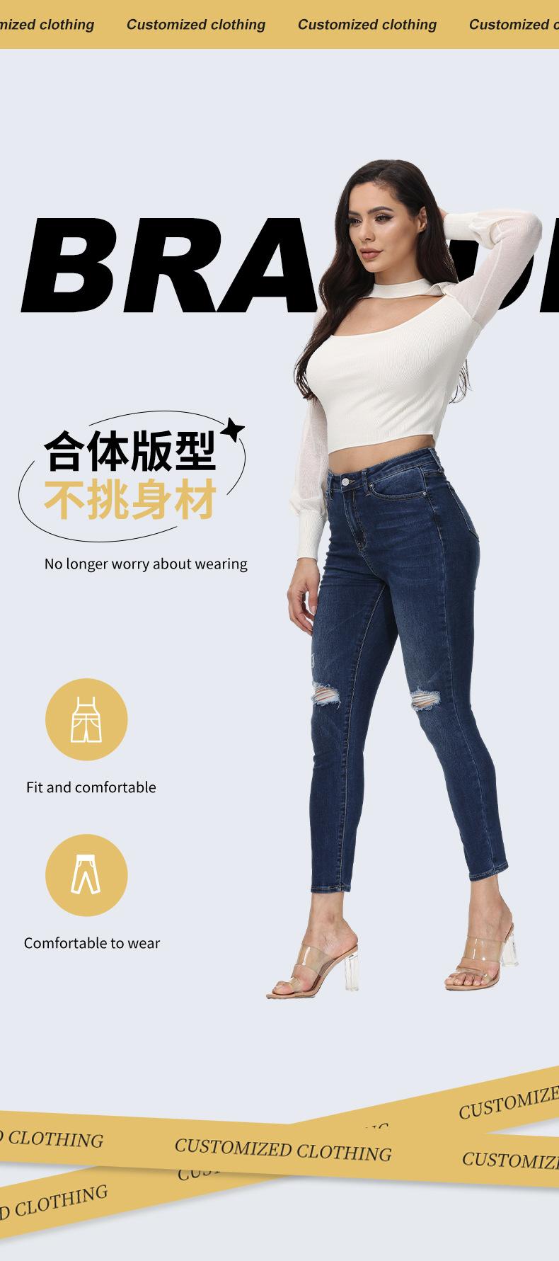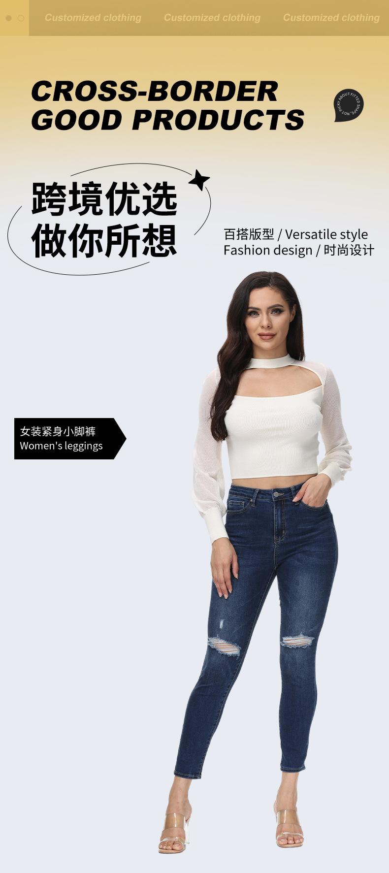 Jeans ajustados para mujer estilo europeo y americano color sólido pantalones ajustados lavados rotos comercio exterior transfronterizo jeans europeos y americanos para mujer
