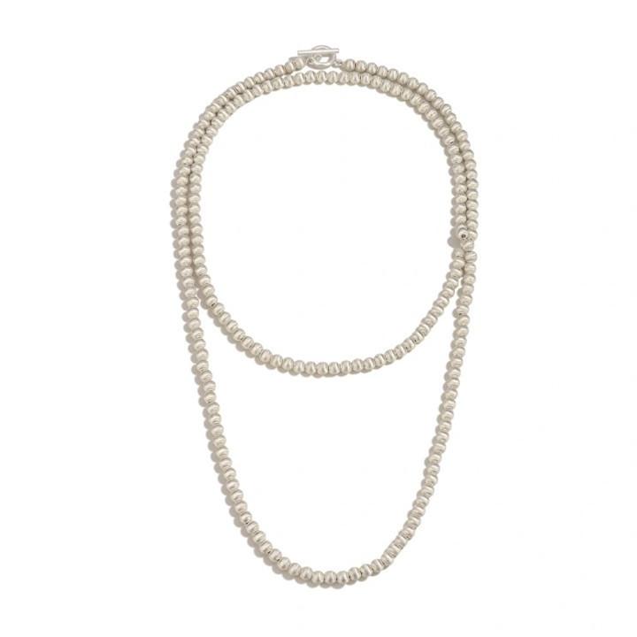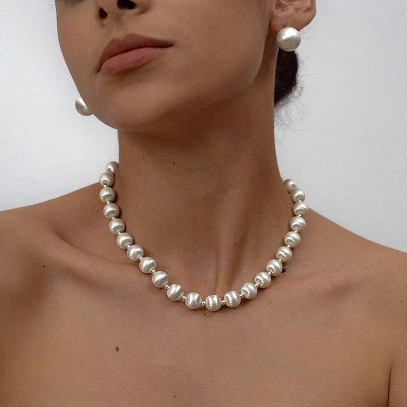 Heavy Brushed Silver 12MM Round Bead Necklace 43CM