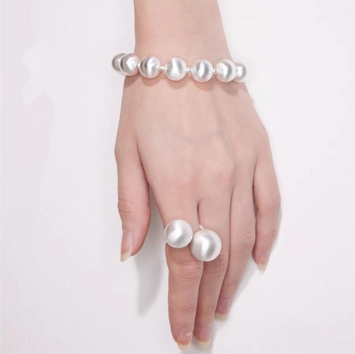 Heavy Brushed Silver 12MM Round Bead Necklace 43CM, Heavy wire drawing silver 6MM ball sweater chain 112CM, Wi...