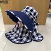 Sombrero de verano para mujer, sombrilla, sombrero desmontable para recoger té, sombrero de ala grande con protección solar, máscara de protección UV, sombrero de pescador