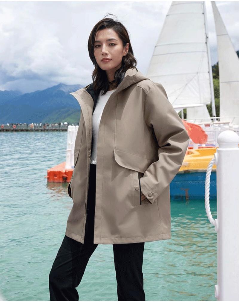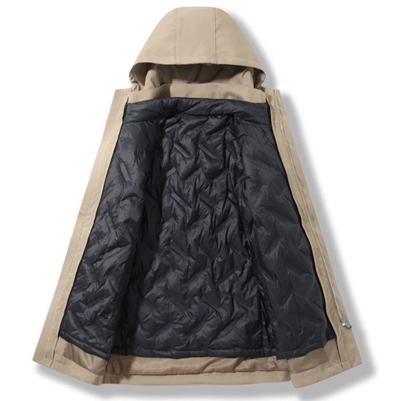 Chaqueta Tres en Uno Desmontable de Largo Medio con Forro de Terciopelo Austriaco, Logotipo Personalizado, Cálida, Cortavientos e Impermeable