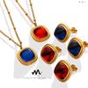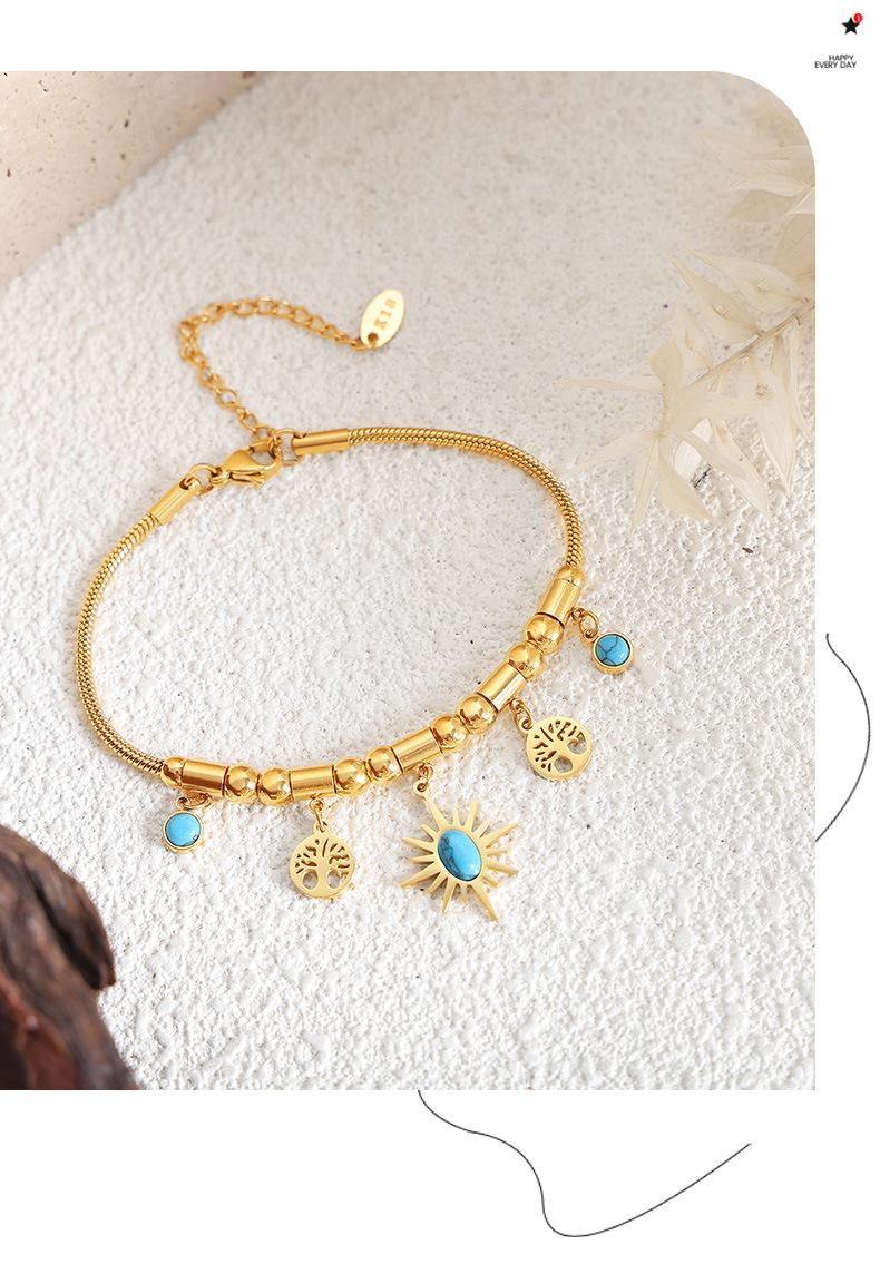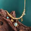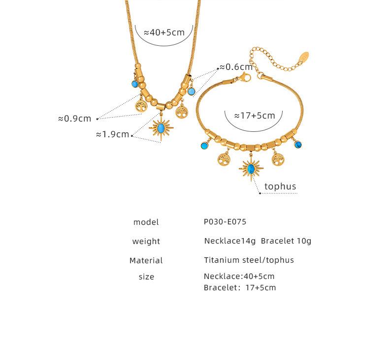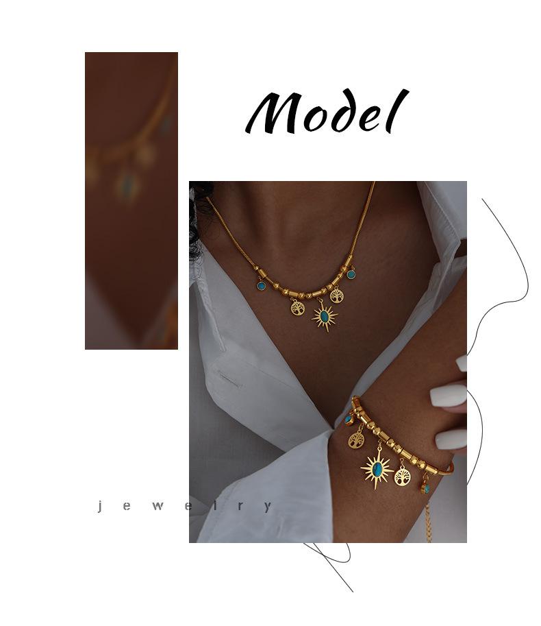 Collar y pulsera con colgante de turquesa y sol pequeño irregular con personalidad que combina con todo en Europa y Estados Unidos, joyería para mujer, traje de acero de titanio.