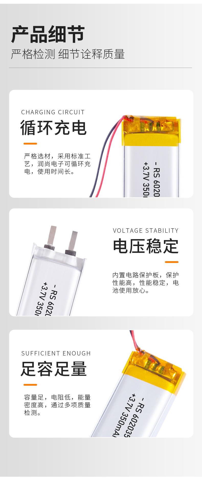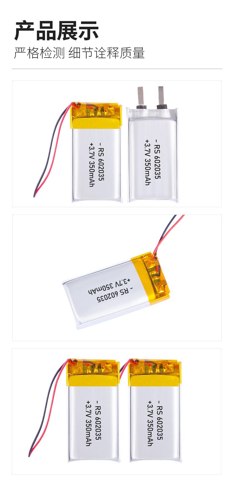 Batería de polímero de litio 602035 de 400 mAh y 3,7 V, adecuada para raspadores de masaje, instrumentos de belleza, batería de litio.