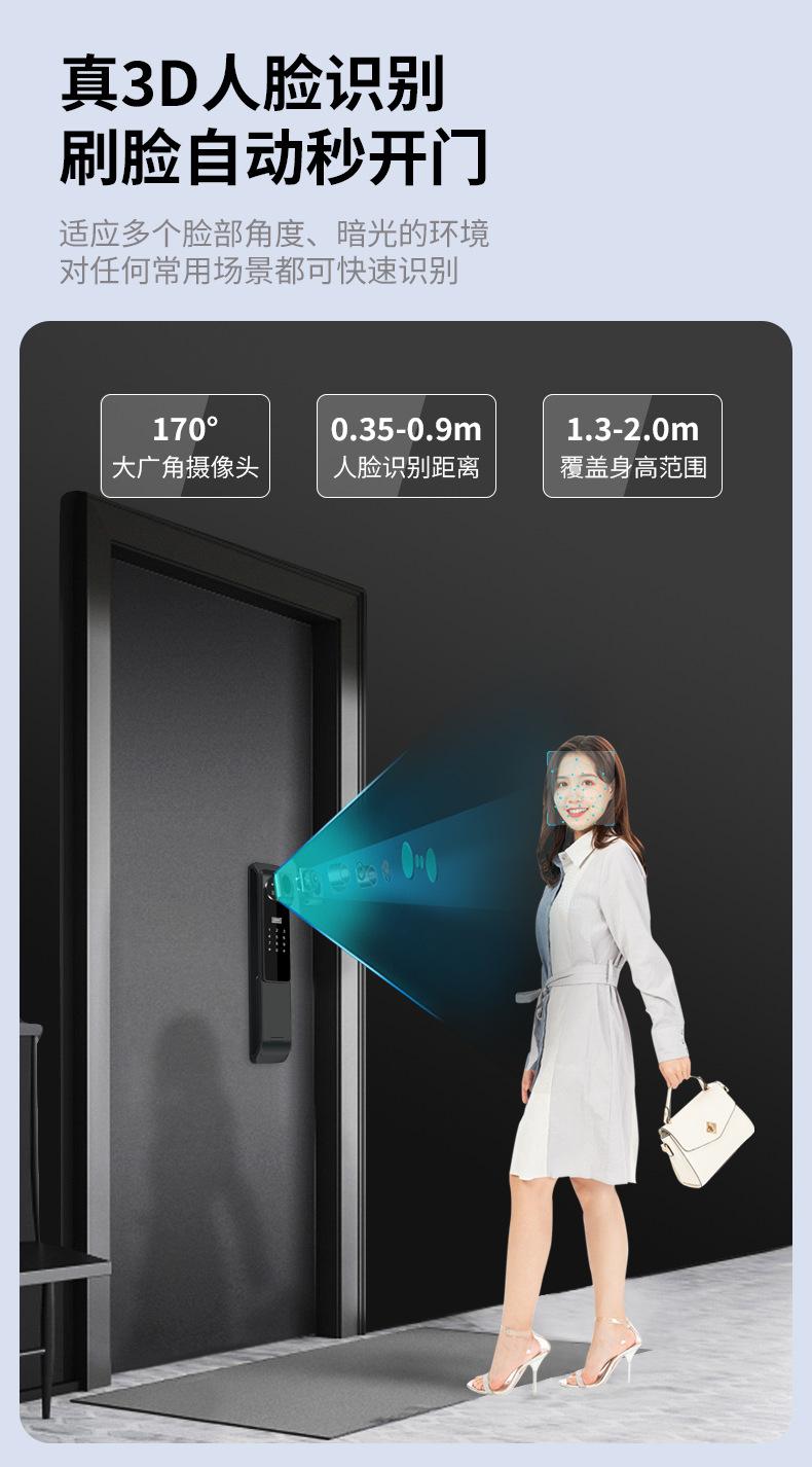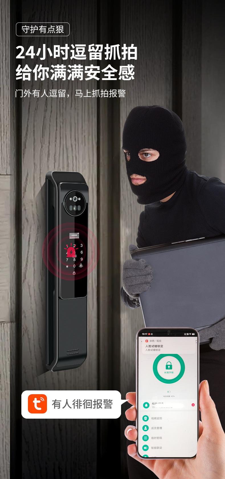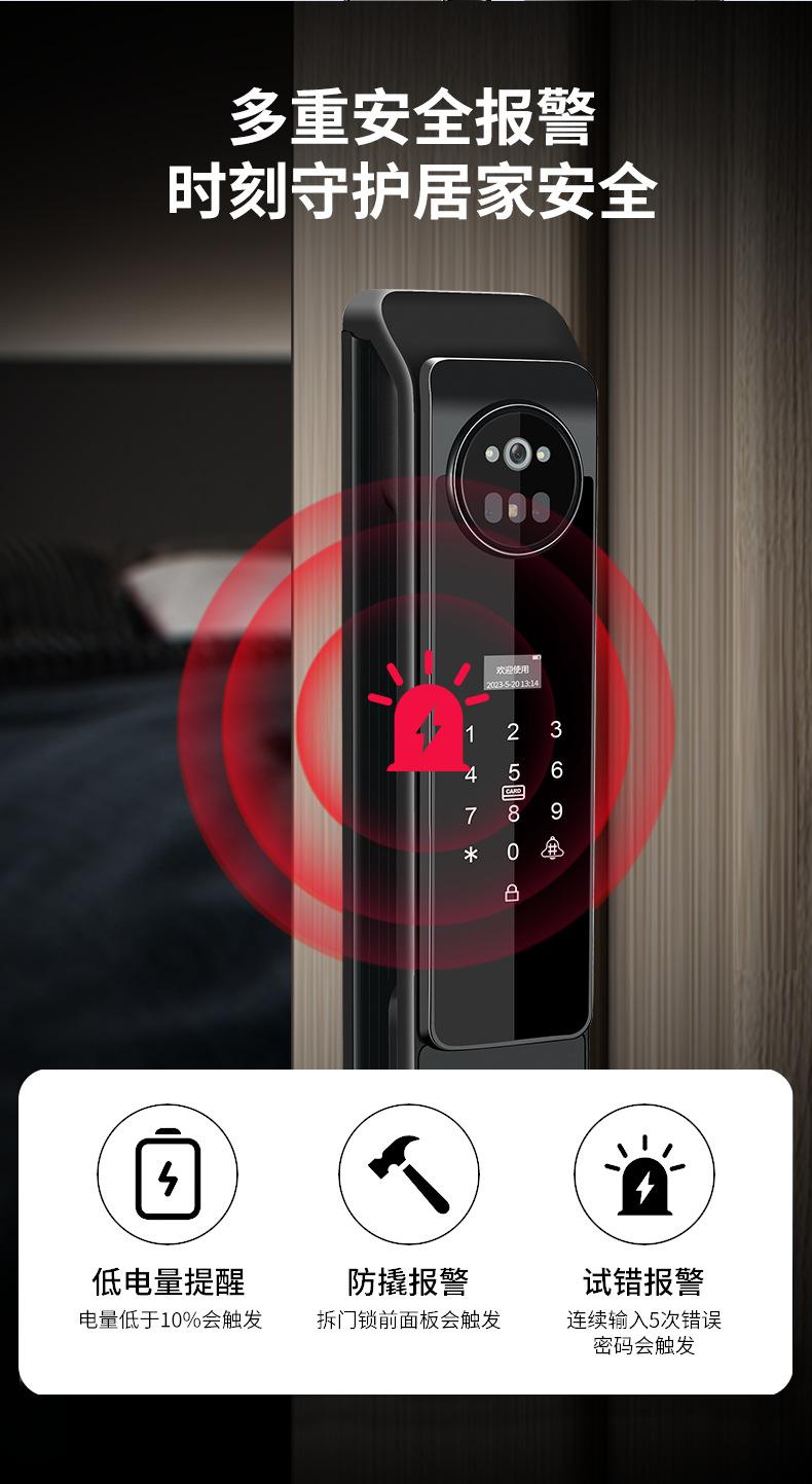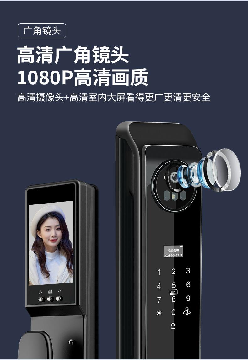 Fingerprint, Password, Bring key, Visible cat eye, Face recognition, No need to drill holes, Remote unlock