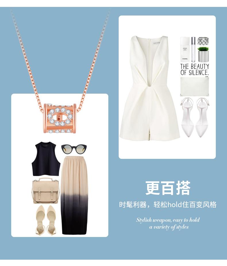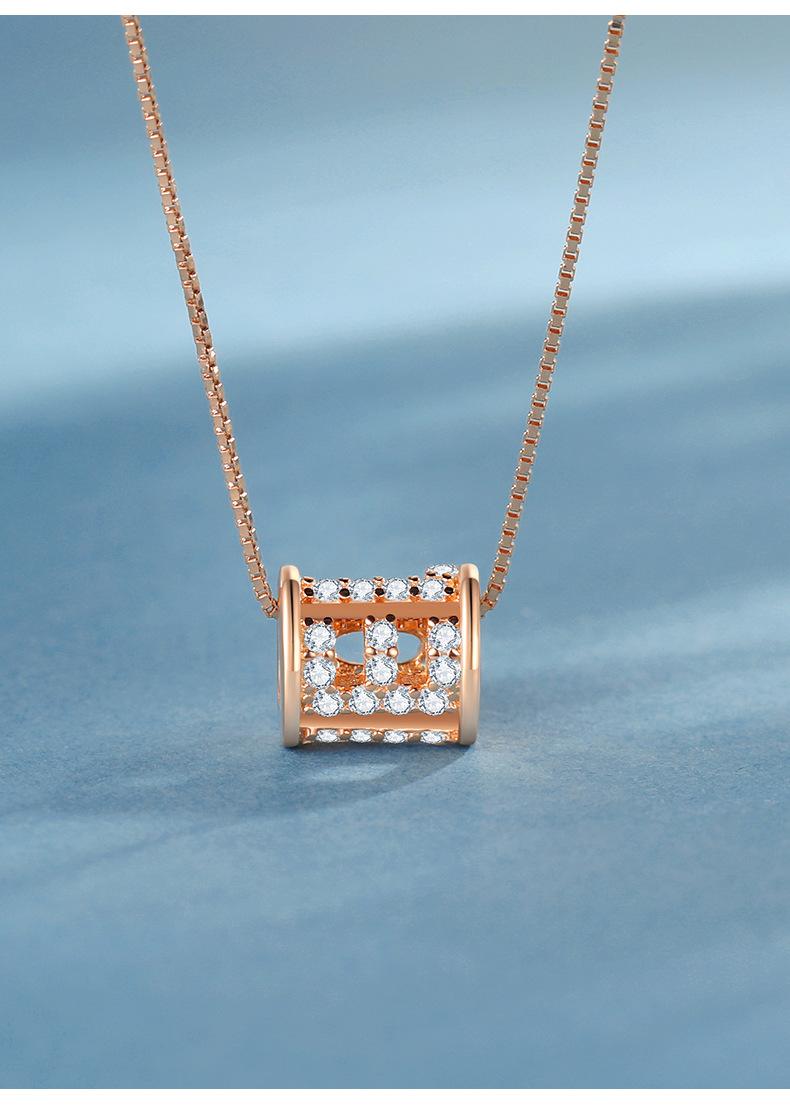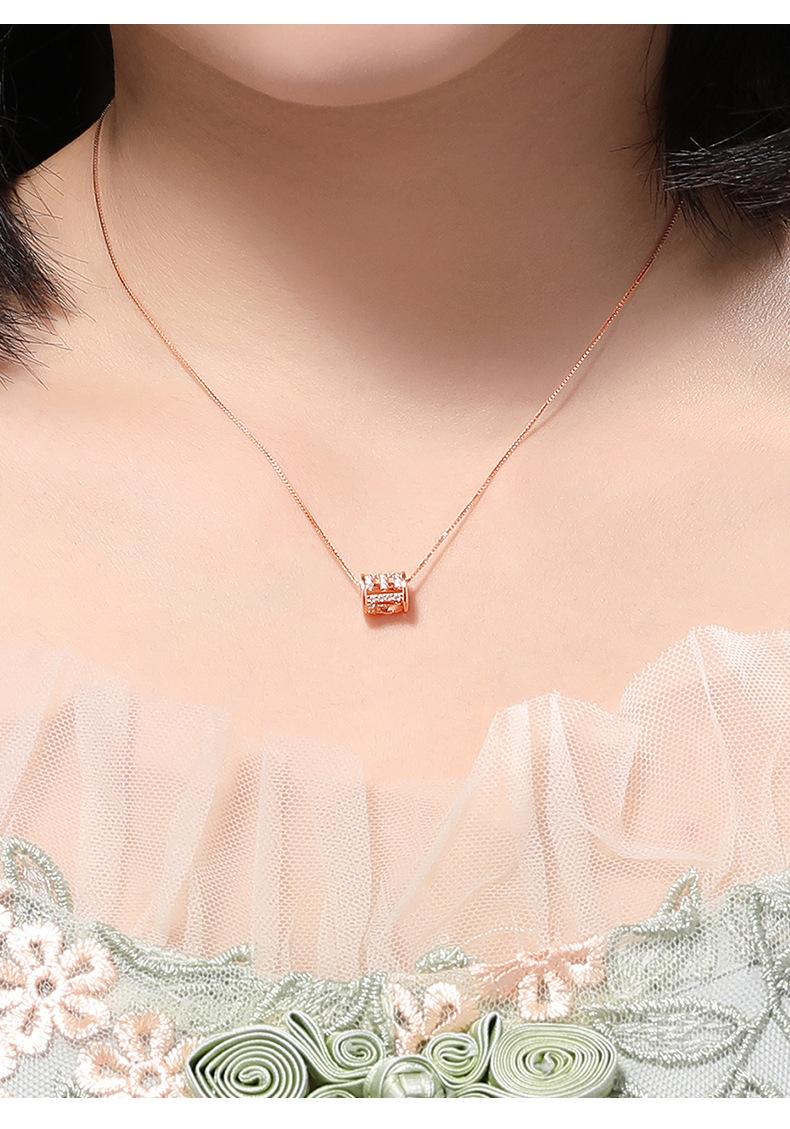 Collar redondo geométrico de noria para mujer, sencillo, combinable con todo, de plata de ley chapada en oro rosa, no se decolora fácilmente, diseño de nicho de joyería