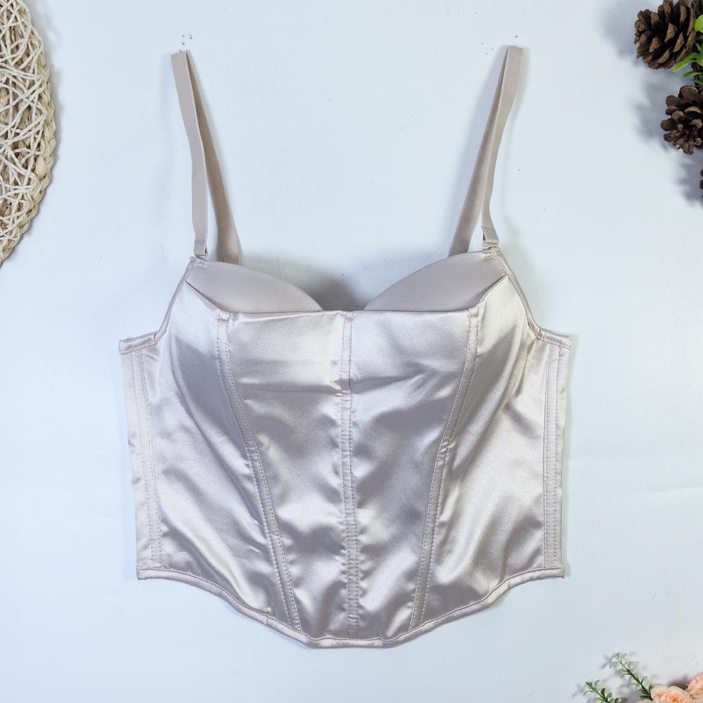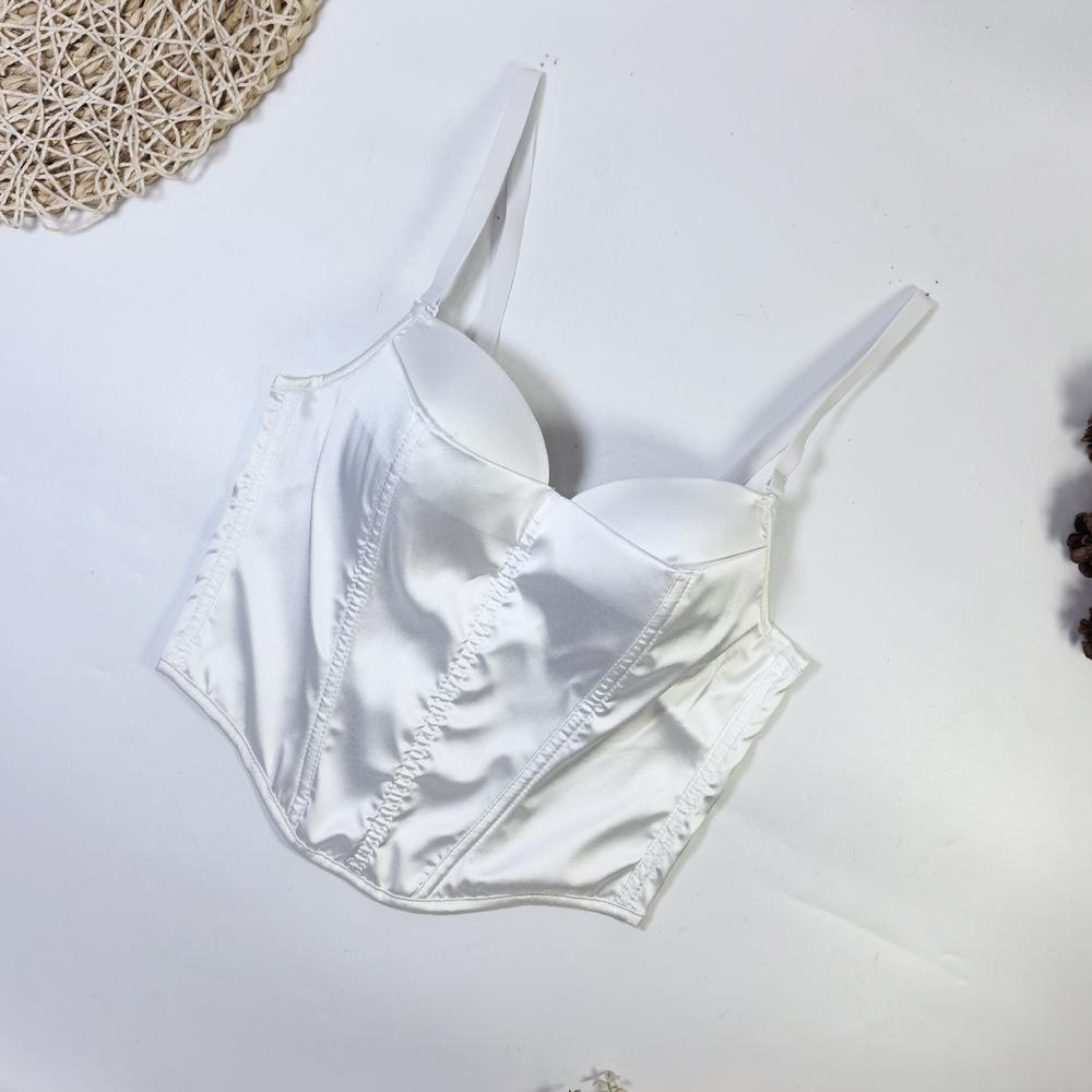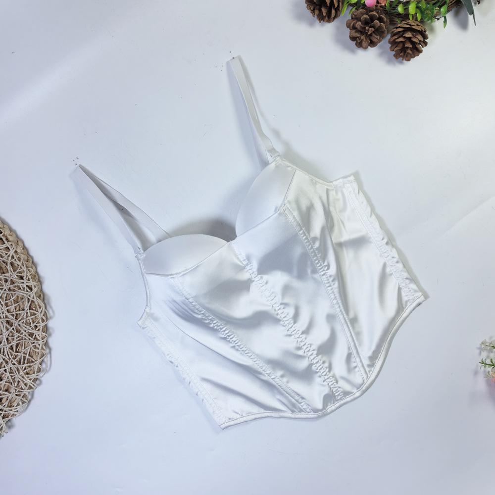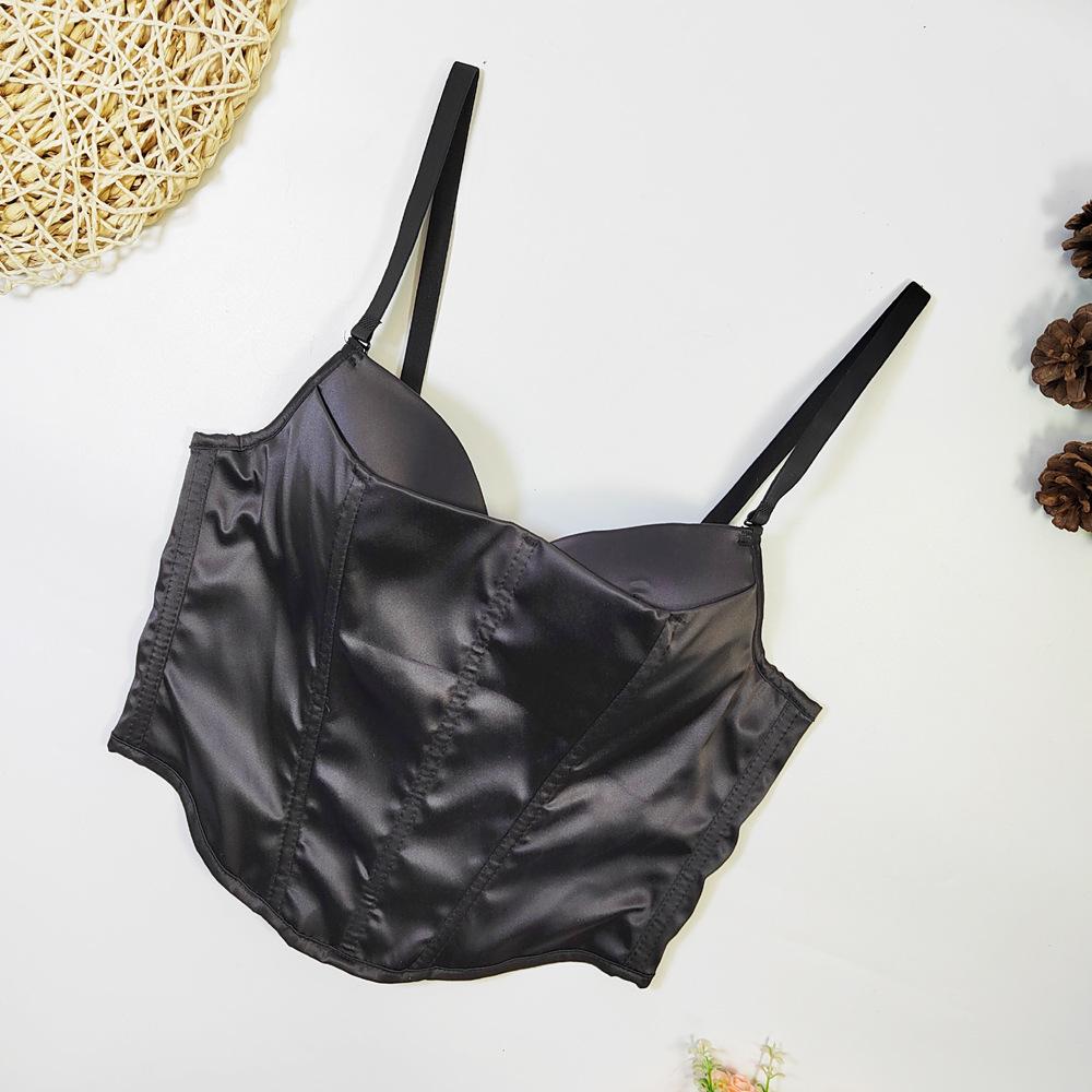 Sujetador de espiga de pescado de dos piezas falso, con bolsillo grande irregular interior, copa triangular decorativa, tirantes para discoteca para mujer