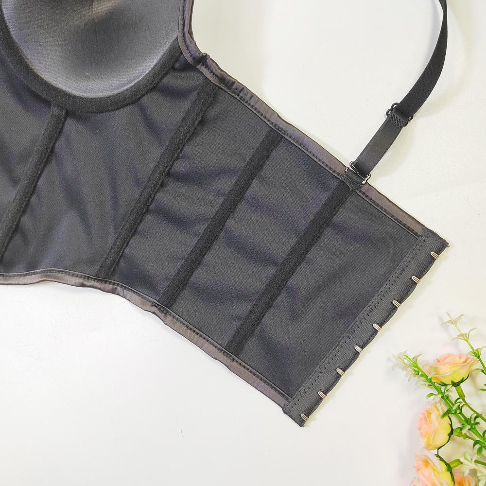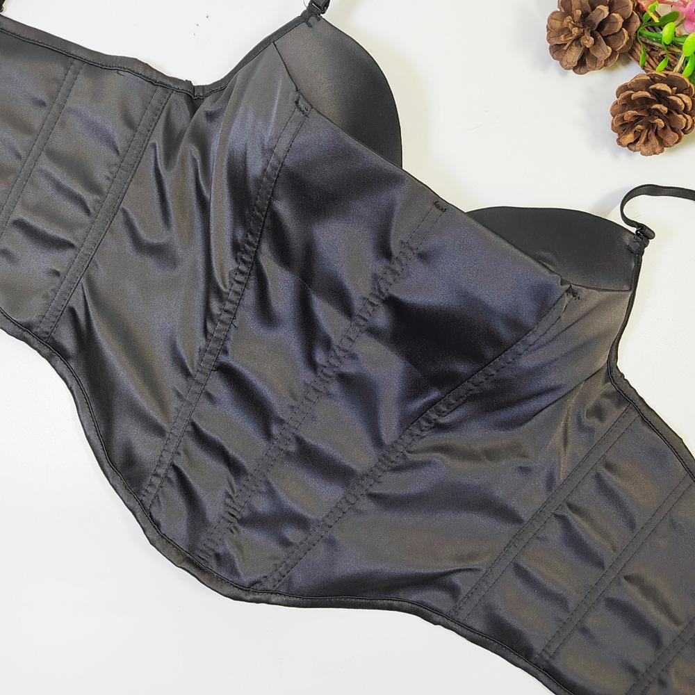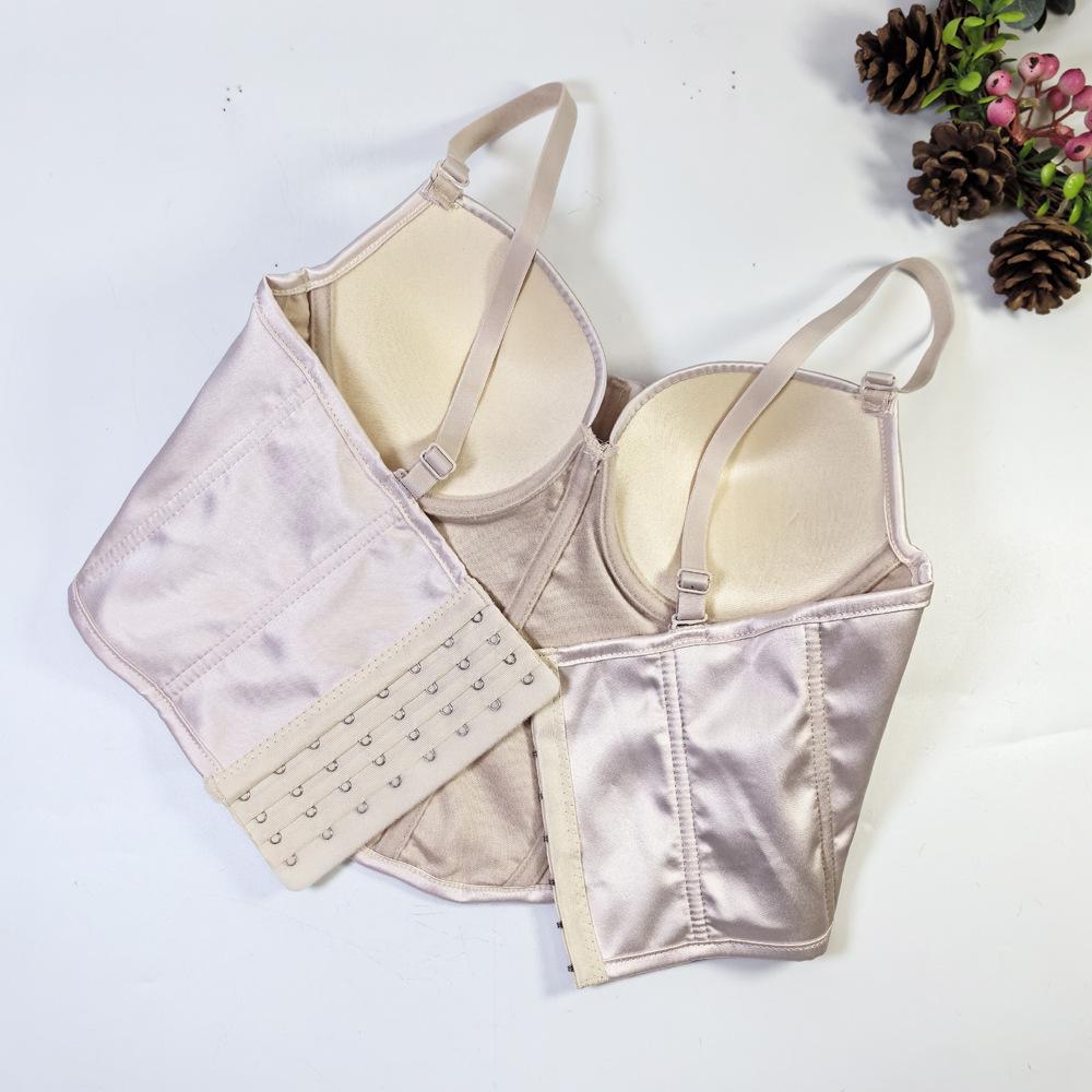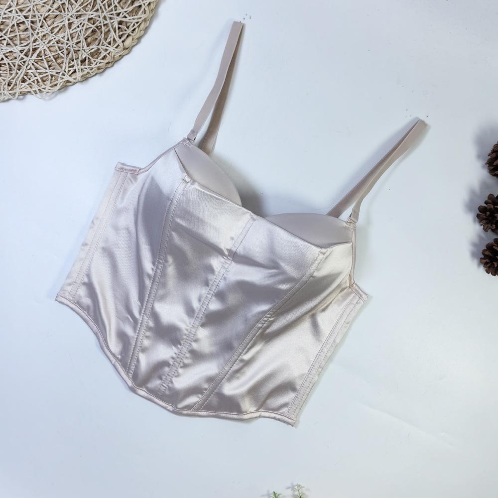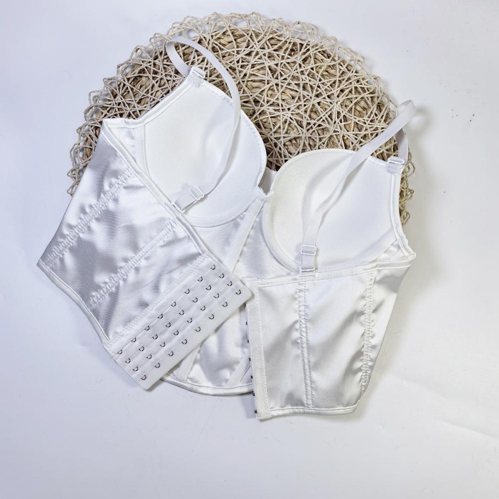 Sujetador de espiga de pescado de dos piezas falso, con bolsillo grande irregular interior, copa triangular decorativa, tirantes para discoteca para mujer