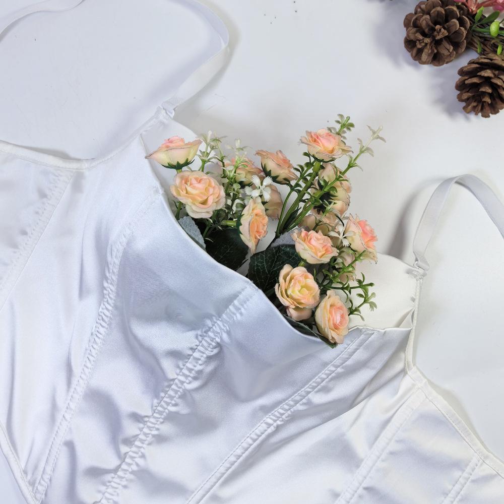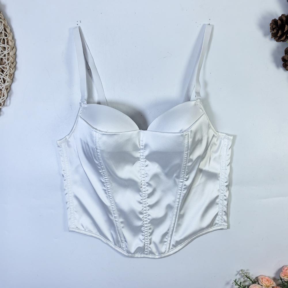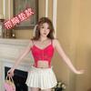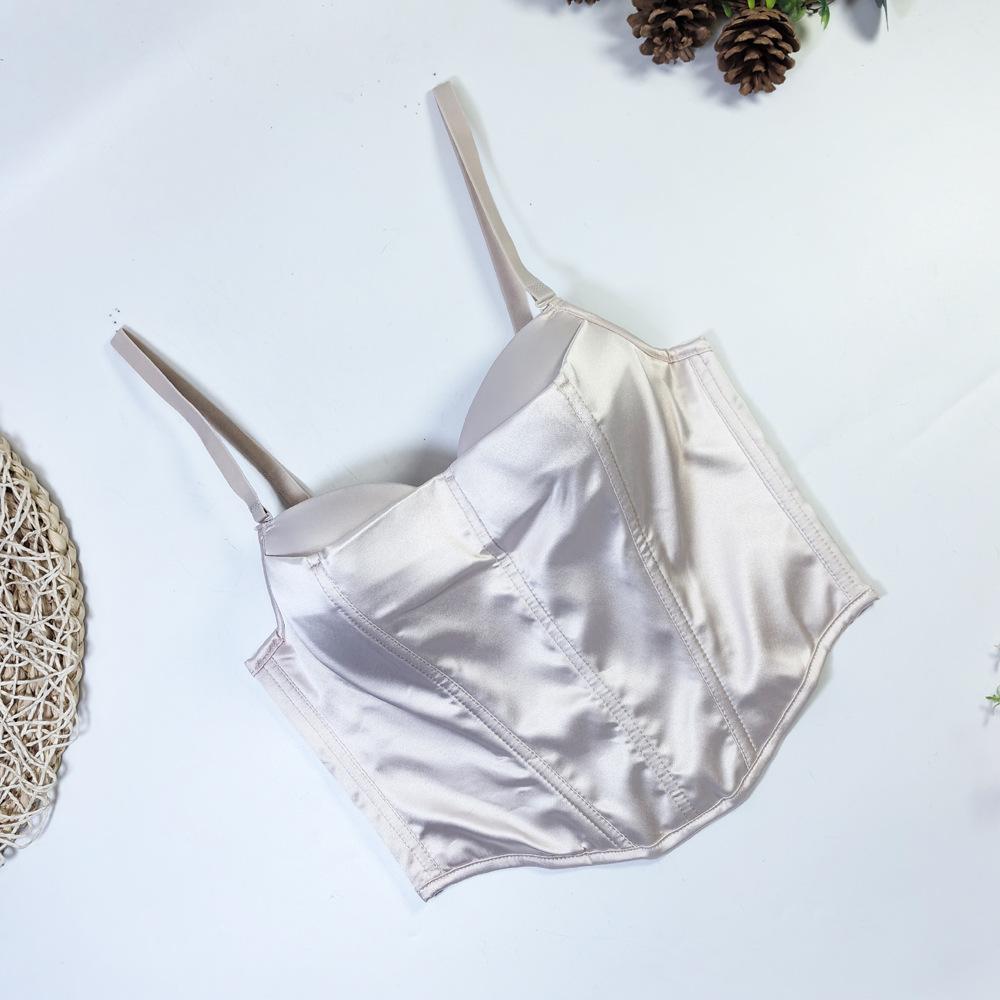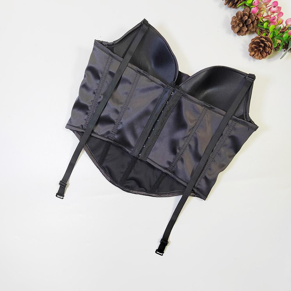 Sujetador de espiga de pescado de dos piezas falso, con bolsillo grande irregular interior, copa triangular decorativa, tirantes para discoteca para mujer