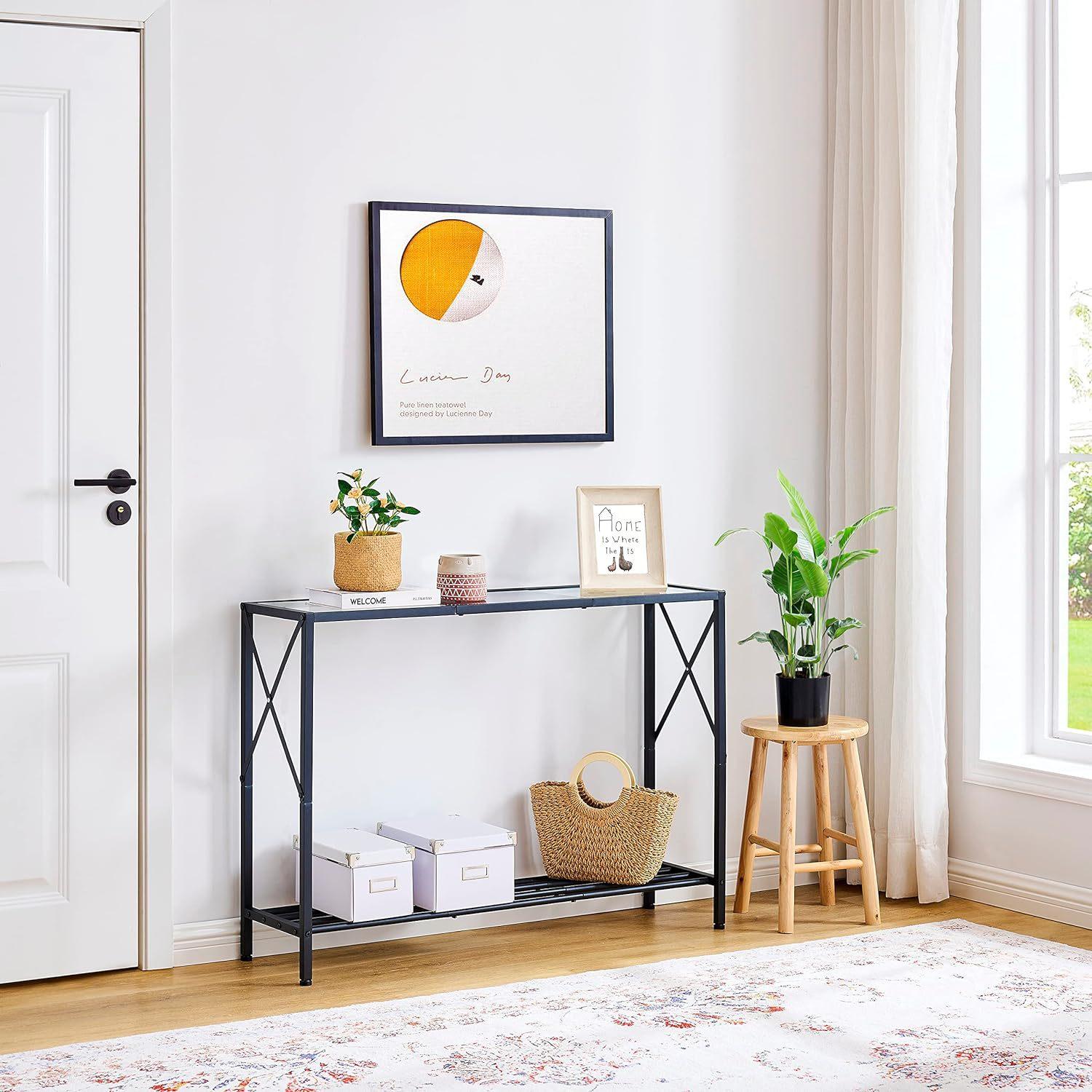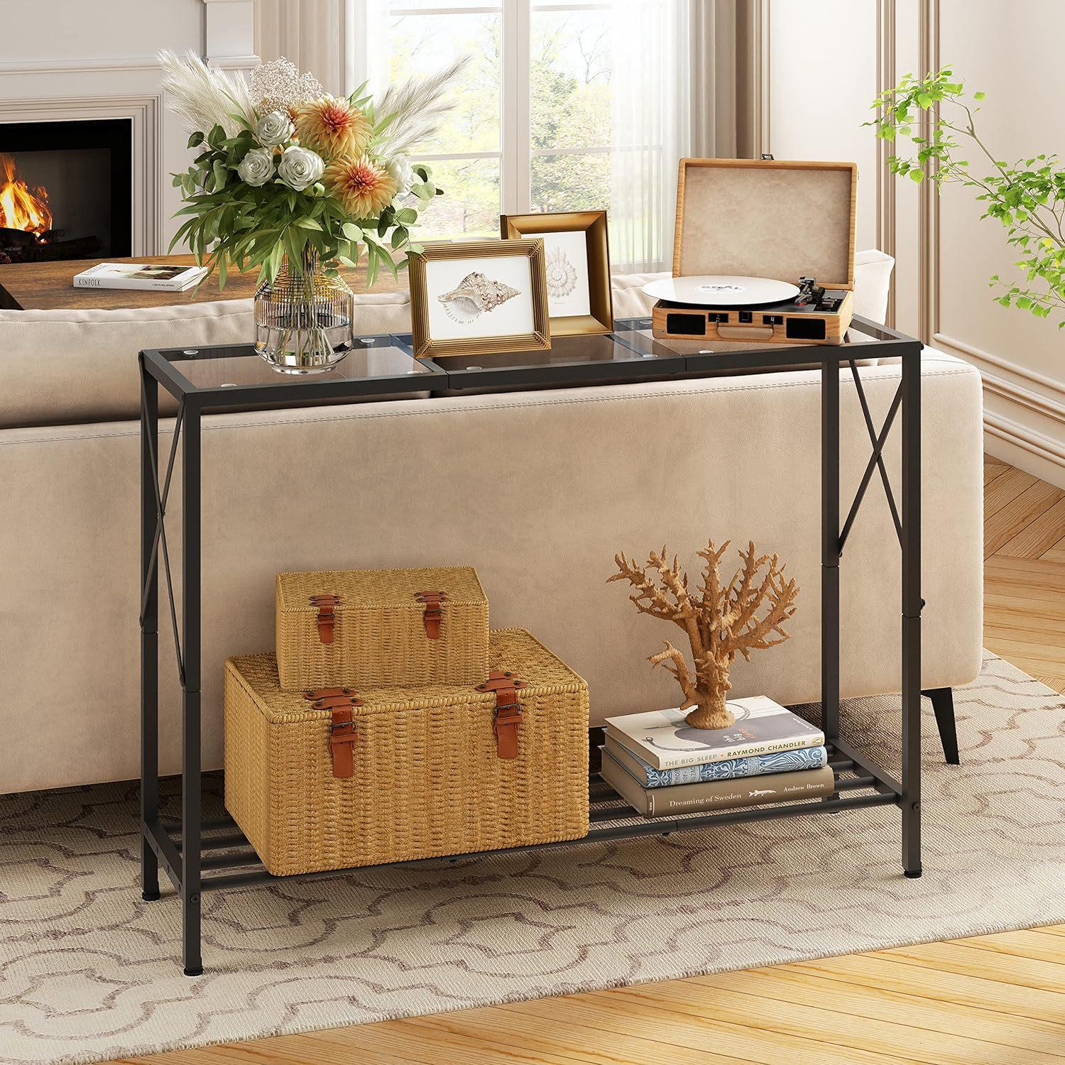 Mesa de Consola de Porche de Vidrio Templado Guangdong Foshan Fábrica de Origen Personalizada Ahora Mesa de Almacenamiento de Doble Capa