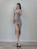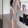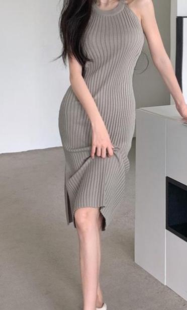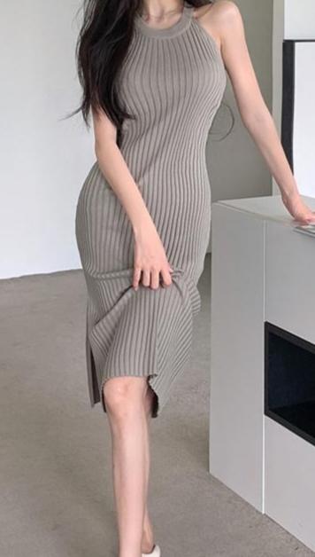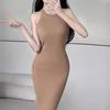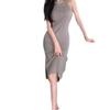 Vestido de Punto con Cuello Halter Estilo Lujuria Pura Falda de Verano para Mujer Largo hasta el Hombro Sexy Ajustado Asimétrico Falda a la Cadera Falda Corta