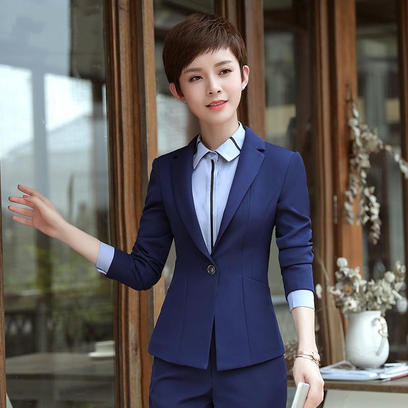 Traje de negocios de otoño para mujer, vestido de moda, traje para entrevistas, entallado, traje elegante negro, ropa de trabajo