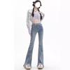 Vaqueros micro acampanados estilo retro americano para mujer, pantalones de herradura azules lavados, suaves, elásticos, adelgazantes, de cintura alta, de primavera, nuevos, a la moda