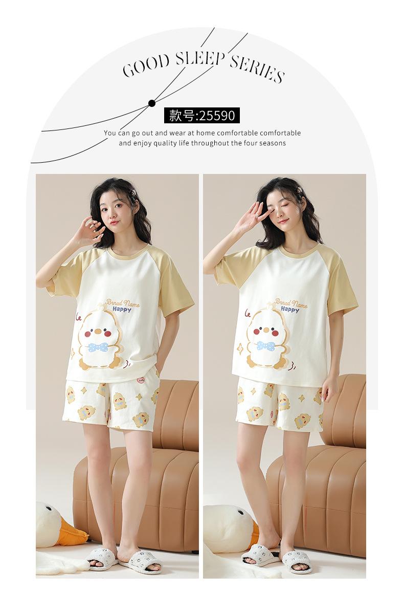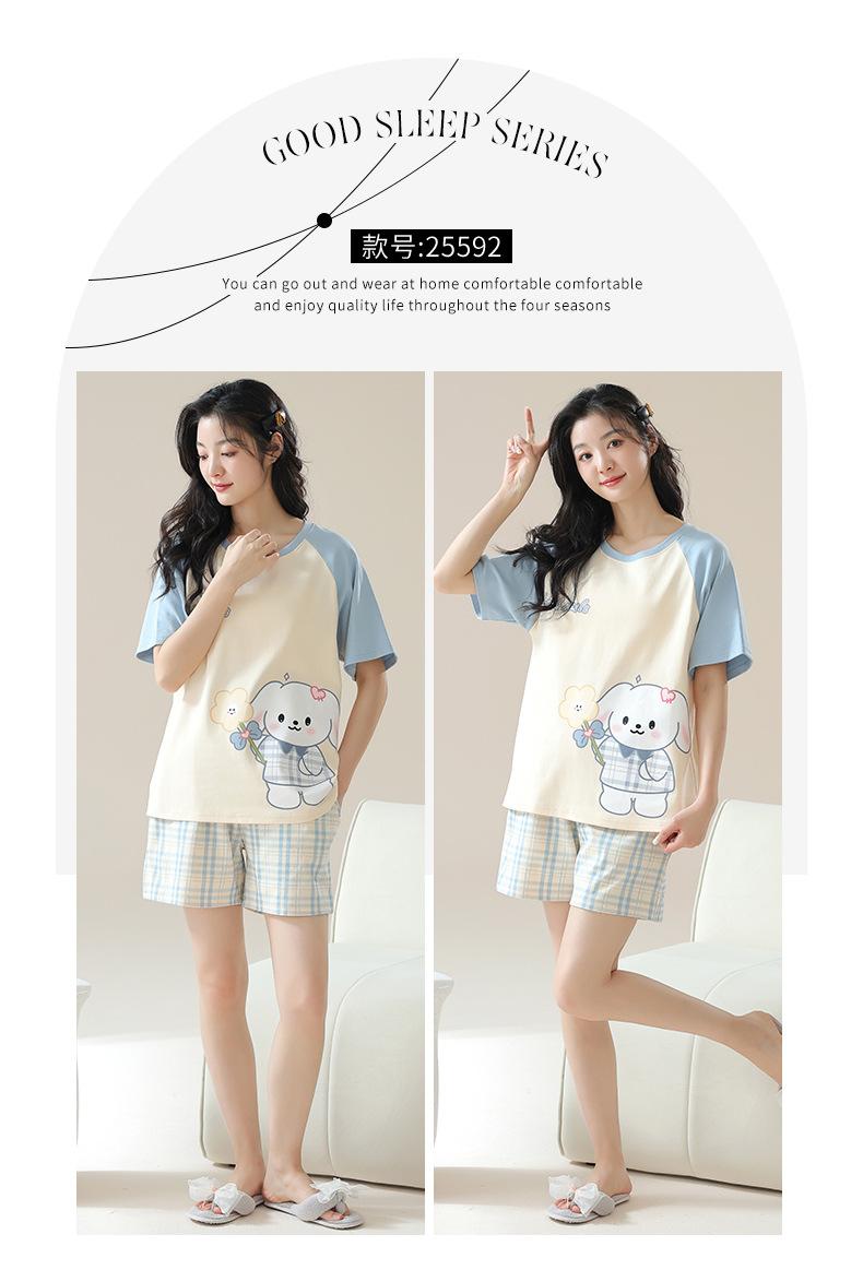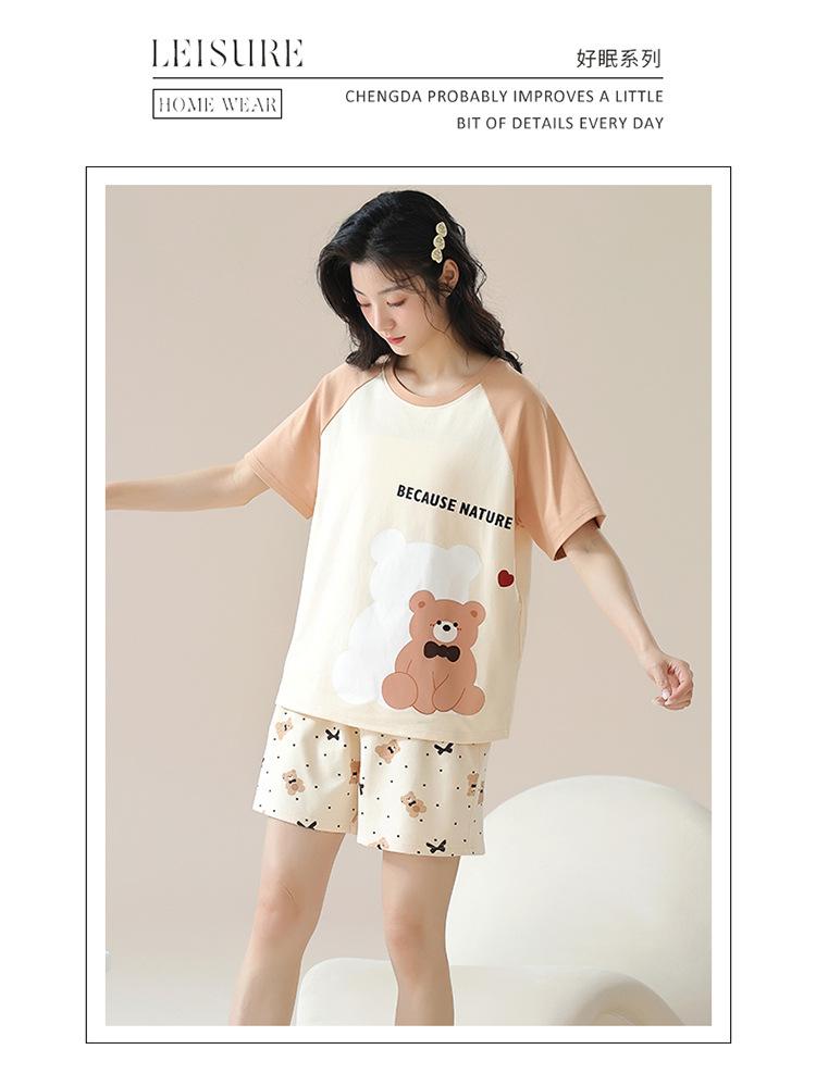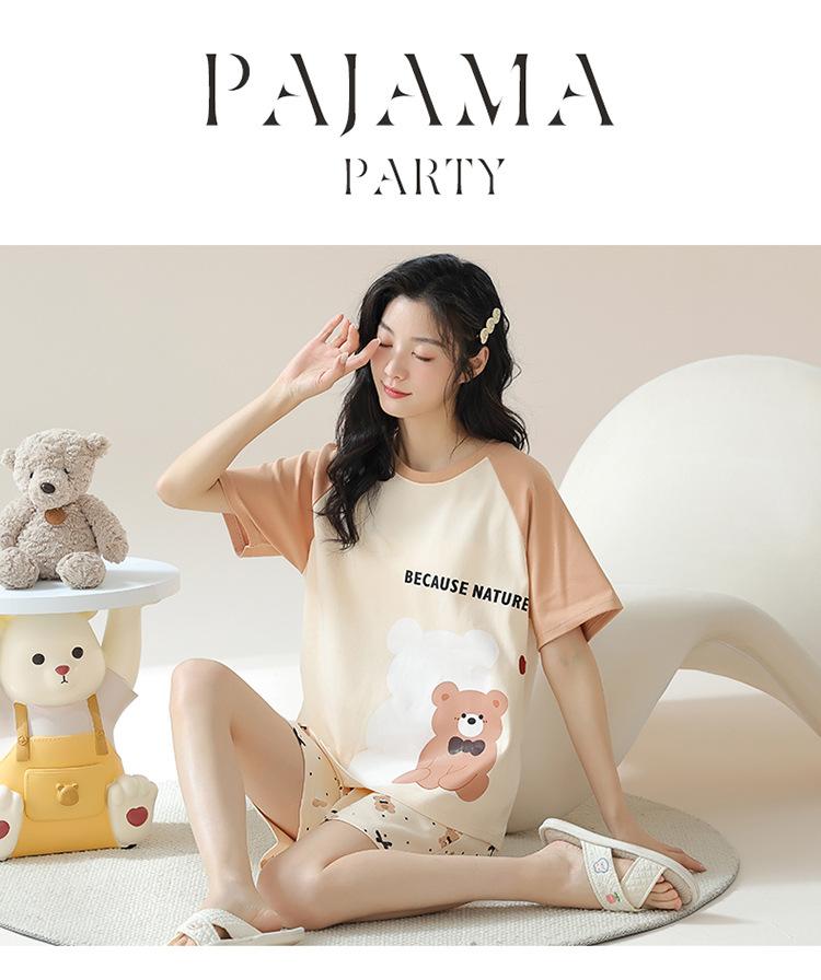Pijamas de mujer nuevos de verano finos de manga corta pantalones cortos lindo traje de dibujos animados se puede usar al aire libre ropa de casa cómoda e informal
