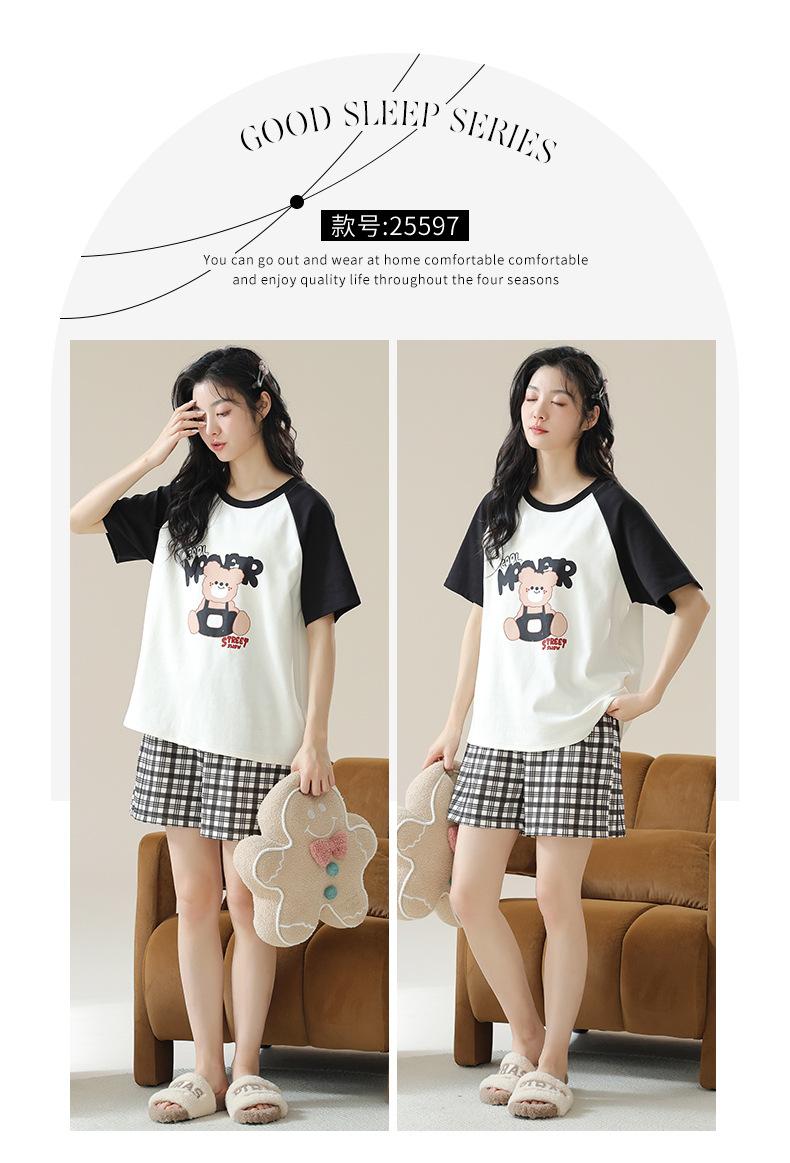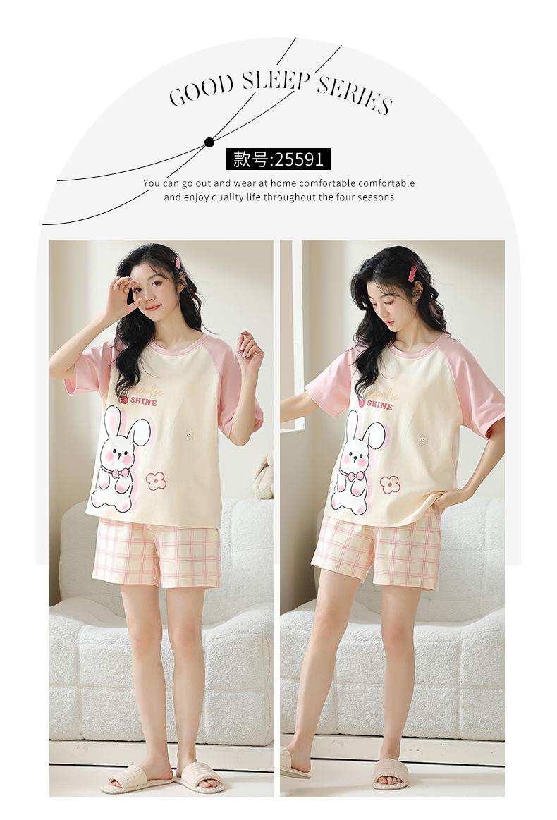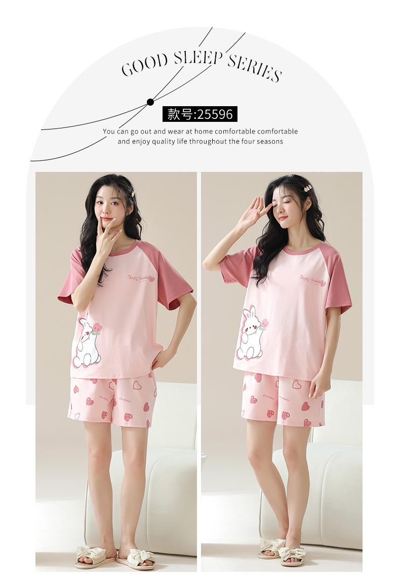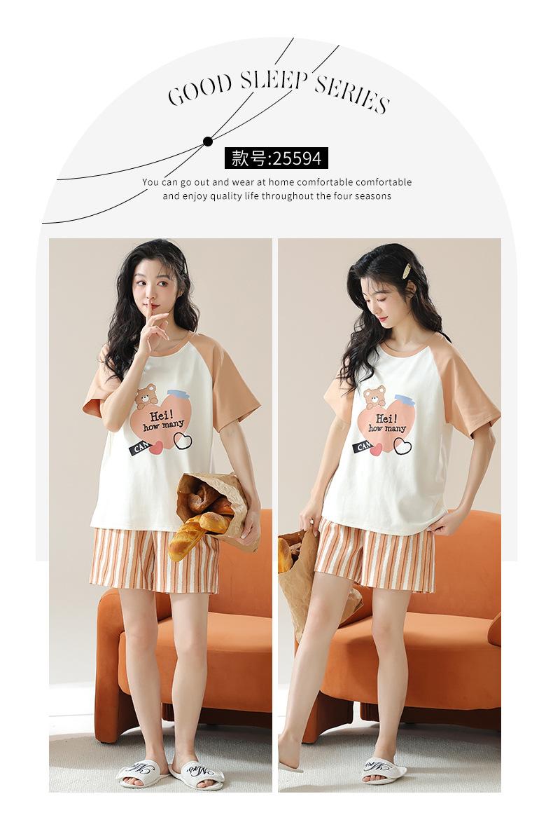 Pijamas de mujer nuevos de verano finos de manga corta pantalones cortos lindo traje de dibujos animados se puede usar al aire libre ropa de casa cómoda e informal