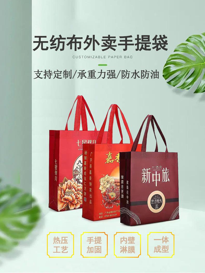Bolsa de embalaje para llevar de comida rápida no tejida de gran venta, bolsa de embalaje para pastel de luna de mediados de otoño, bolso de mano recubierto con LOGO personalizado