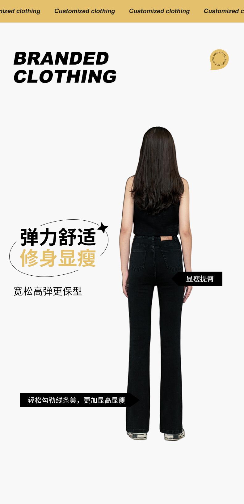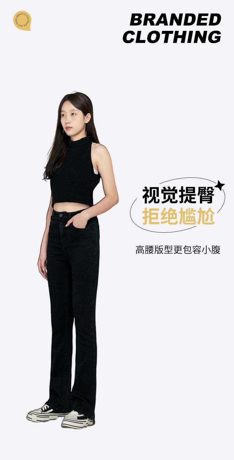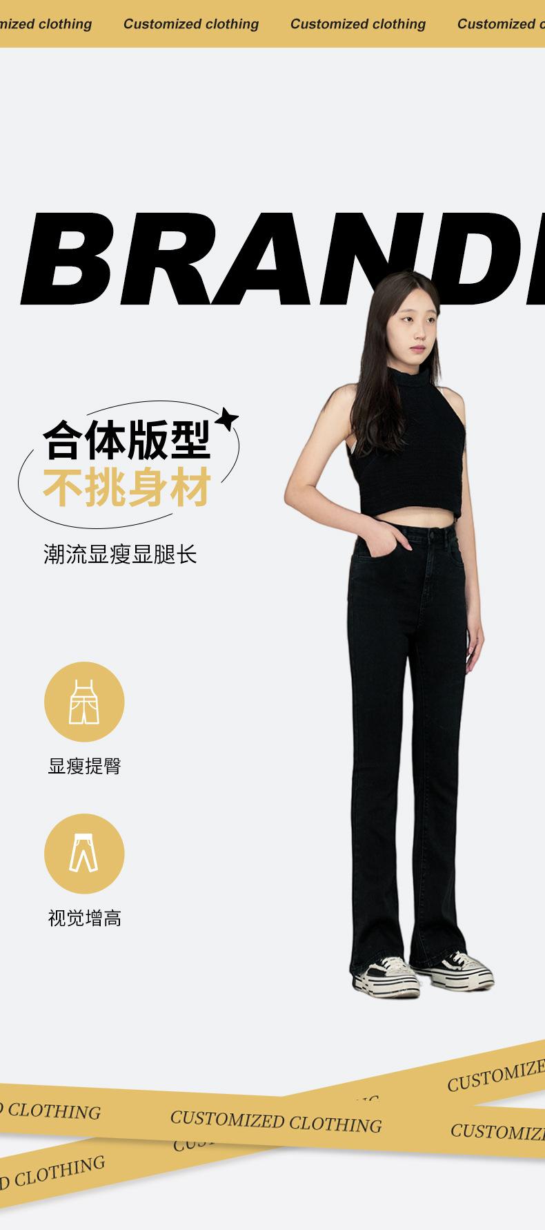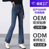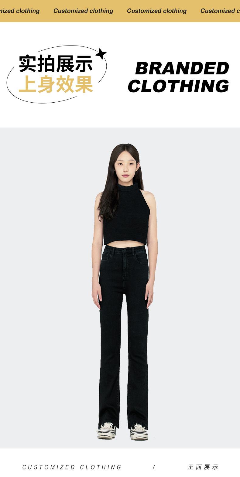 Jeans de Mujer Personalizados por el Fabricante Nuevos Jeans de Terciopelo de Cintura Alta y Alta Elasticidad Pantalones de Herradura Ligeramente Acampanados con Abertura Lateral