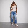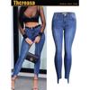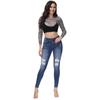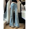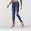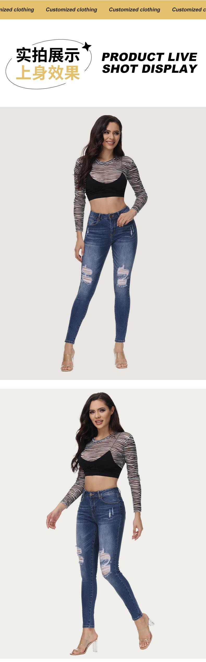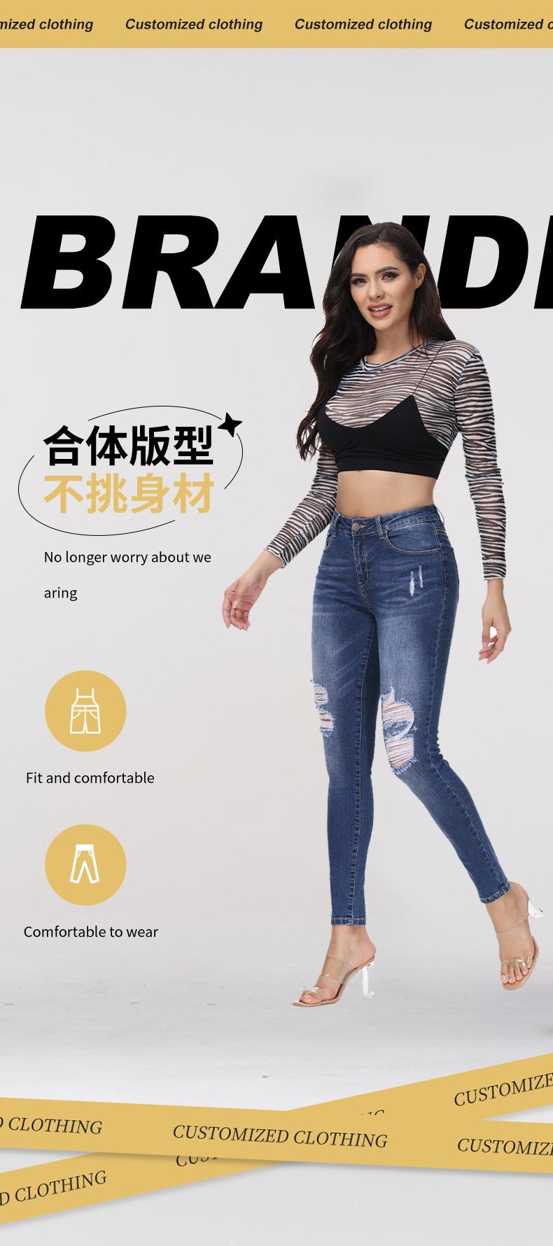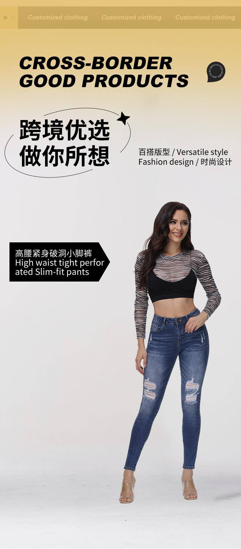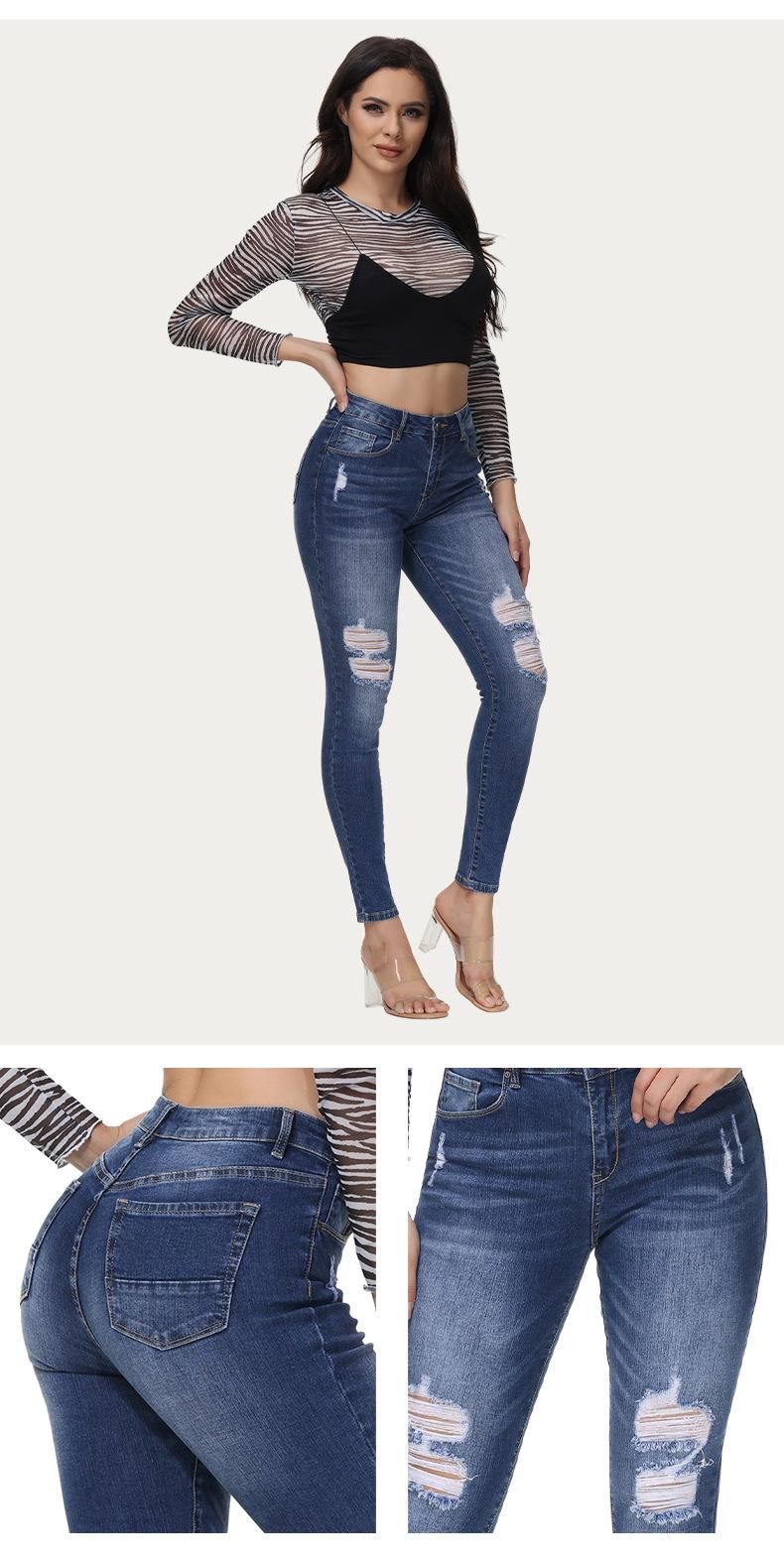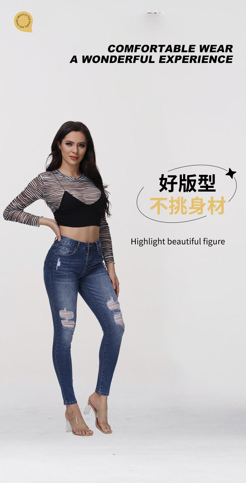 Vaqueros ajustados de estilo retro europeo y americano con cintura alta, rotos y corte entallado para mujer.