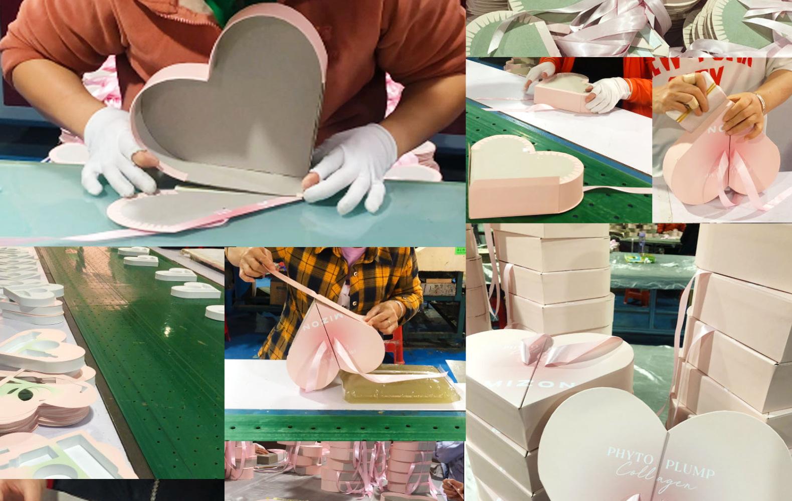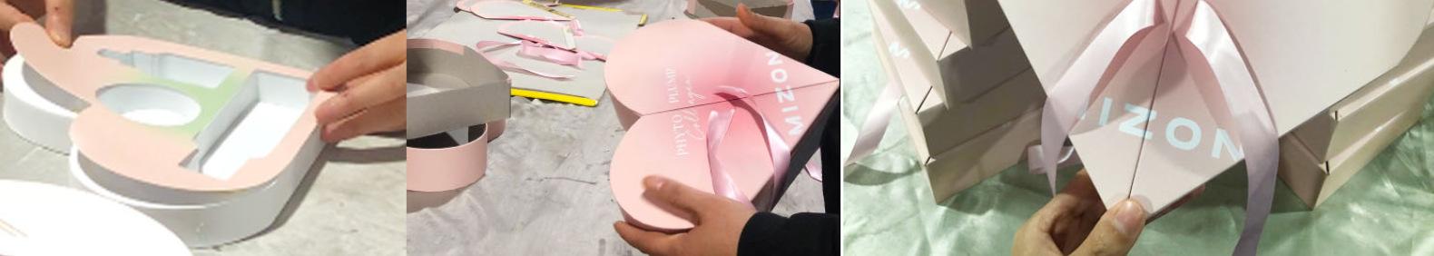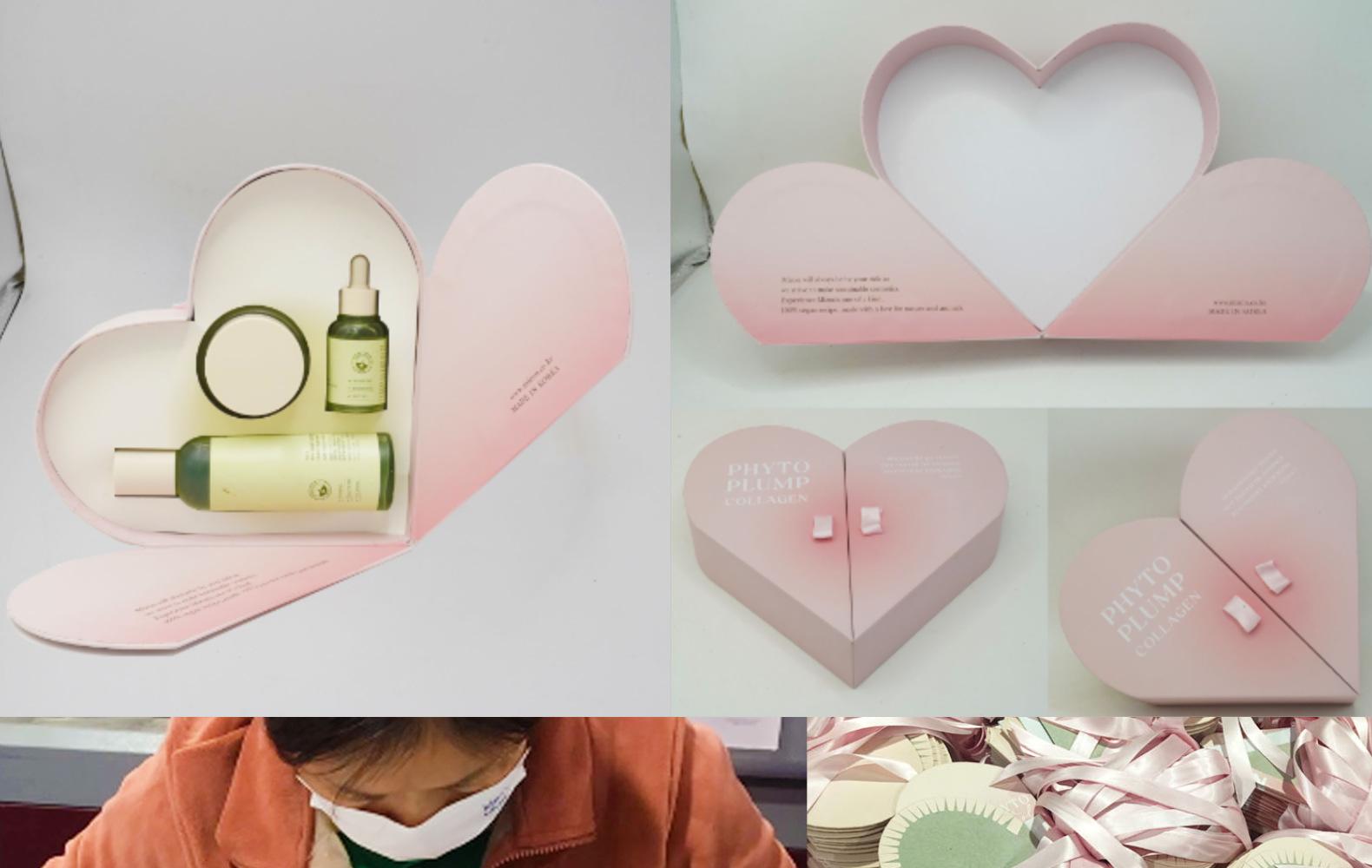 Caja de regalo de San Valentín, caja rosa con lazo de corazón y doble puerta, caja personalizada para productos de cuidado de la piel de alta gama.