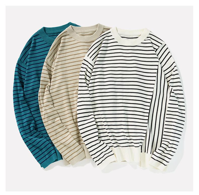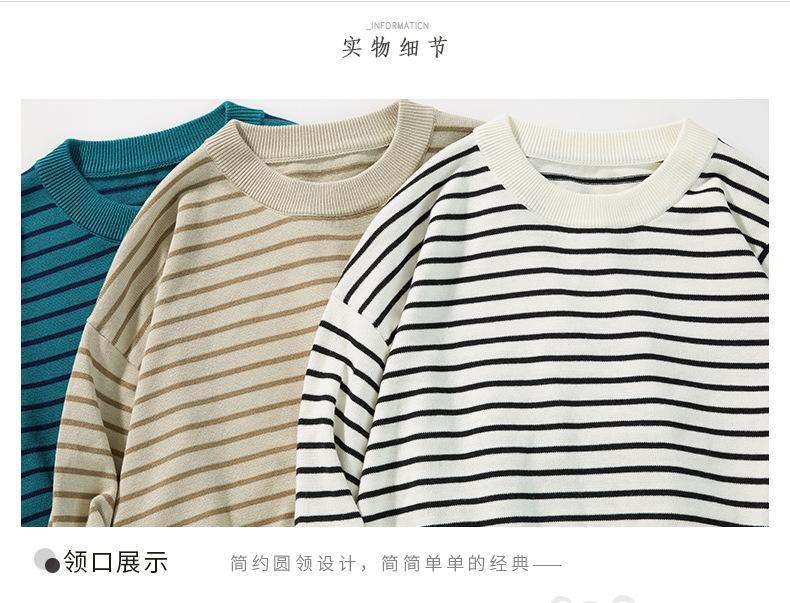 2023 Otoño e Invierno Nuevo Jersey de Punto Rayado Estilo Coreano de Alta Calidad Combinable Adelgazante Suave Ceroso Personalización