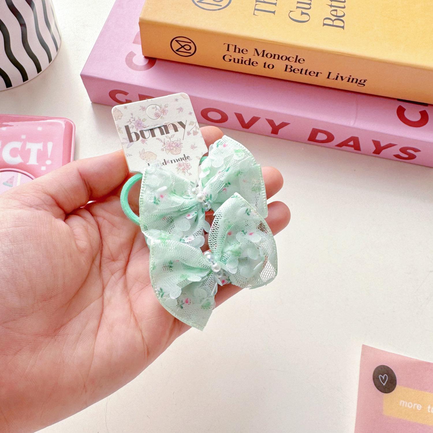 Pink BB clip, Blue BB clip, Green BB clip, Beige BB clip, Blue hair ring, Green Hair ring, Pink hair band, Beige hair band