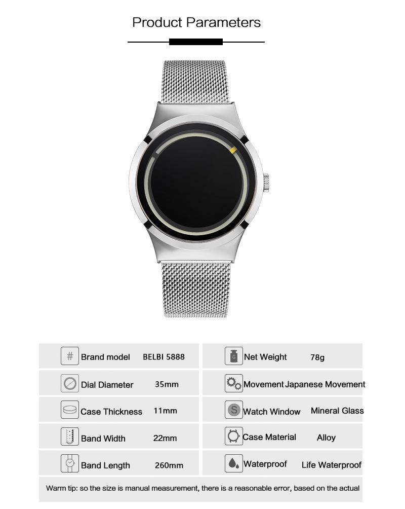 Reloj de cuarzo resistente al agua para hombre y mujer, con concepto de marca BELBI, explosivo y de moda para parejas, creativo y casual.