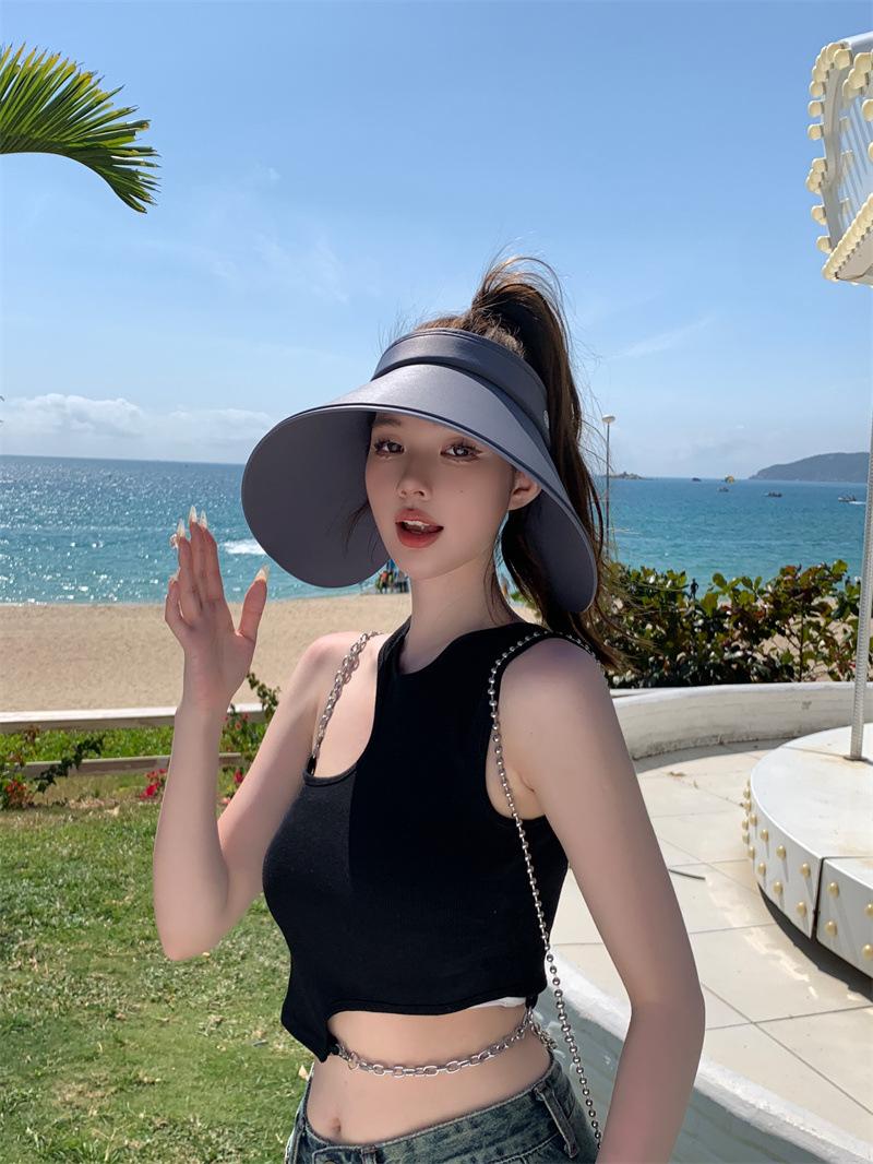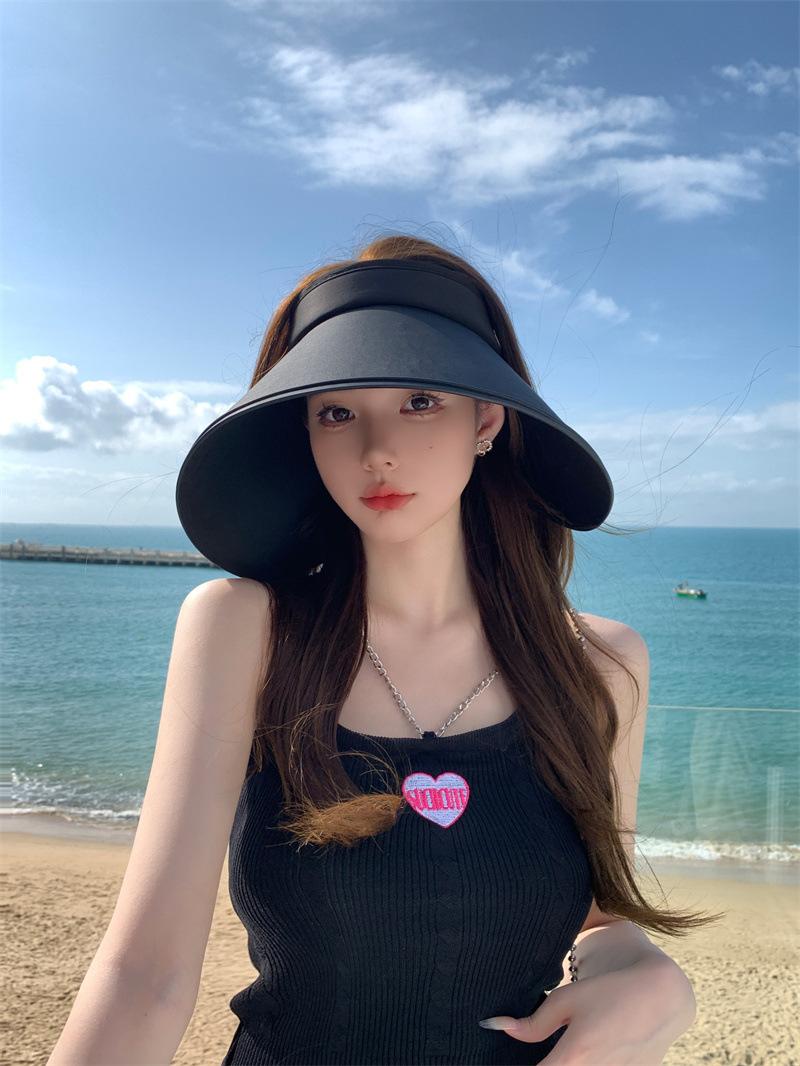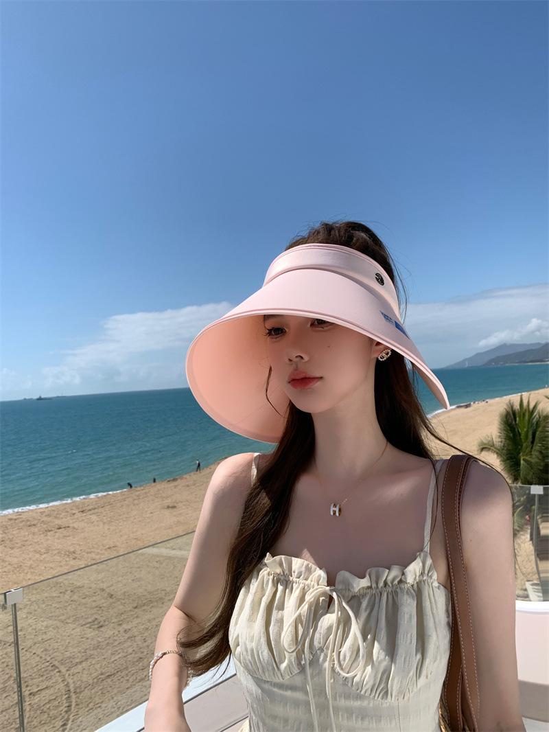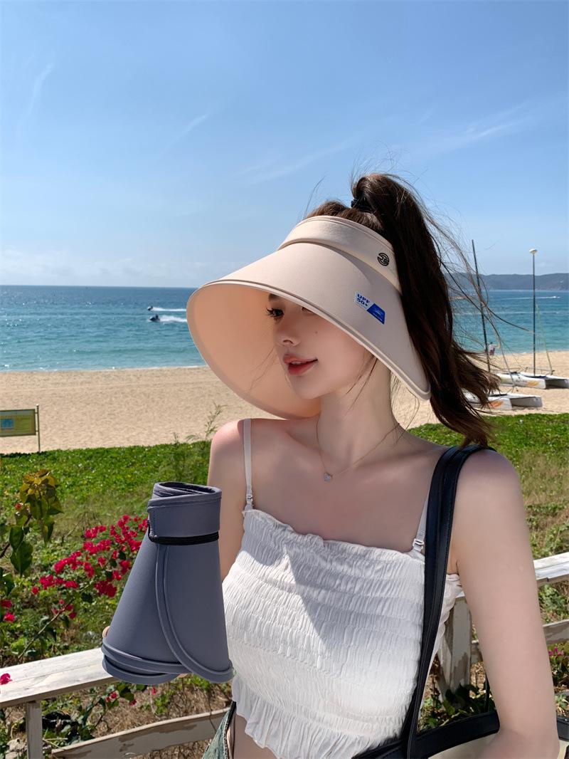 2024 Nueva Llegada Sombrero de Sol de Cara Completa Envolvente para Mujer Verano Ala Grande Copa Vacía Protección UV Sombrero de Sol
