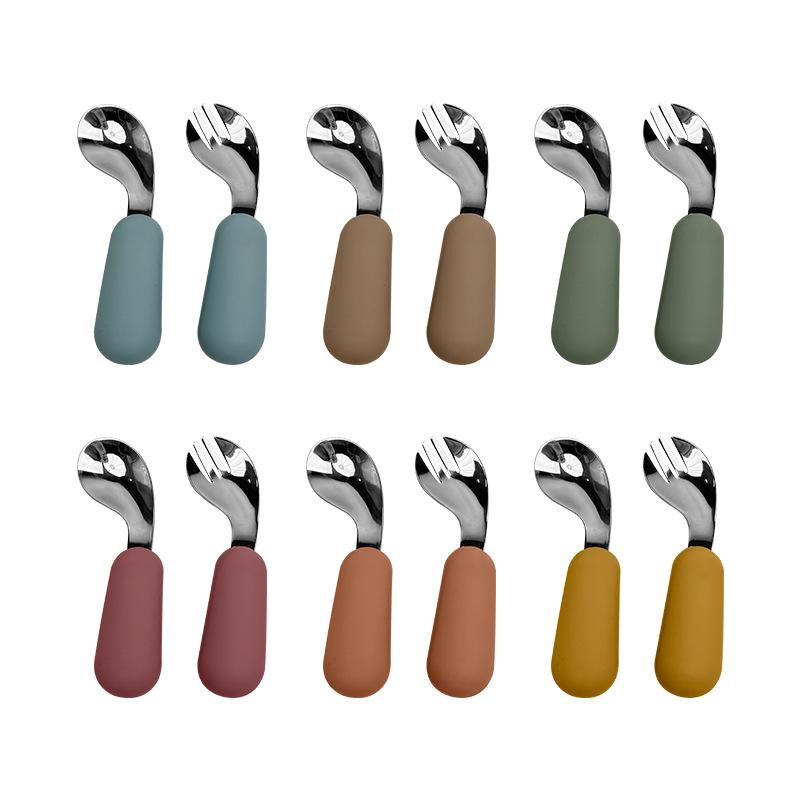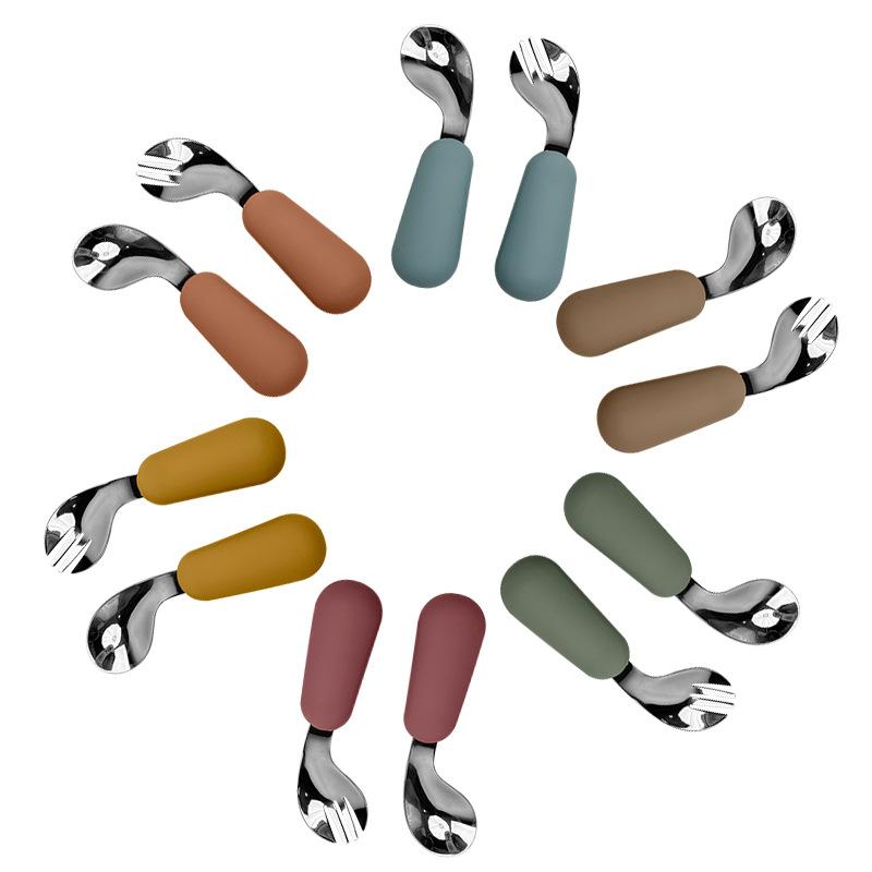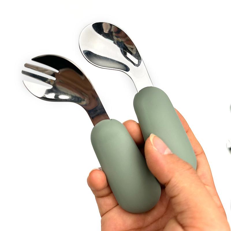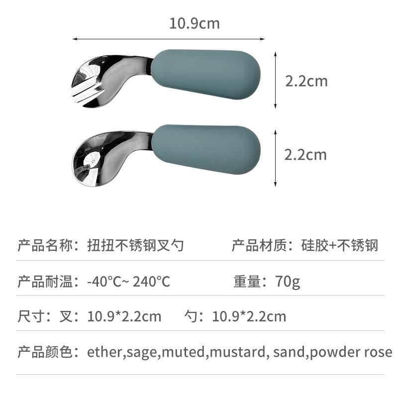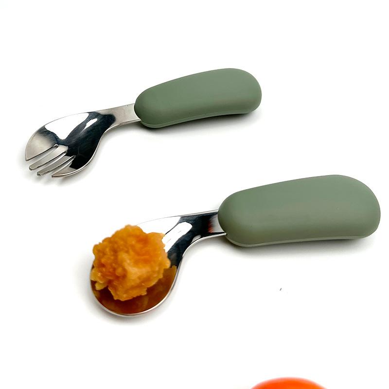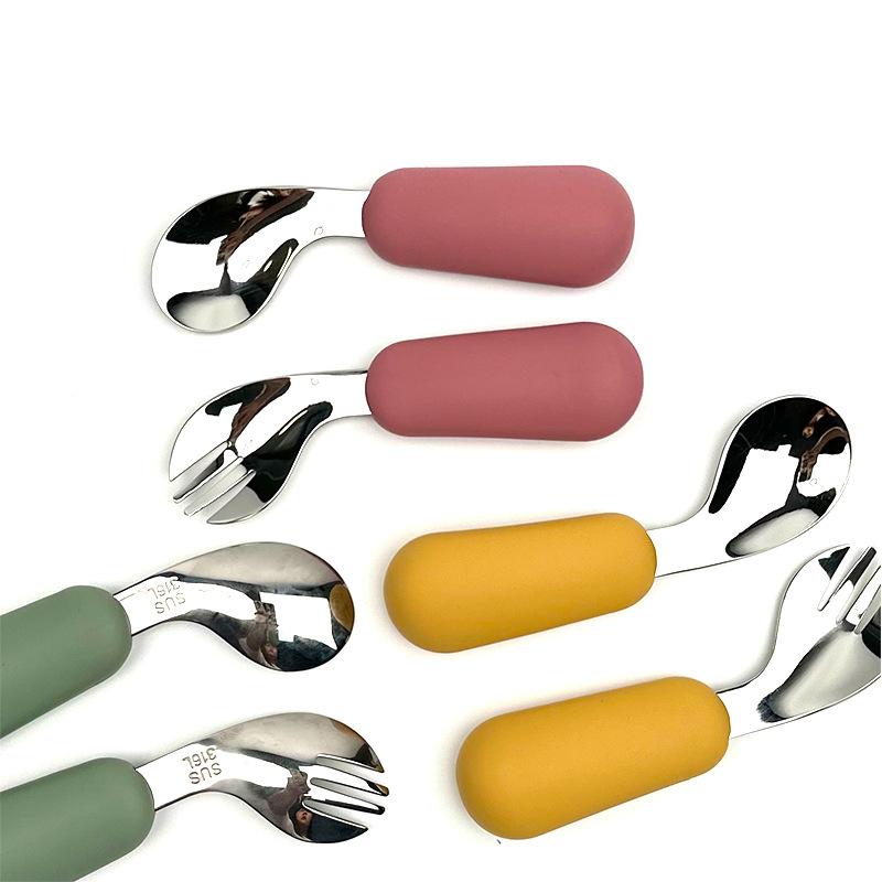 Tenedor cuchara de acero inoxidable para bebé, cuchara de entrenamiento para aprender a comer, tenedor, suplemento alimenticio para bebé, cuchara giratoria, tenedor que se puede doblar