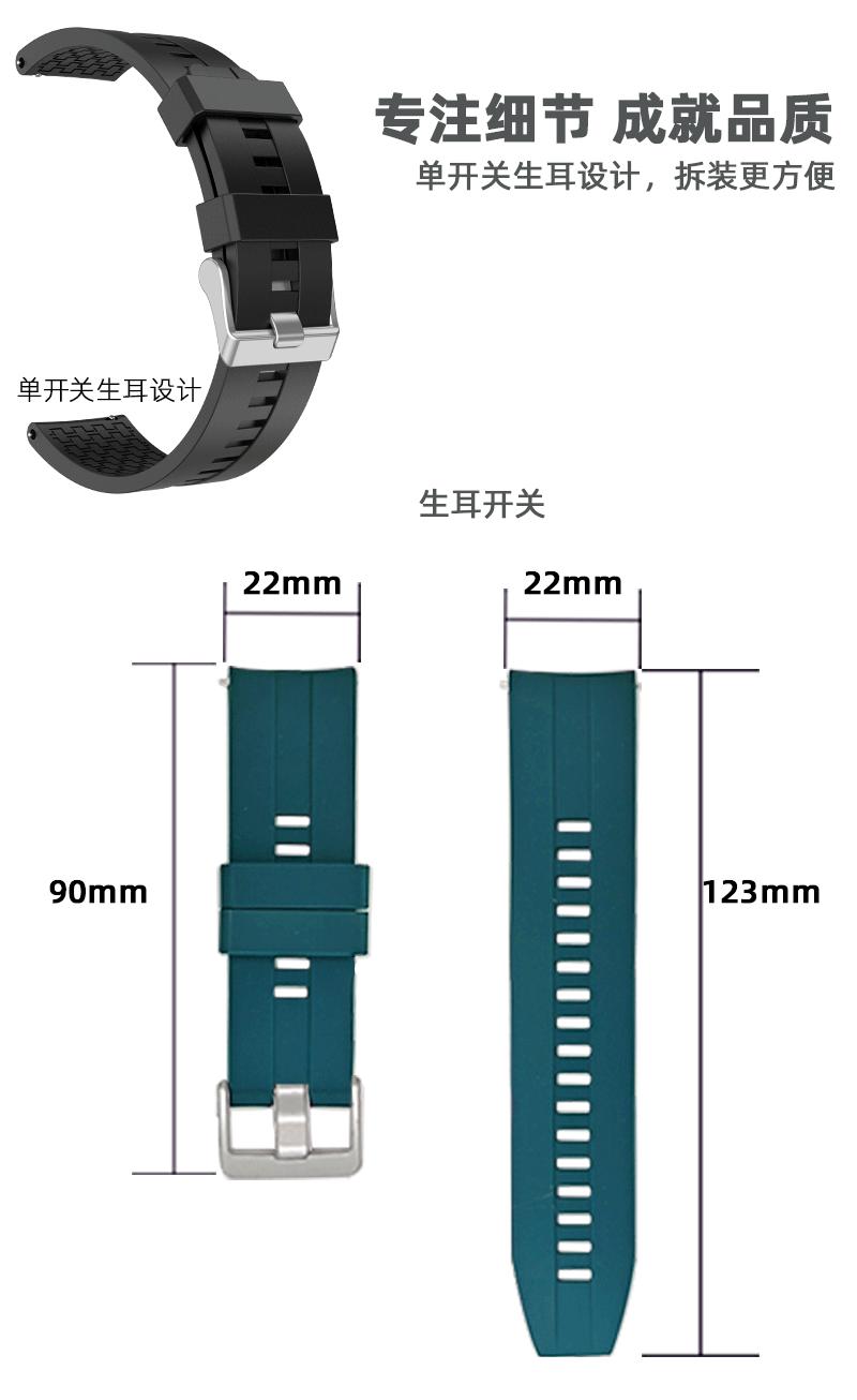El ancho de la correa es: 22MM silicona respetuosa con el medio ambiente estilo oficial igual alta calidad (cabeza plana universal)