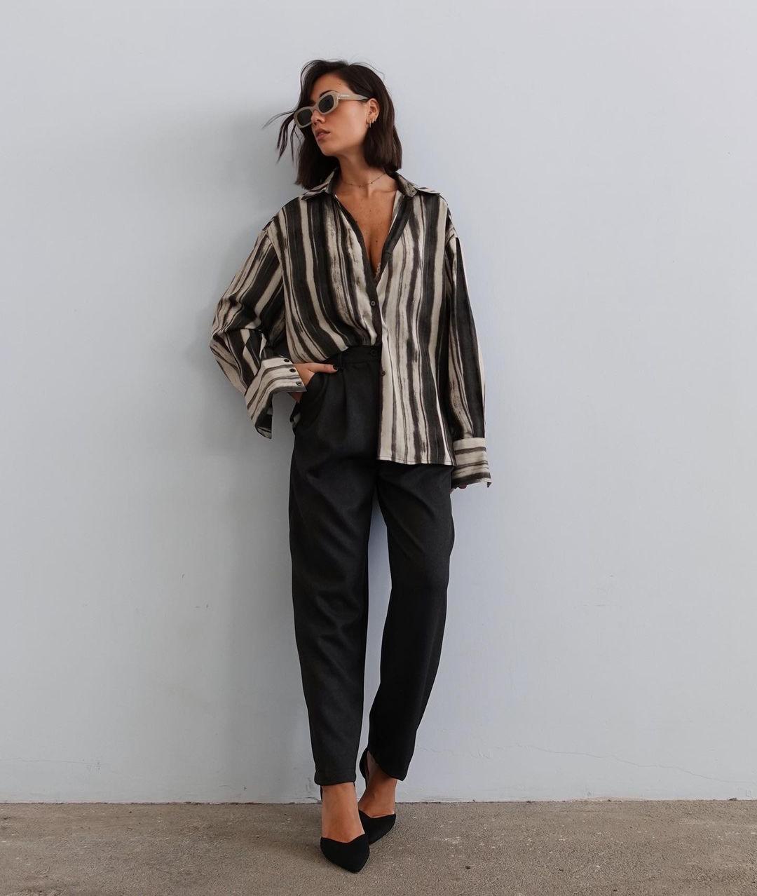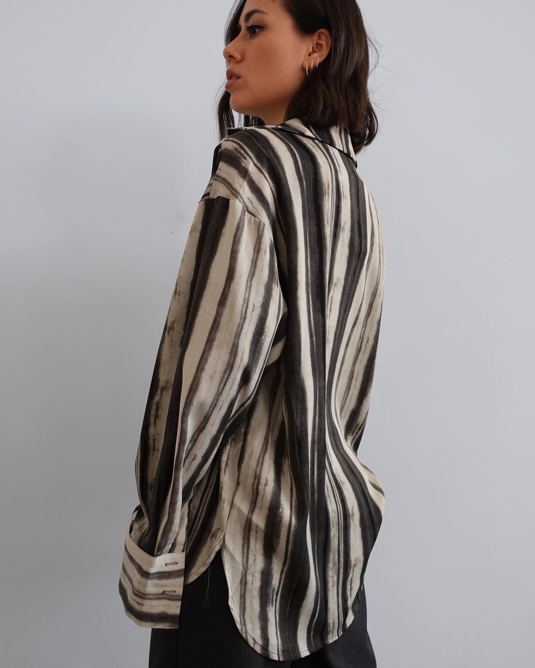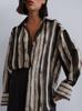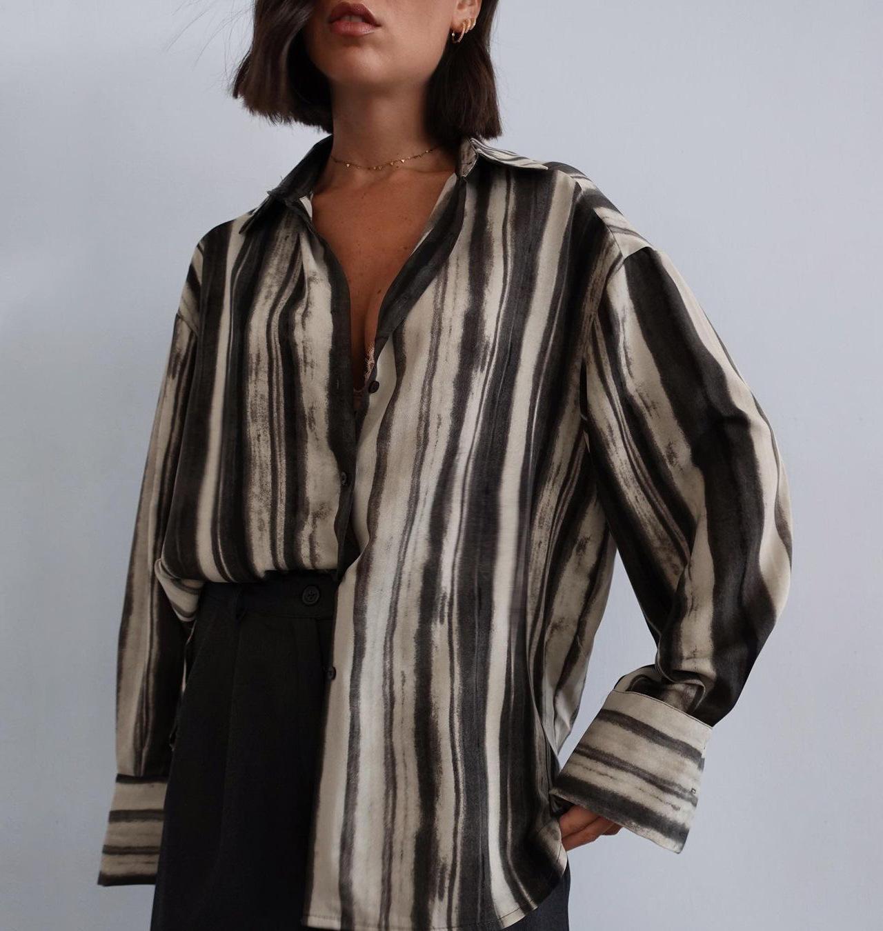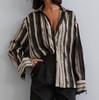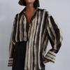 Camisa estampada personalizada transfronteriza, ropa exterior holgada informal, ropa de mujer europea y americana, otoño e invierno 2023, nueva camisa de viaje con solapa