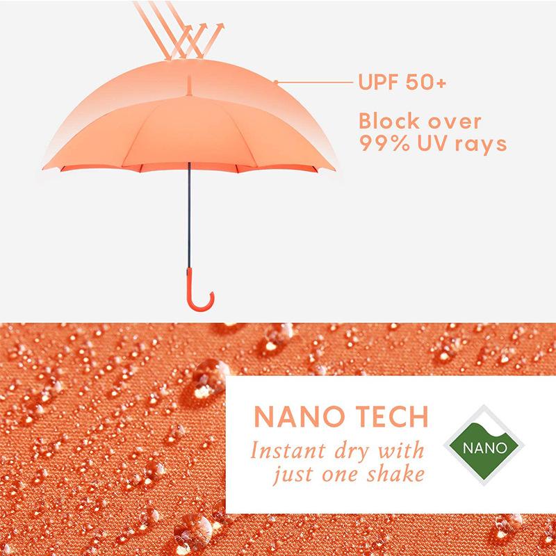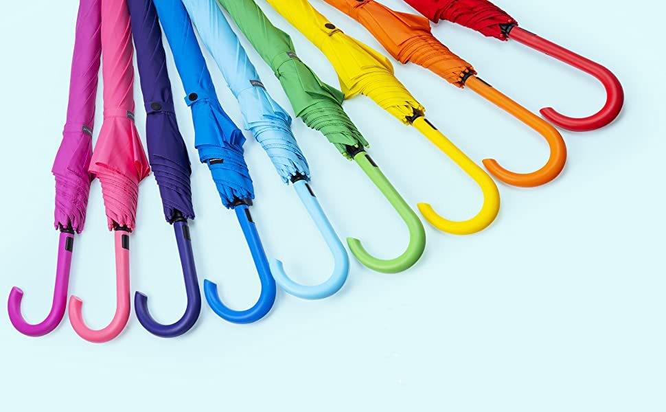 Paraguas Recto de Mango Largo Resistente al Viento de Fibra Completa Macaron Paraguas Automático Publicitario para Negocios Mango Curvo Paraguas de Golf con Impresión de Logotipo