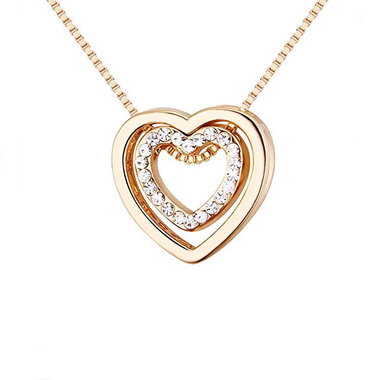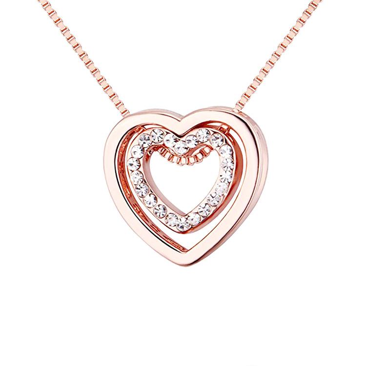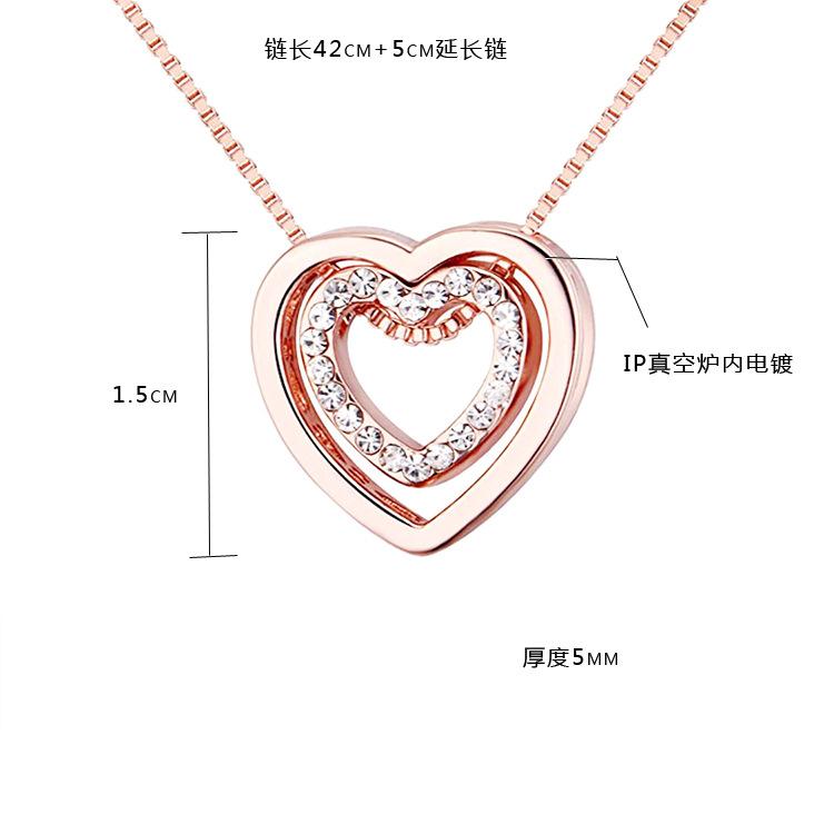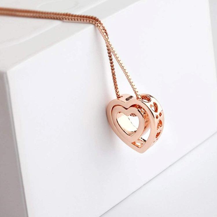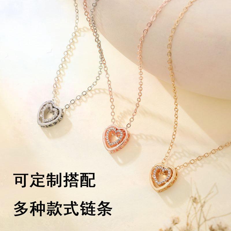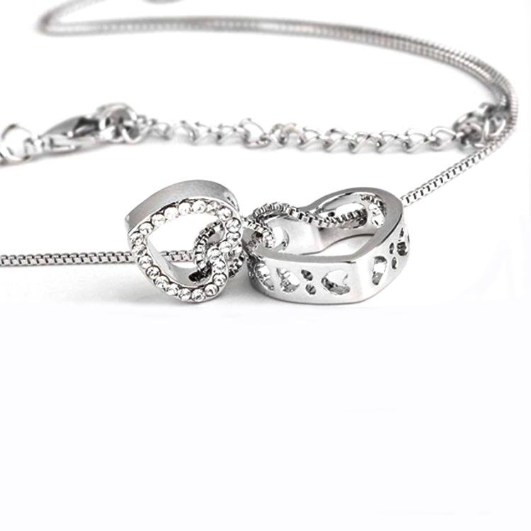 Collar de acero de titanio, joyería de doble capa, collar con colgante de amor, cadena de caja cuadrada, joyería de acero inoxidable, cadena de clavícula de amor transfronteriza