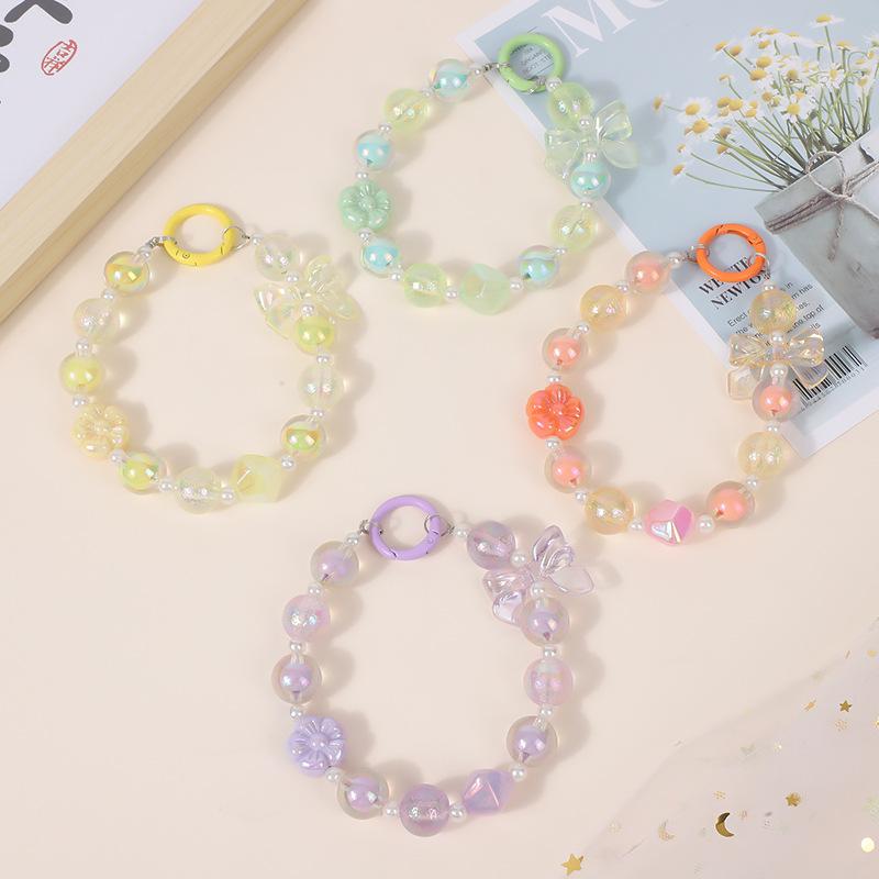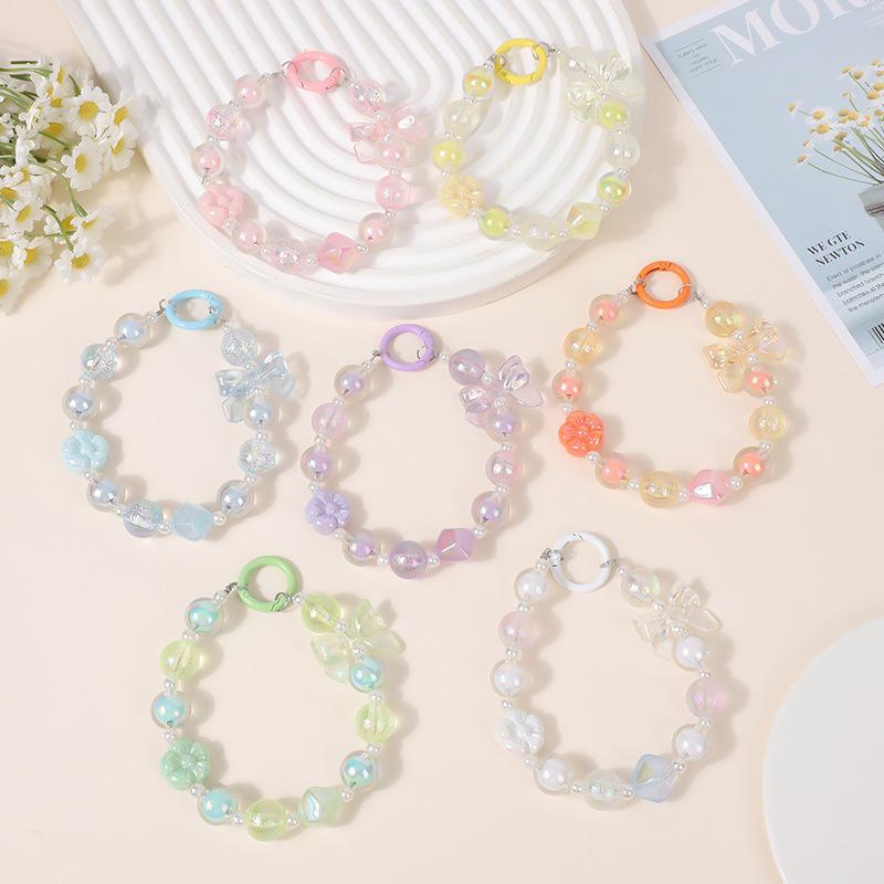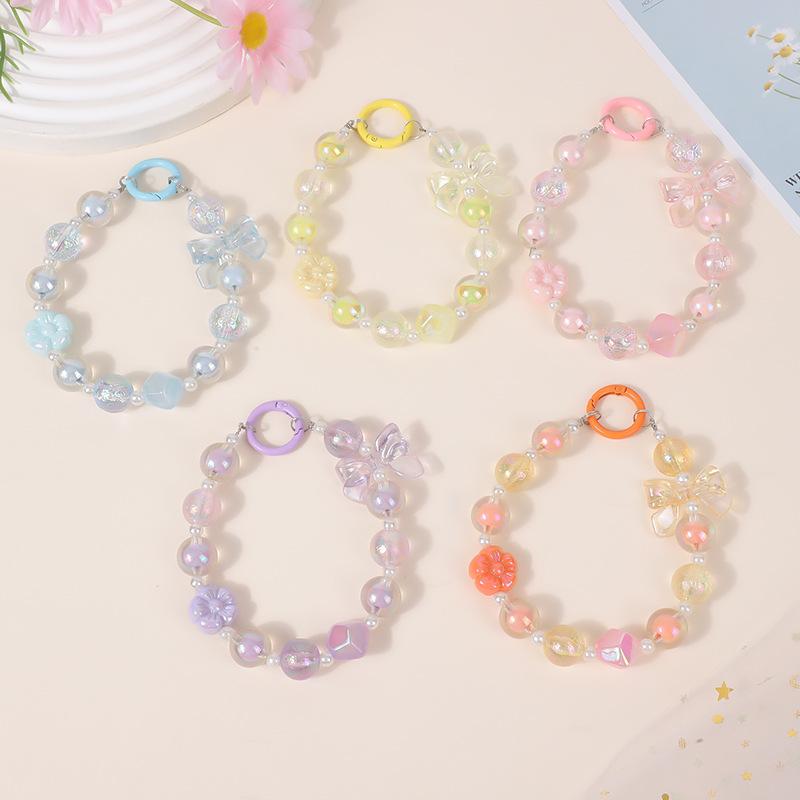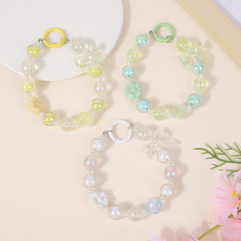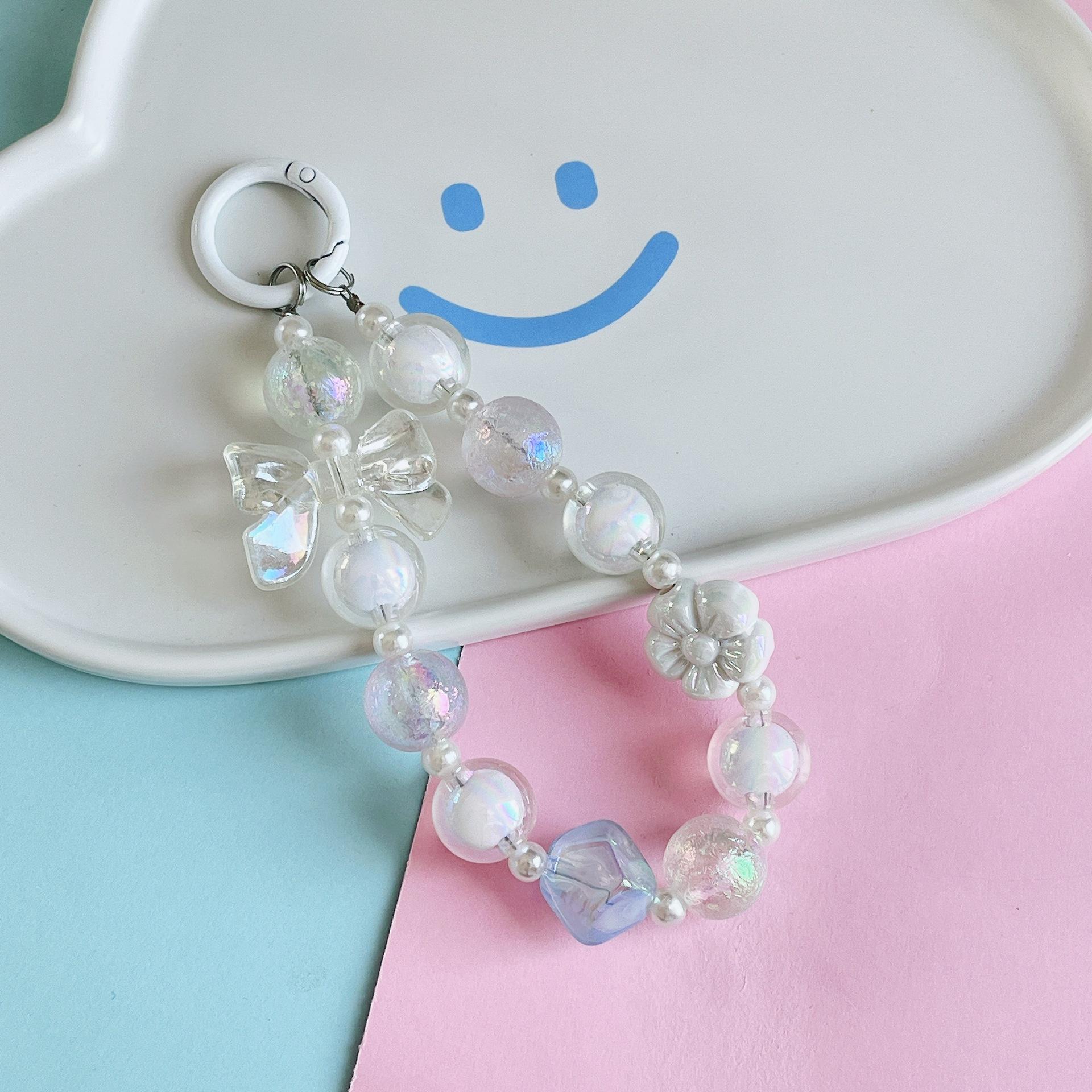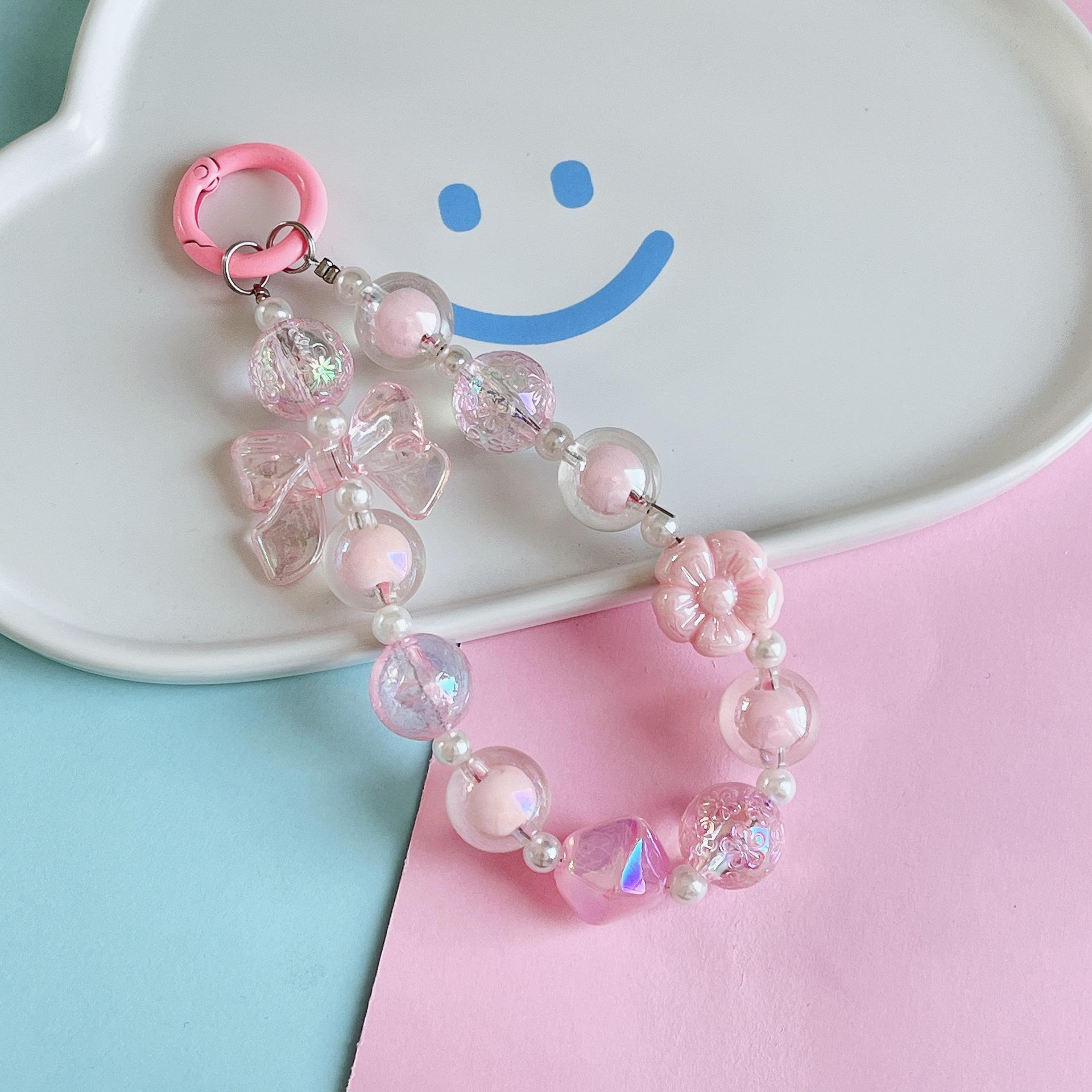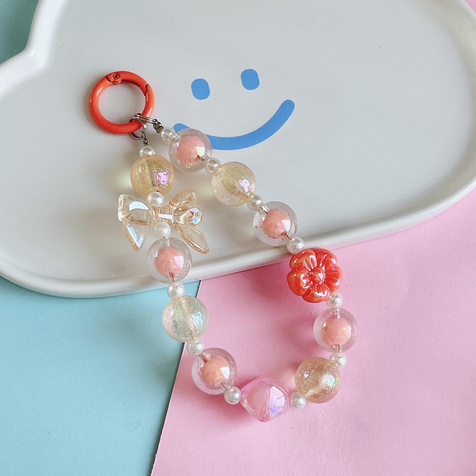Nueva pulsera dulce fresca doodle flor hecha a mano con cuentas lindo lazo cuentas niña adornos para bolso