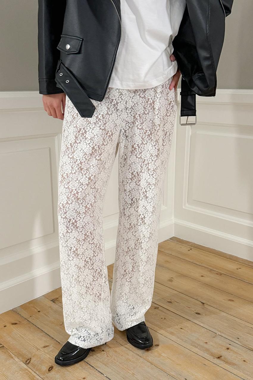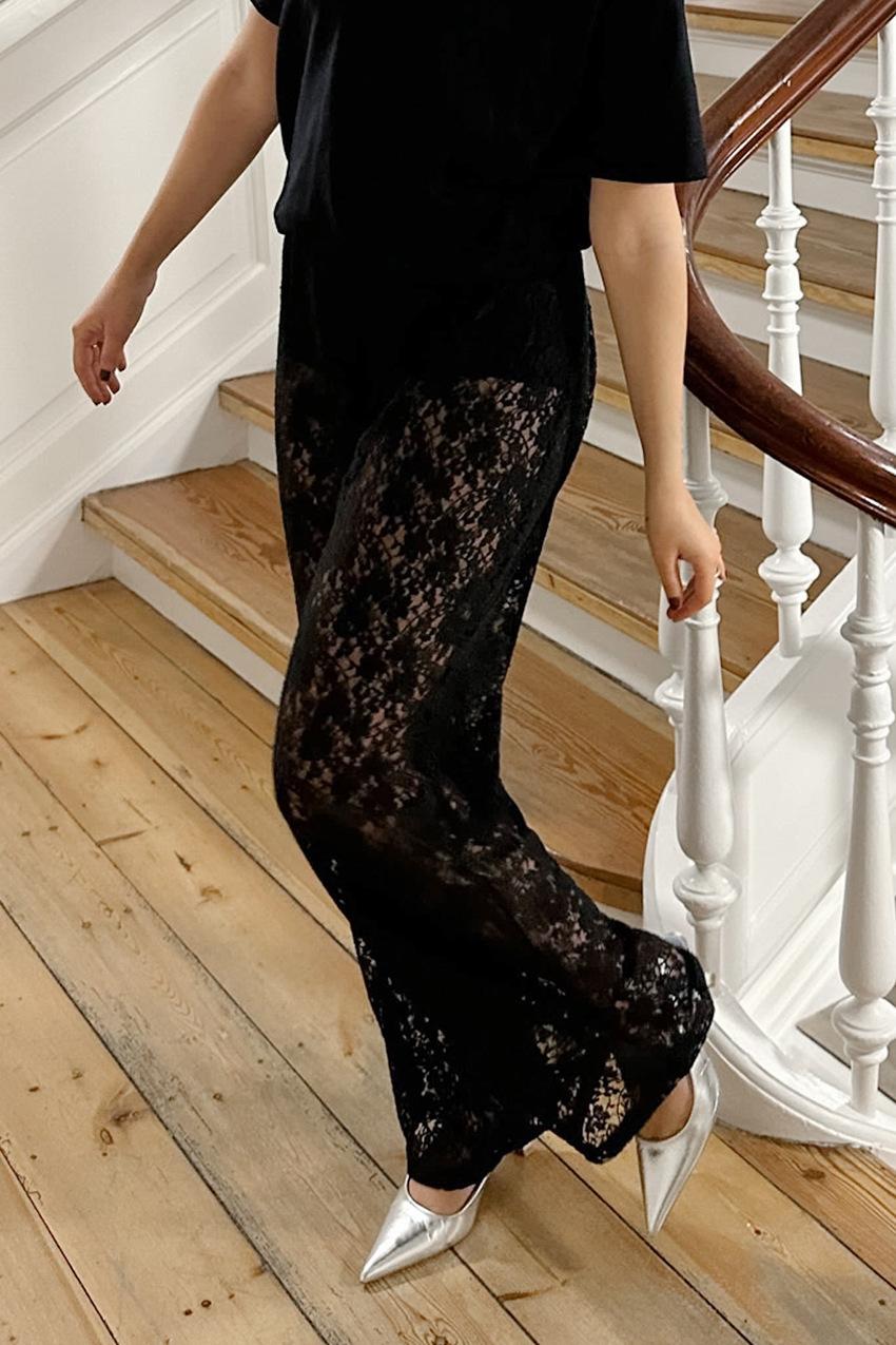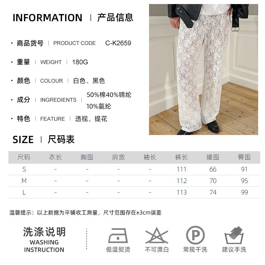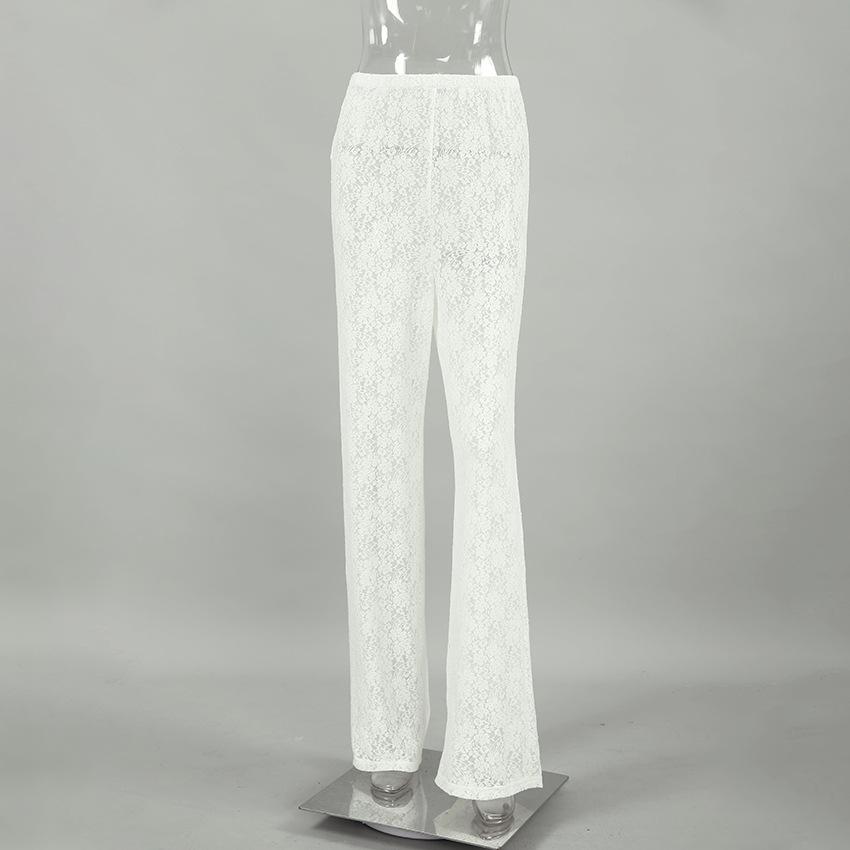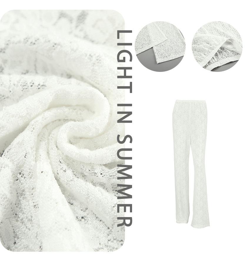 En stock Pantalones sexys de encaje hueco 2024 Primavera y verano Europeo y americano Nuevo Elegante Elegante Micro Perspectiva Diseño de ropa de mujer Sentido