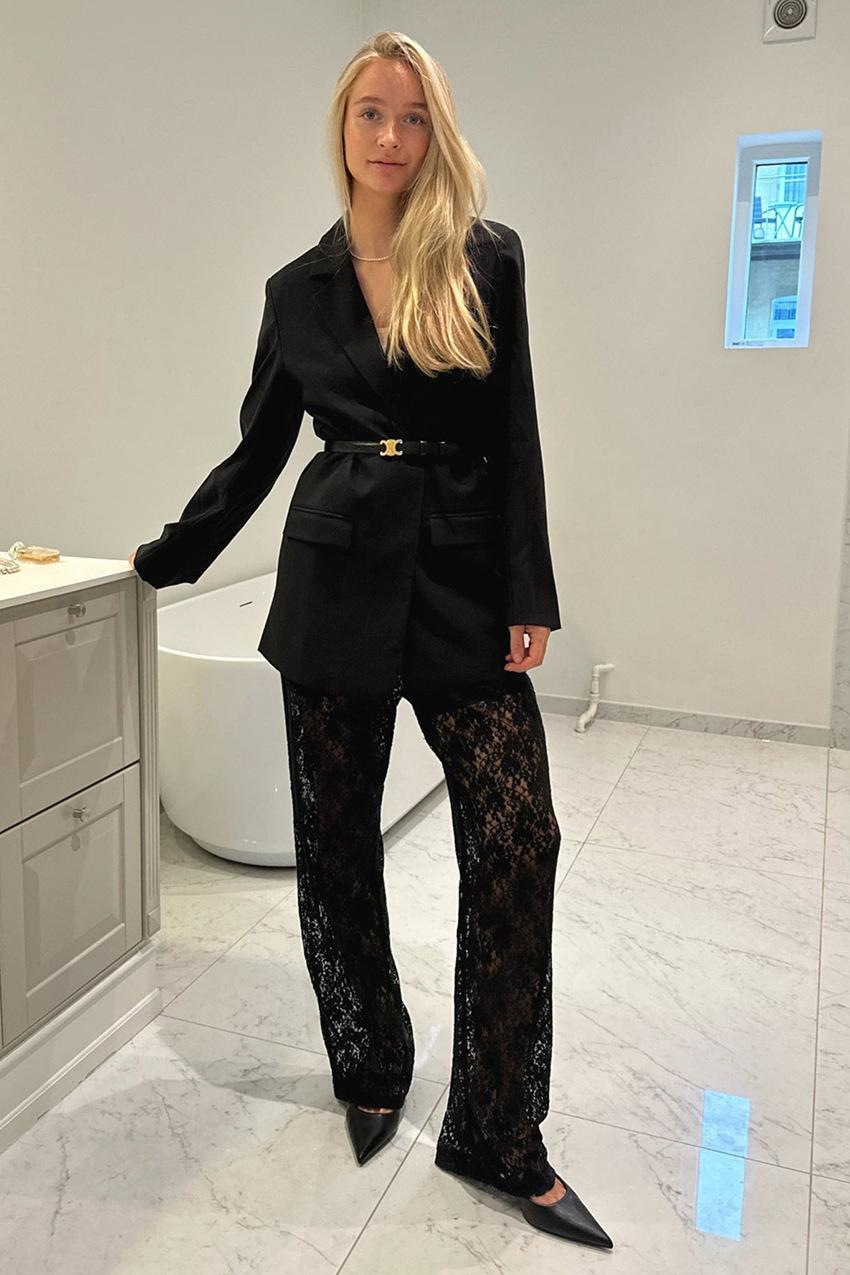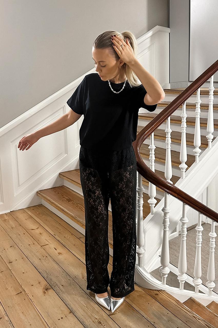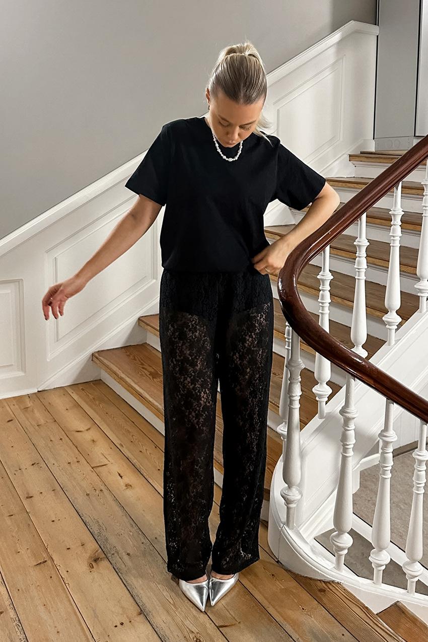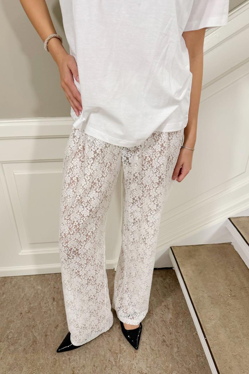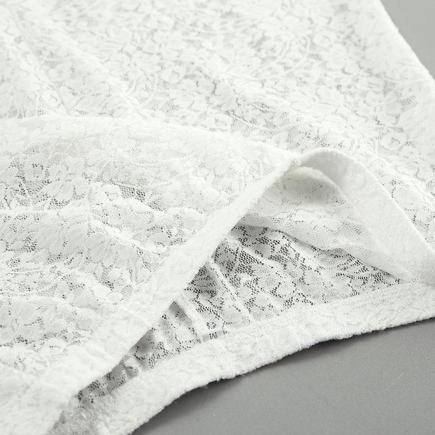 En stock Pantalones sexys de encaje hueco 2024 Primavera y verano Europeo y americano Nuevo Elegante Elegante Micro Perspectiva Diseño de ropa de mujer Sentido