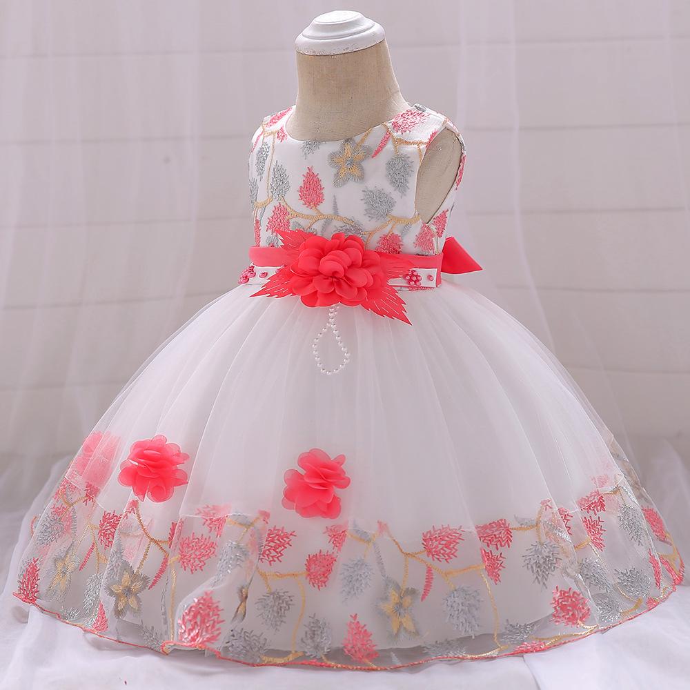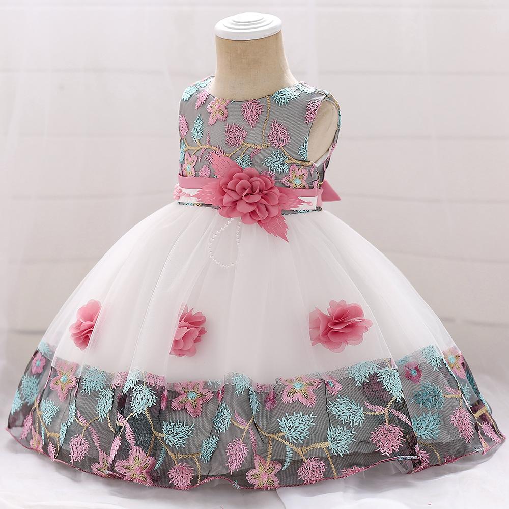 Ebay Amazon Vestido Bordado para Bebé Vestido de Princesa con Encaje Color Block Flor para Bebé Vestido de Boda