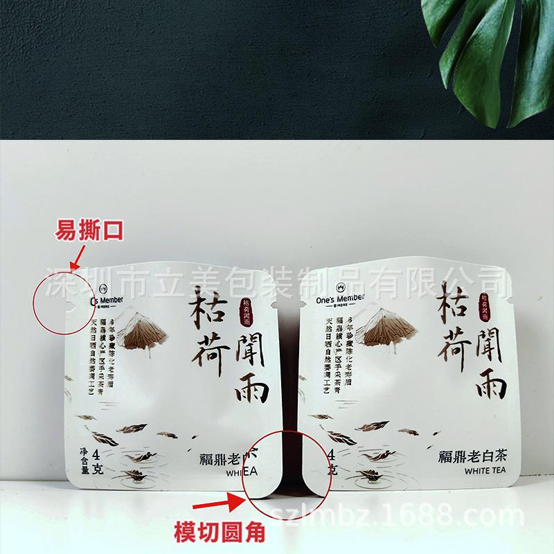 Bolsa de Empaque de Té, Bolsa de Burbujas Pequeña, Bolsa Interna Sellada, Sello de Tres Lados para Té Blanco, Papel de Aluminio, Esquinas Redondeadas, Bolsa Pequeña para Té de Estilo Nacional, Cuadrada